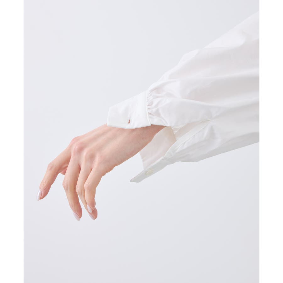 ・カフス付きのふんわりスリーブが上品な一枚。