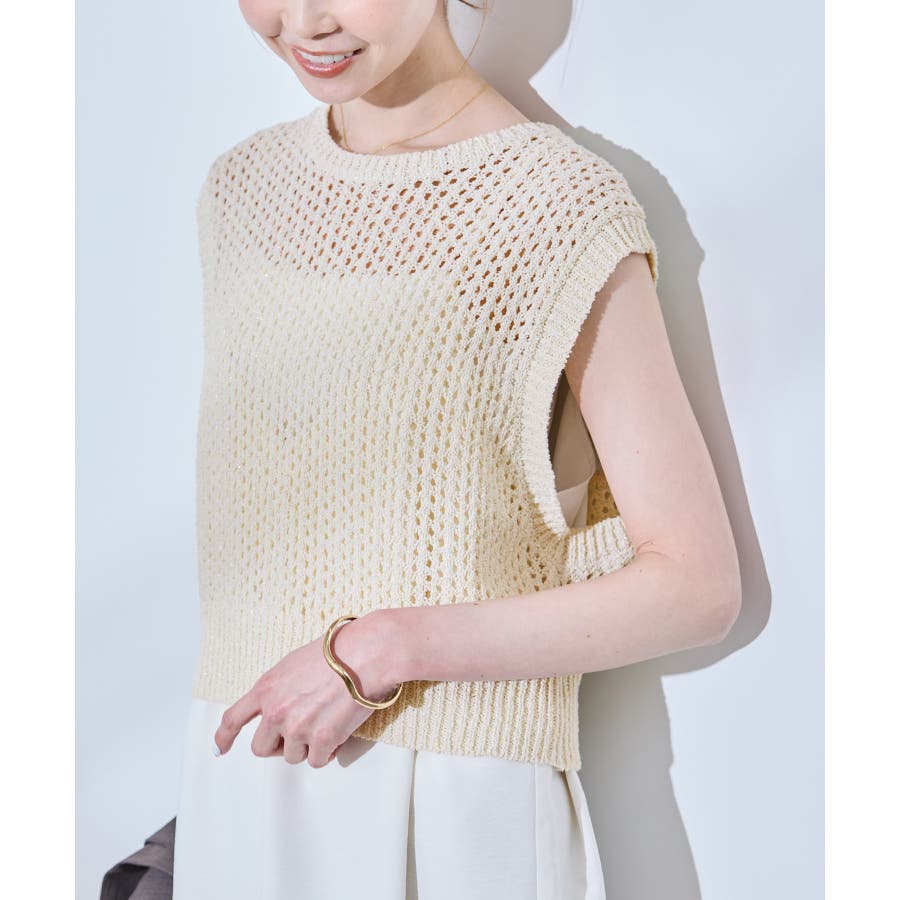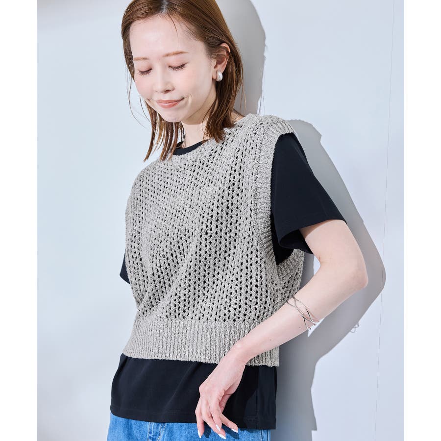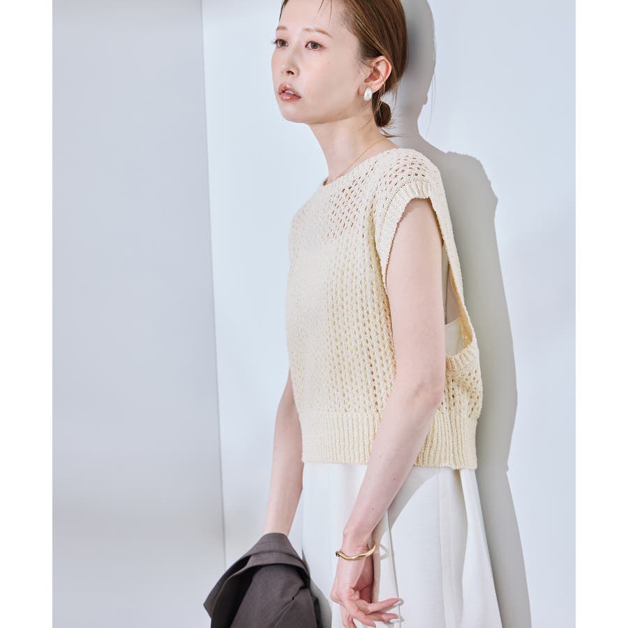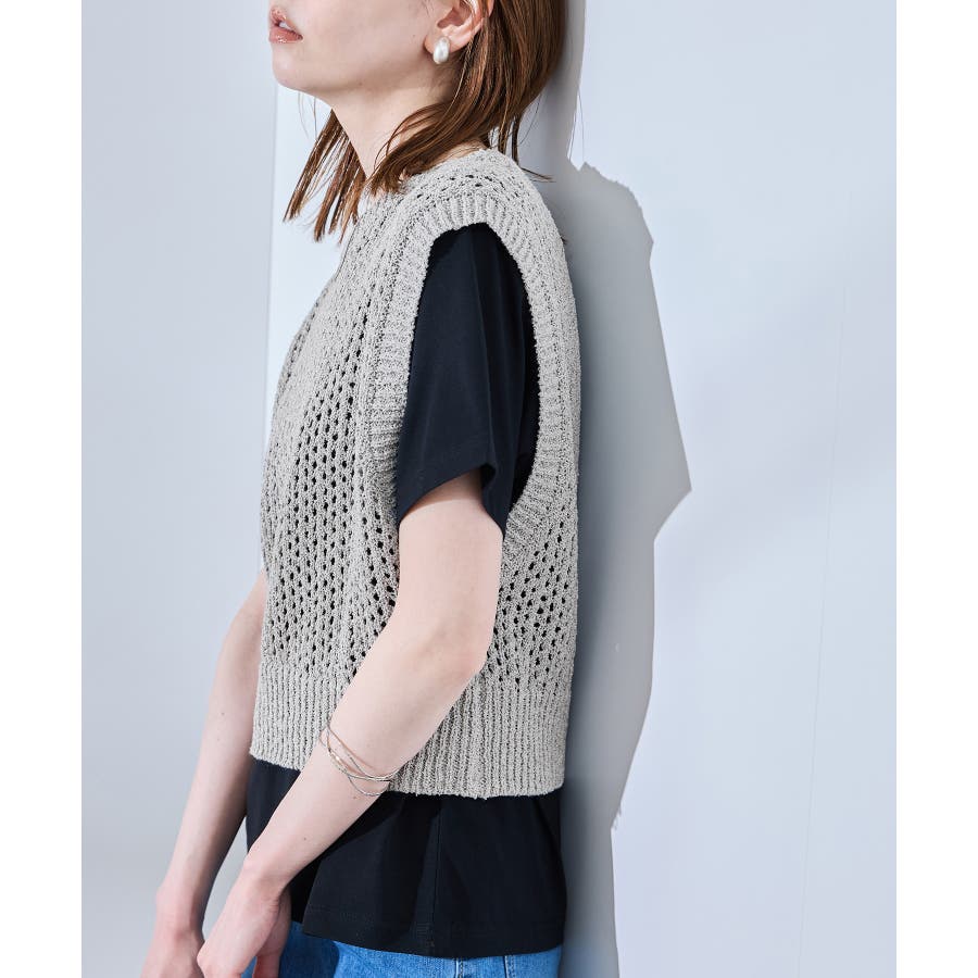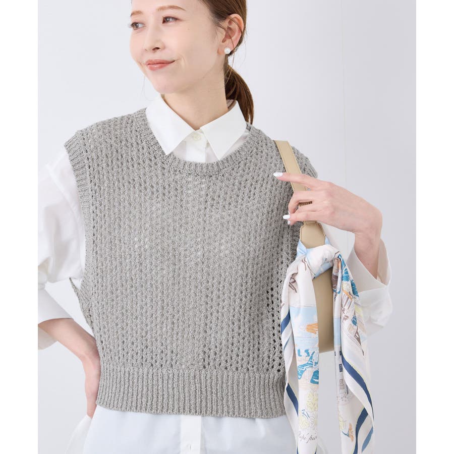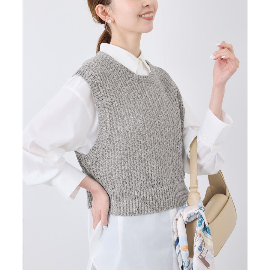 ・透かし編み&クロップド丈で軽やかに仕上げたニットベスト。