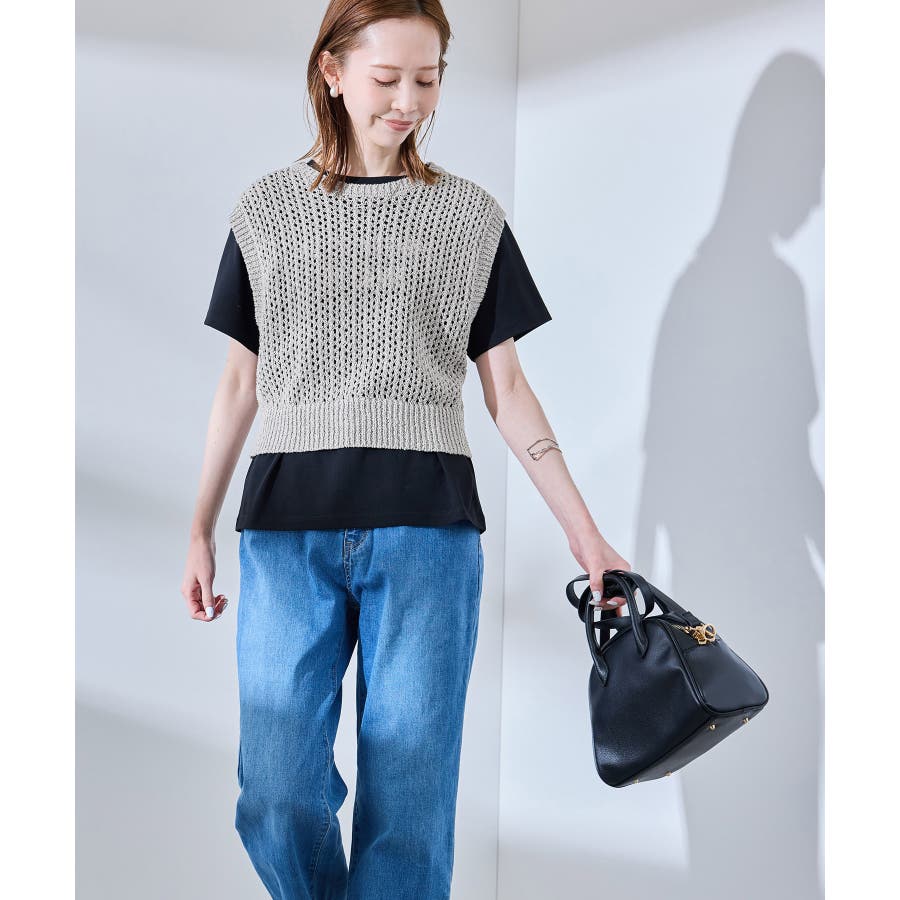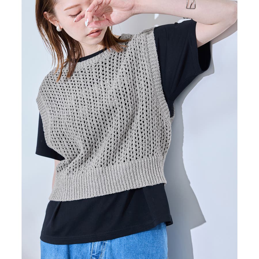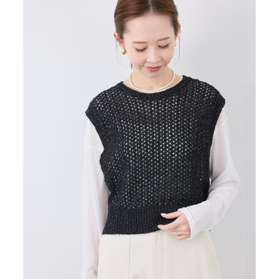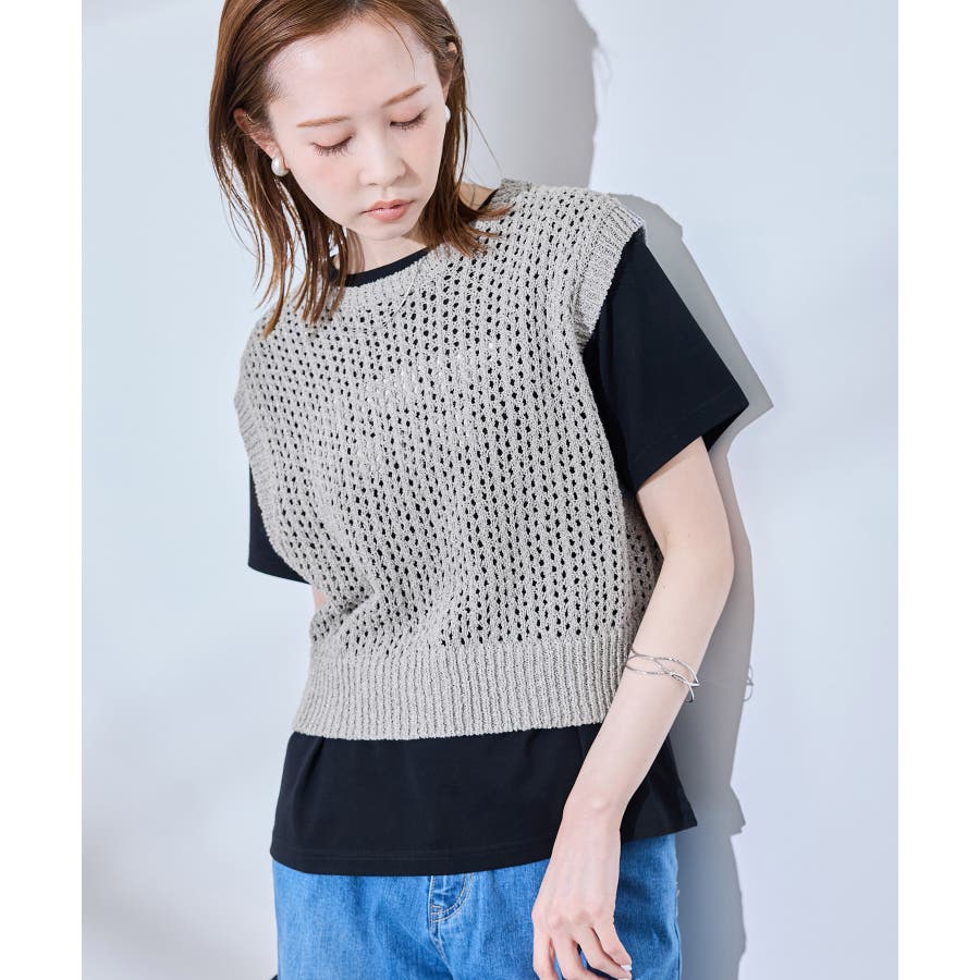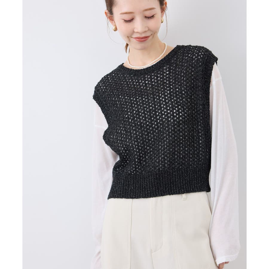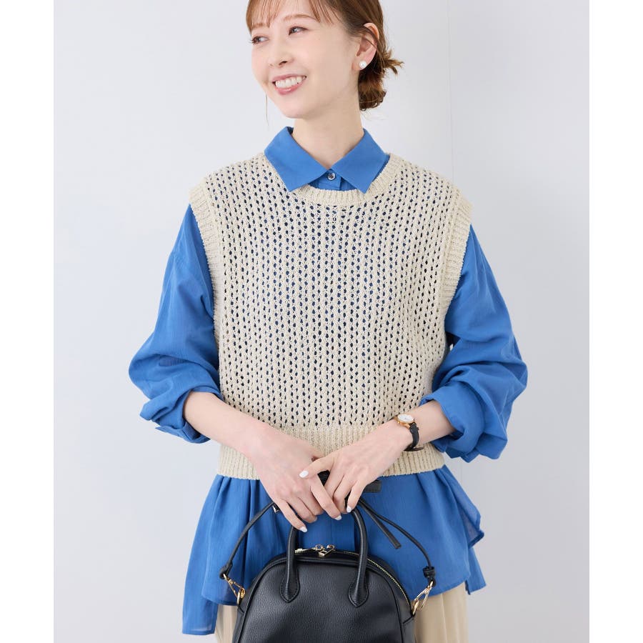 ・透かし編み&クロップド丈で軽やかに仕上げたニットベスト。
