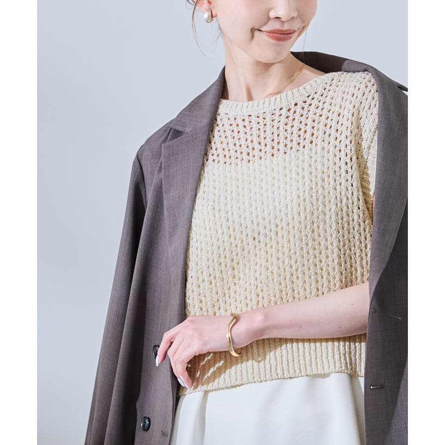 ・ラメ混紡によるさりげないきらめきで華やかな印象。