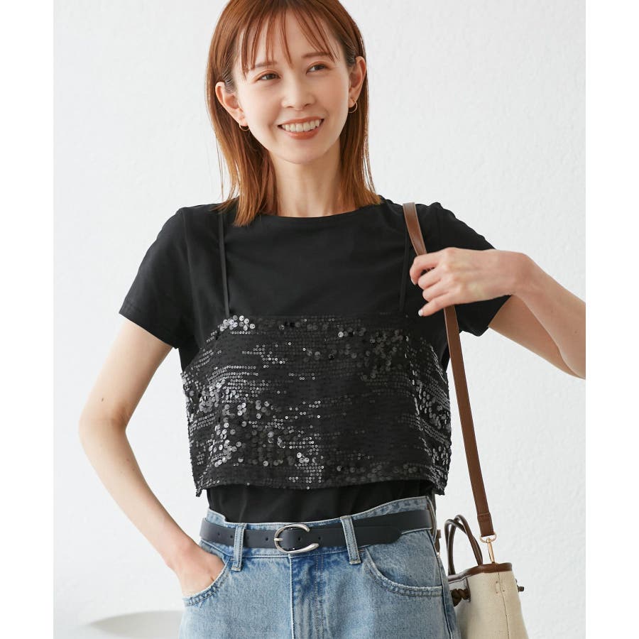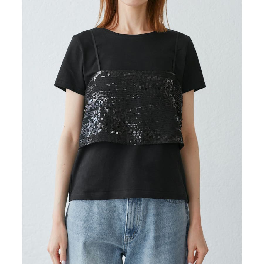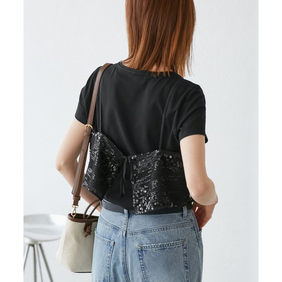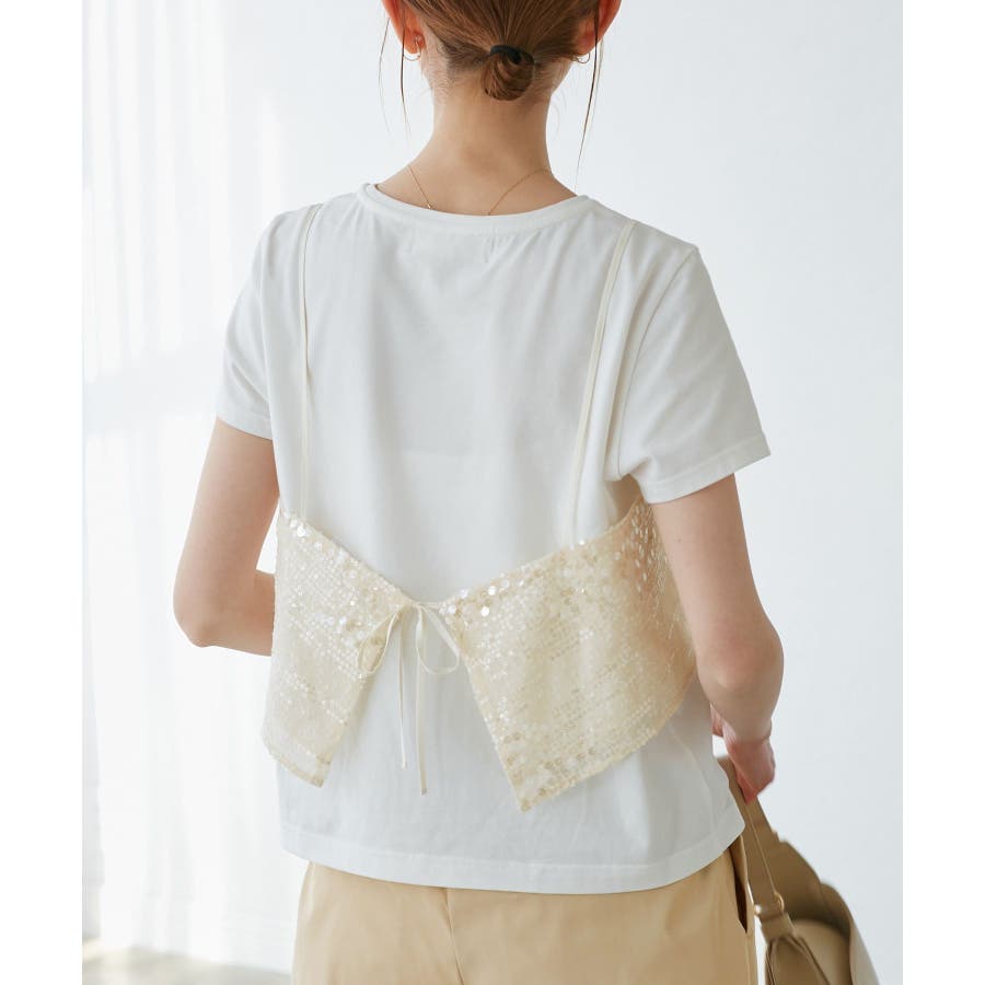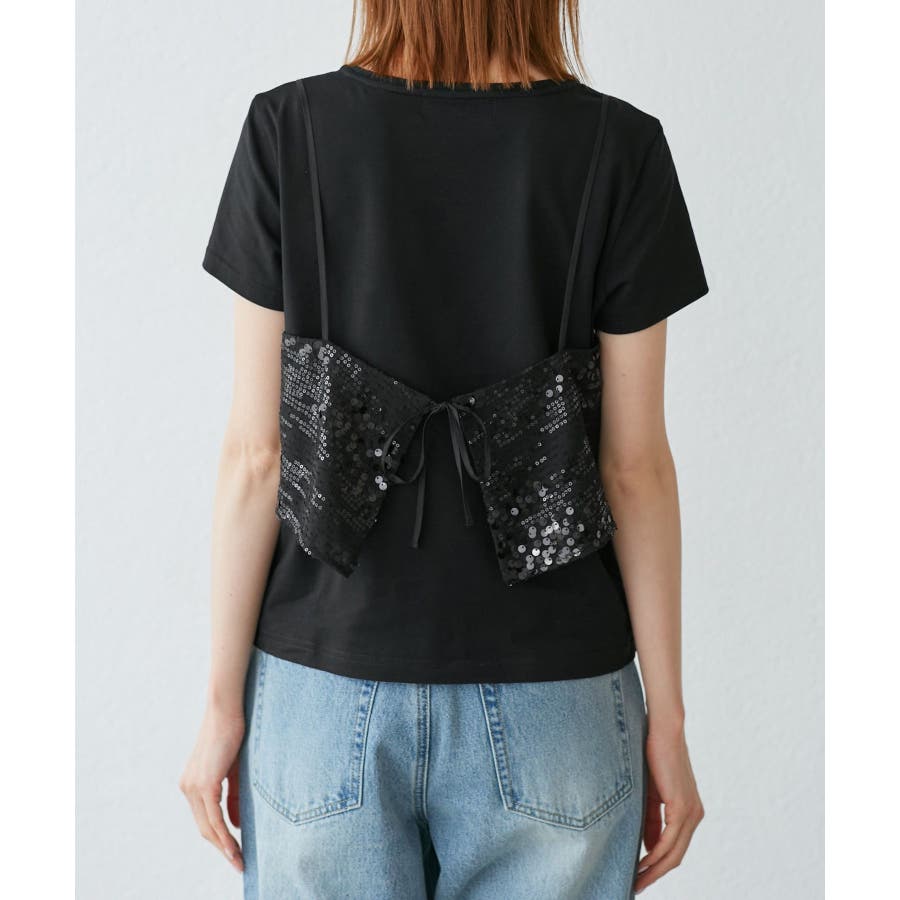 スパンコールビスチェ付きカットトップス