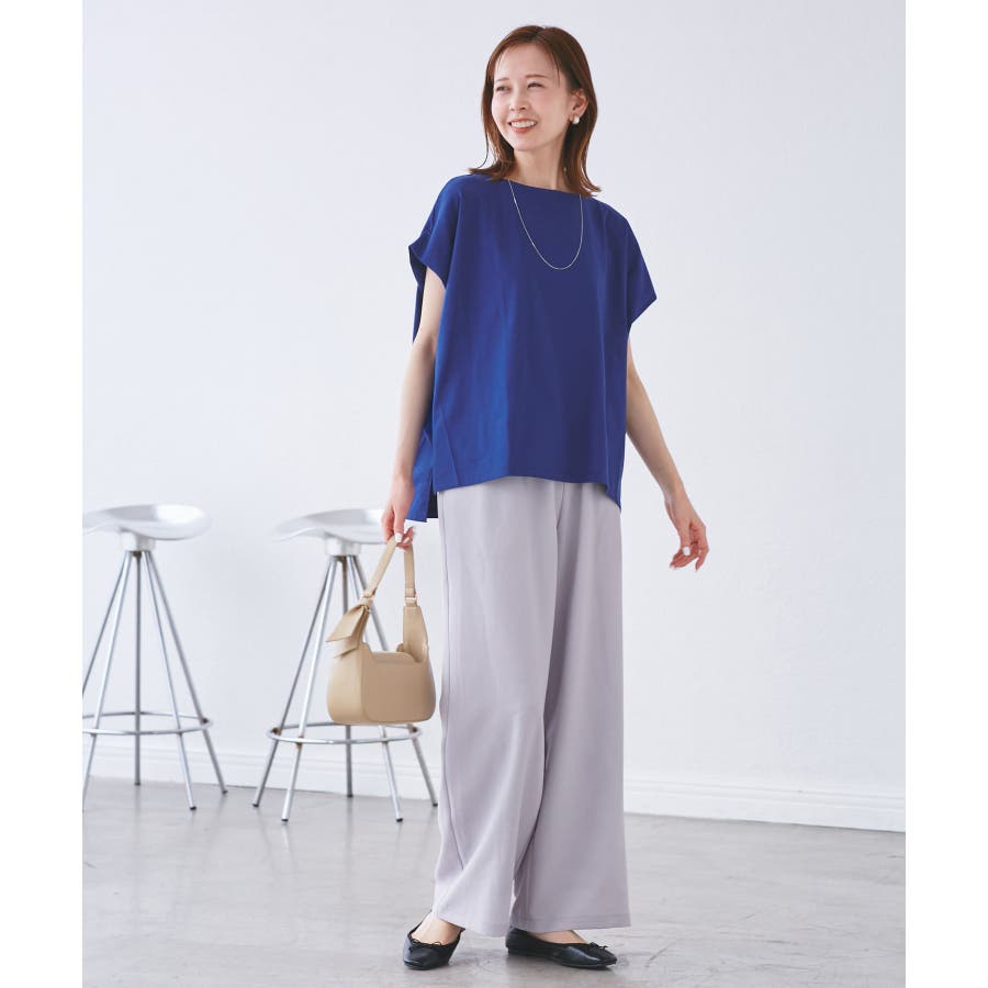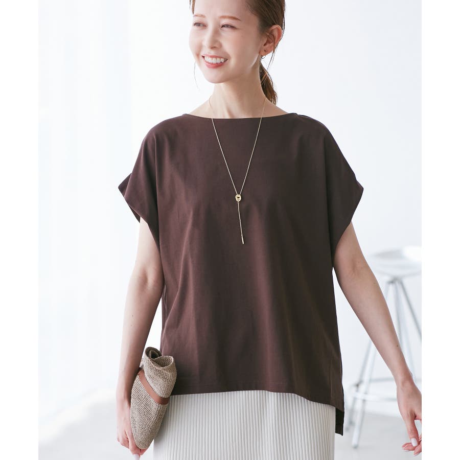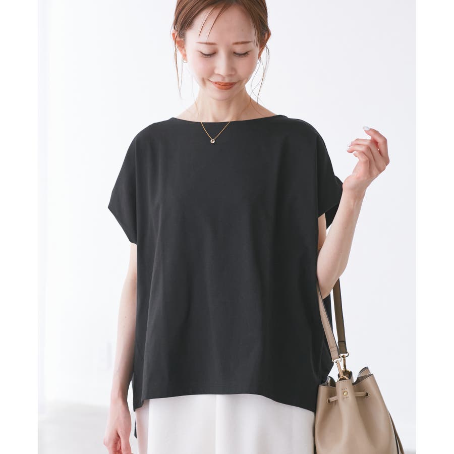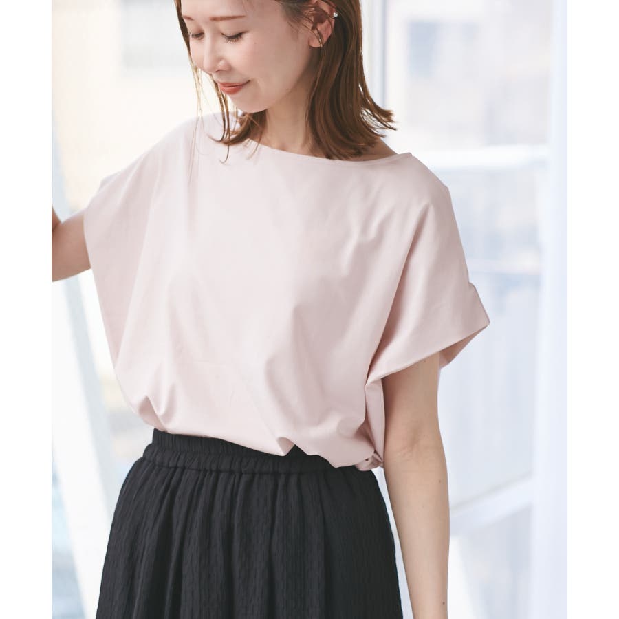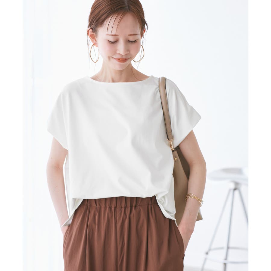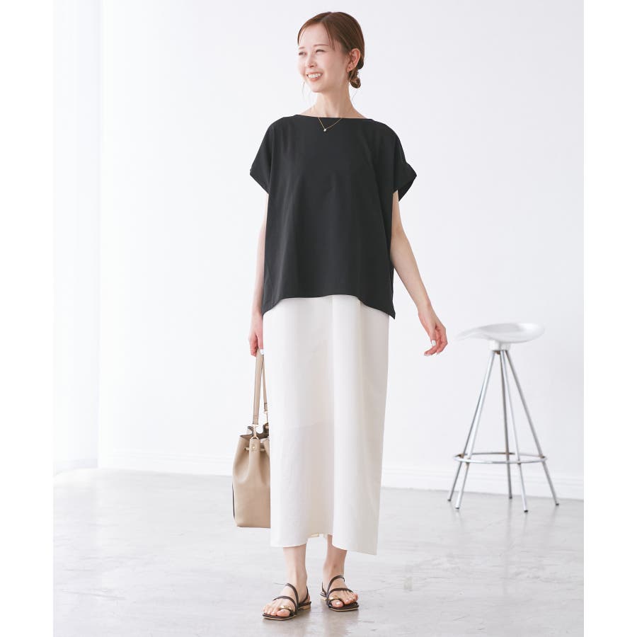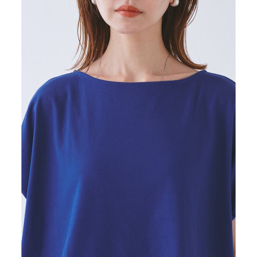 ・浅めのボートネックで首もとすっきり。