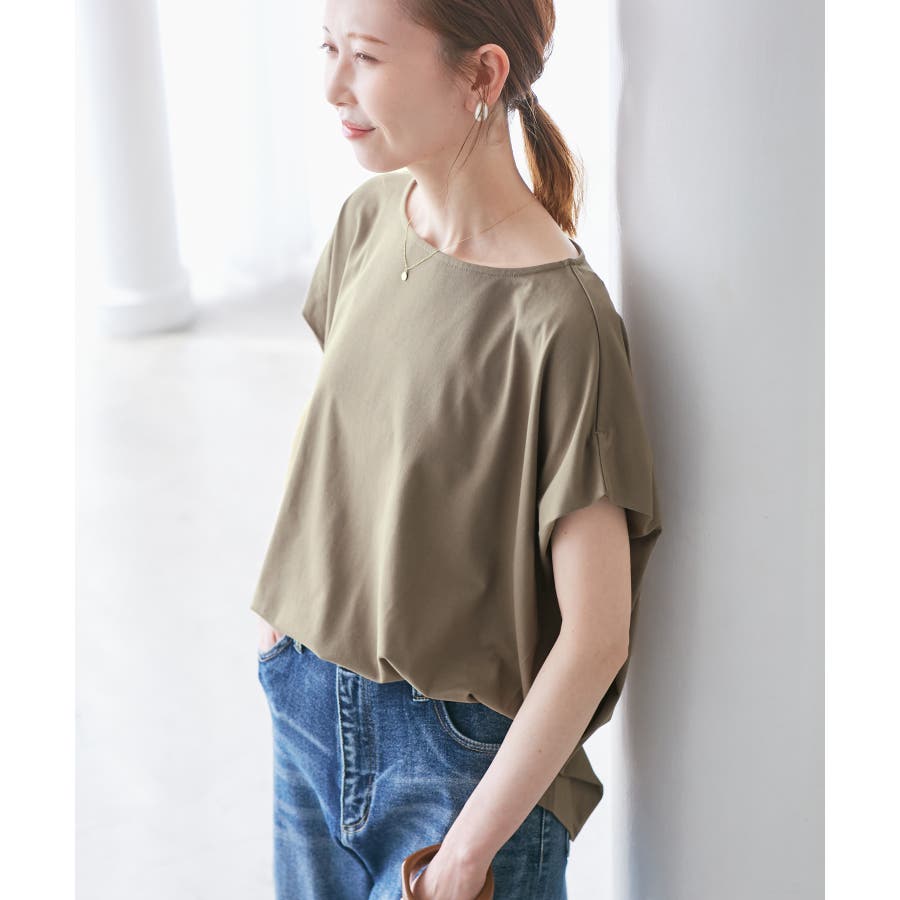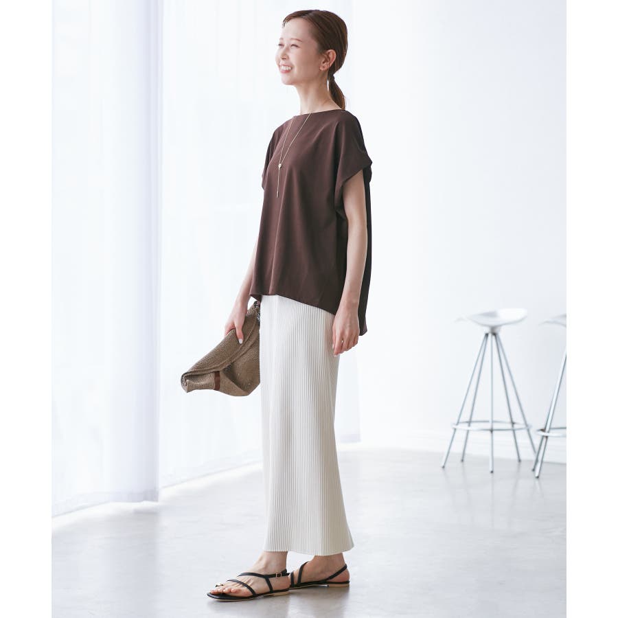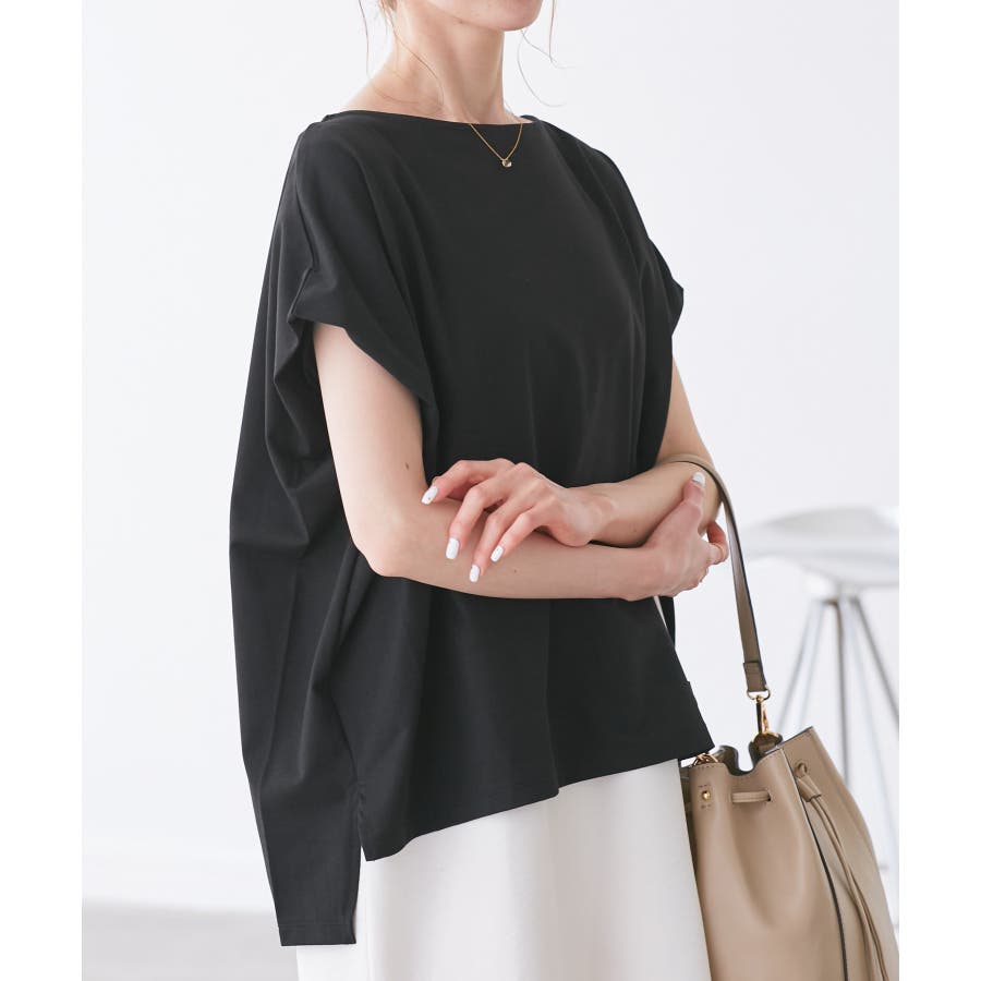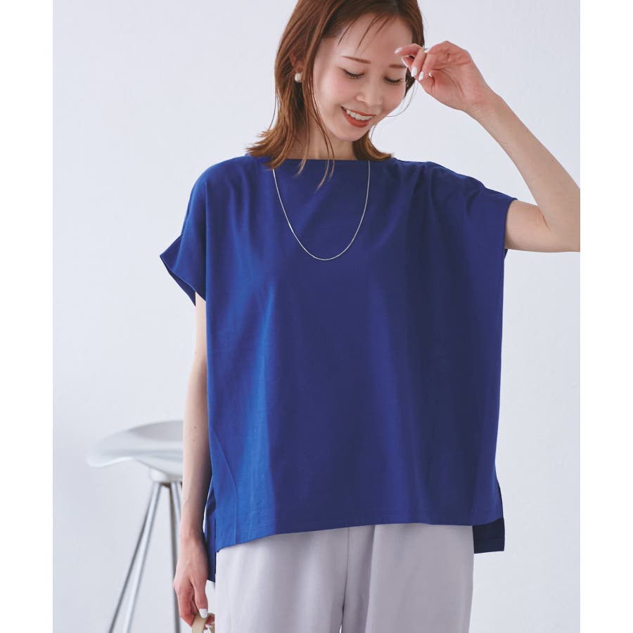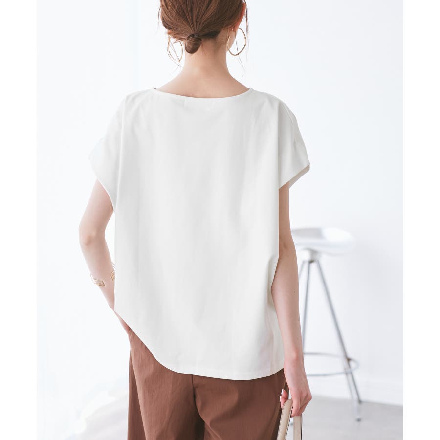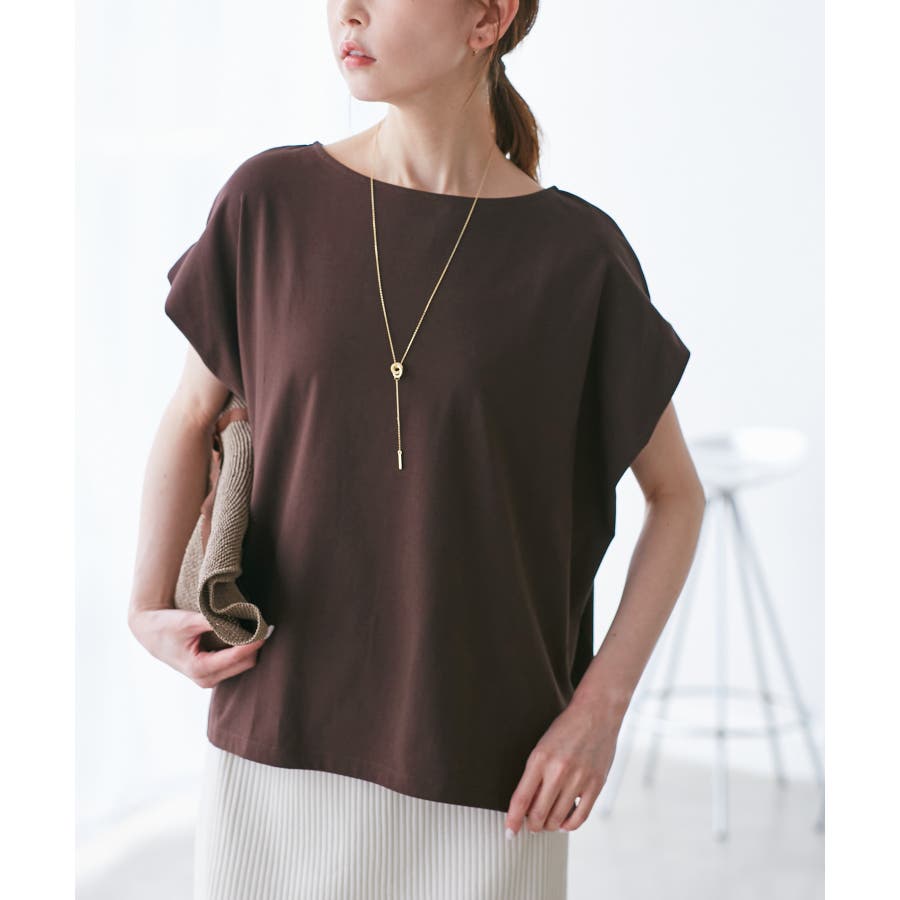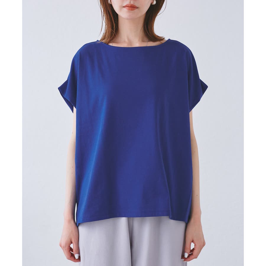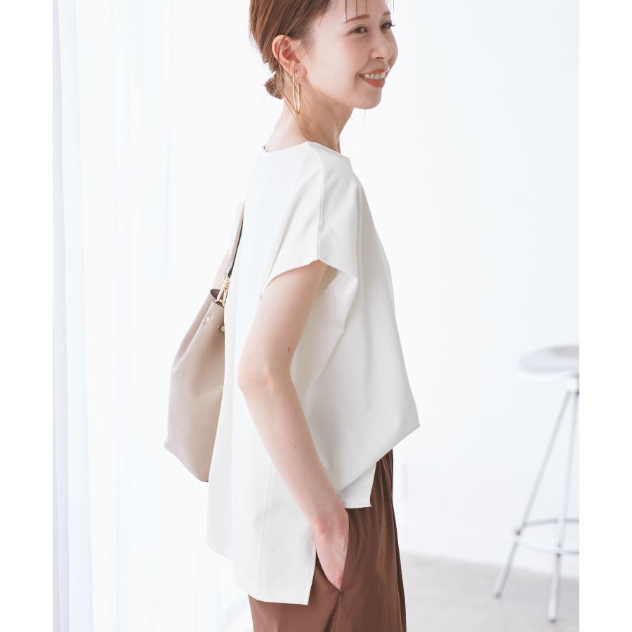 ・浅めのボートネックで首もとすっきり。