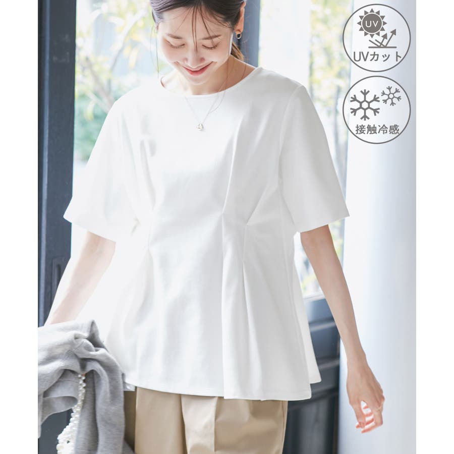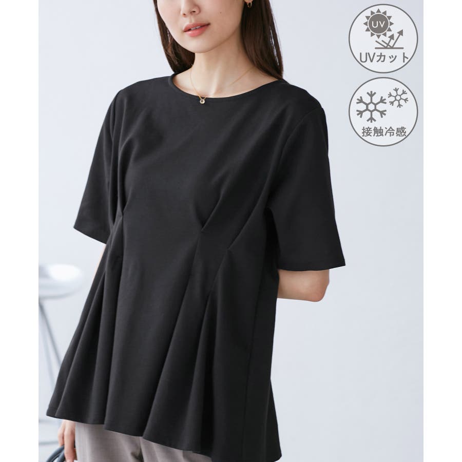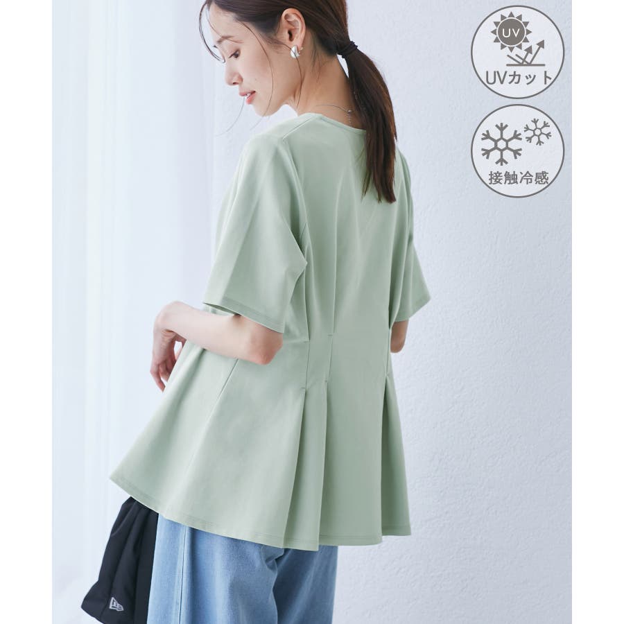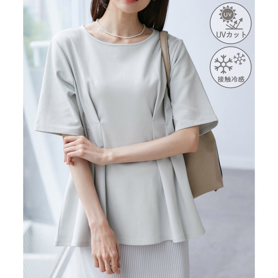 (接触冷感×UVカット)ウエストタックペプラムトップス