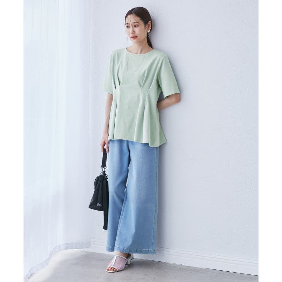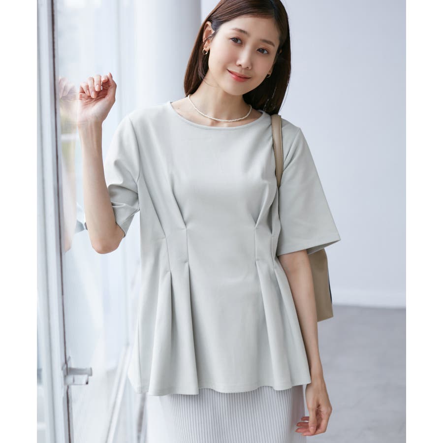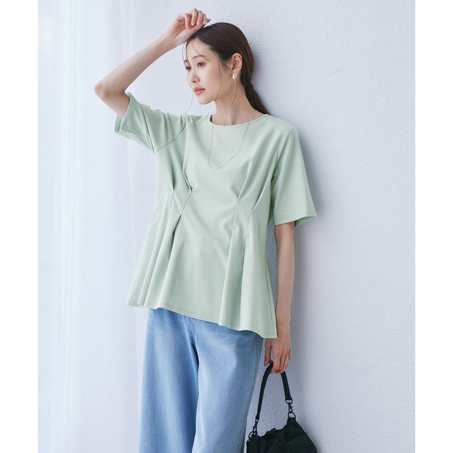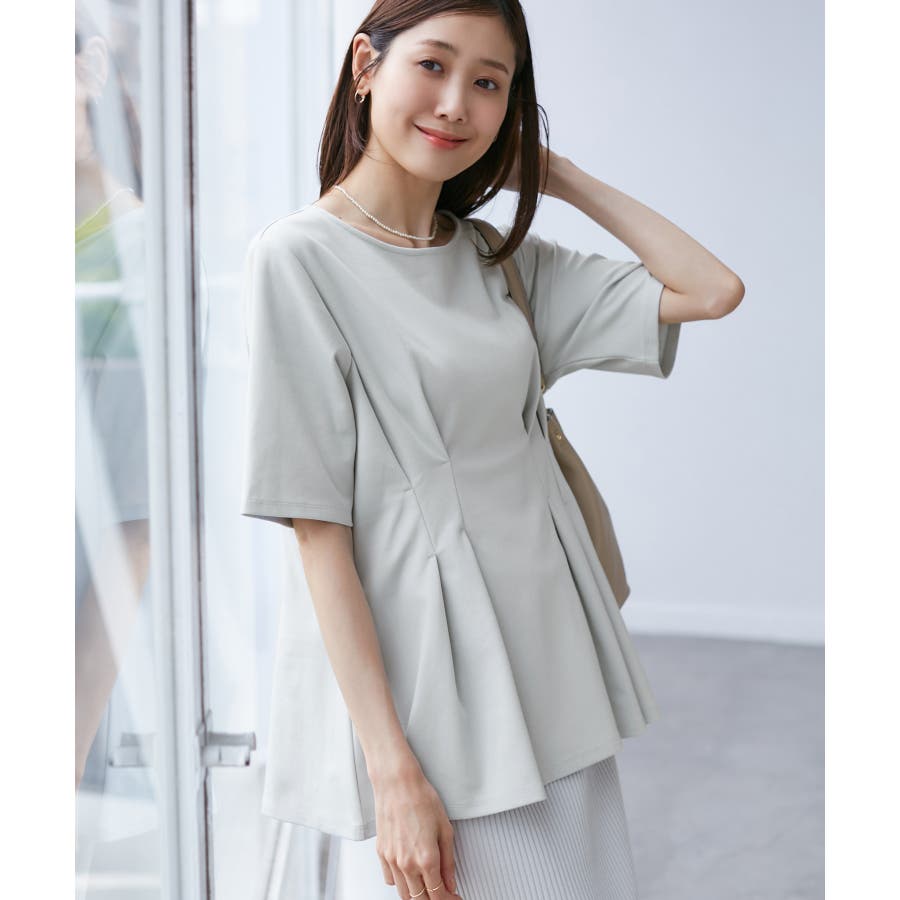 (接触冷感×UVカット)ウエストタックペプラムトップス