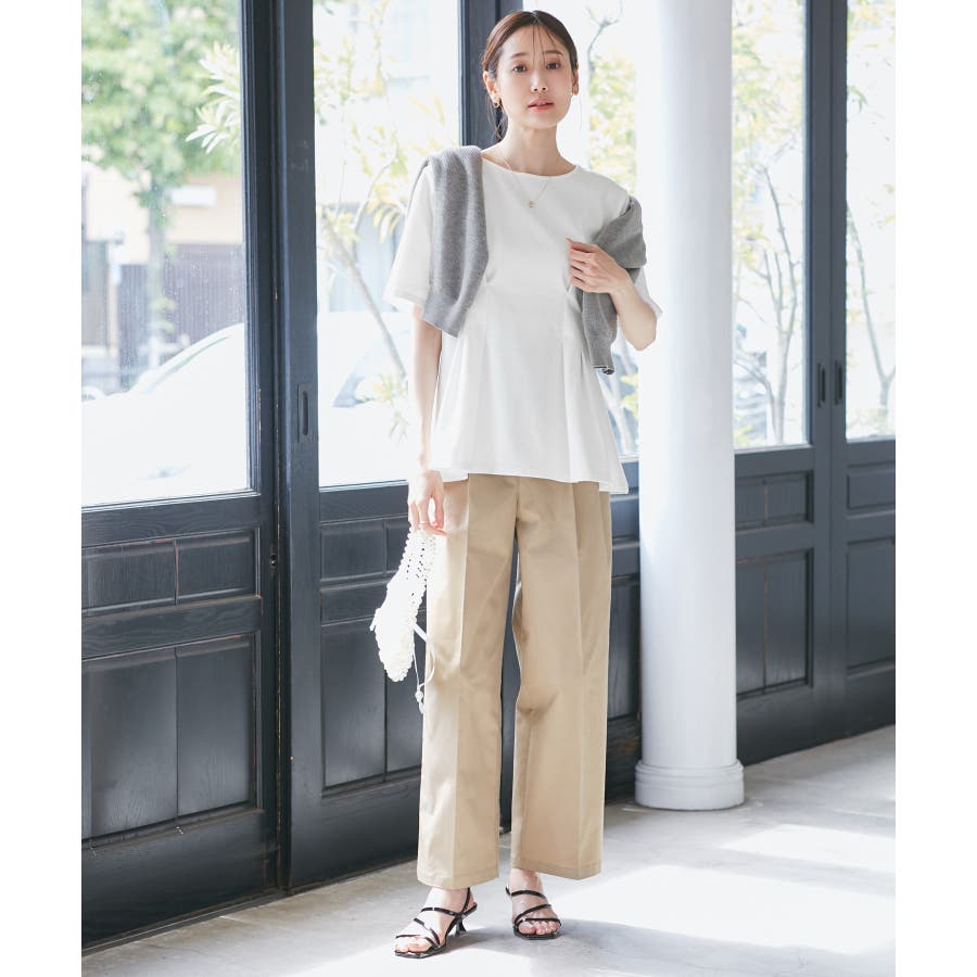 ・素材はやや厚めのカットソー素材で、淡い色でもインナーの透けを気にせず使える。