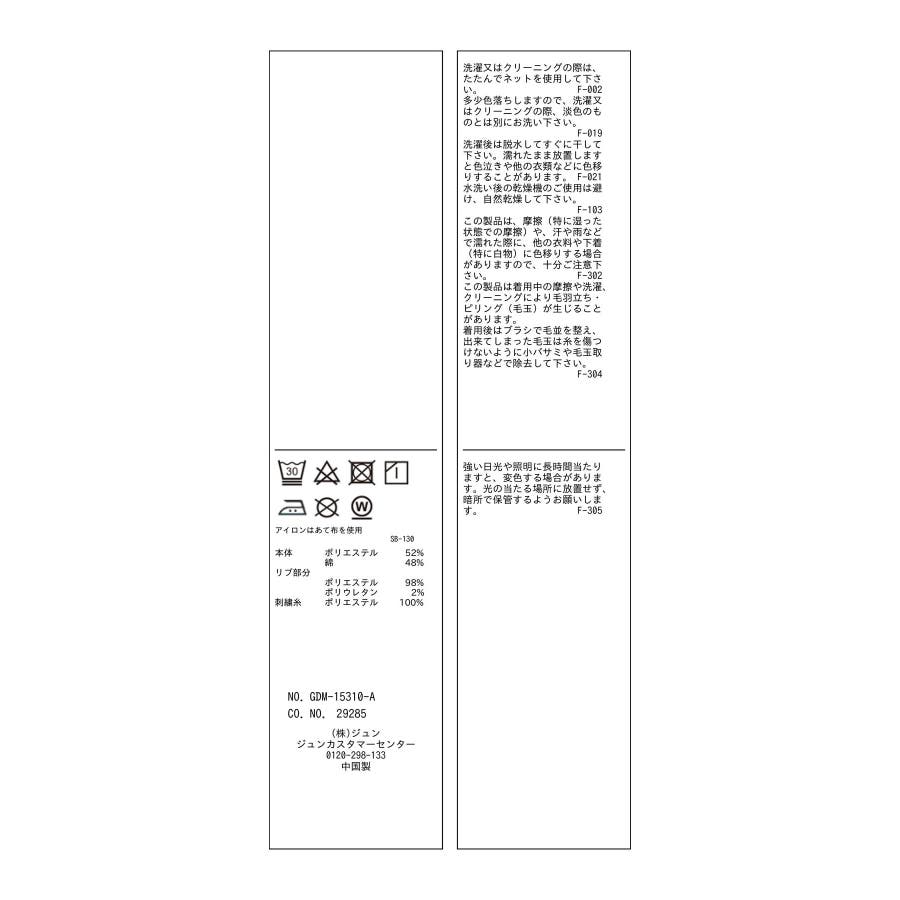 | 素材 | グレー系(09):ポリエステル 52% 綿 48% ポリエステル 98% ポリウレタン 2% ポリエステル %100|オフホワイト(15):ポリエステル 52% 綿 48% ポリエステル 98% ポリウレタン 2% ポリエステル %100|ネイビー(40):ポリエステル 52% 綿 48% ポリエステル 98% ポリウレタン 2% ポリエステル %100|ピンク(63):ポリエステル 52% 綿 48% ポリエステル 98% ポリウレタン 2% ポリエステル %100 |