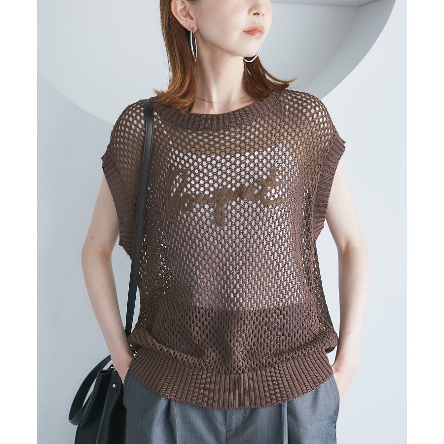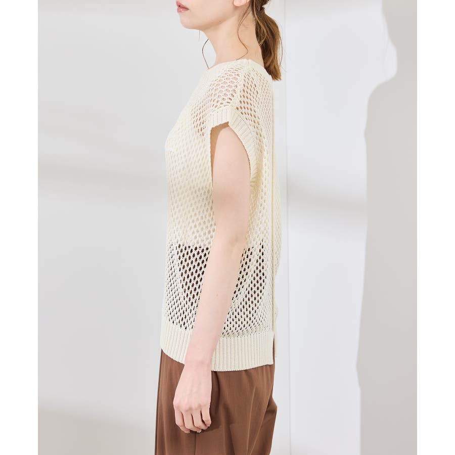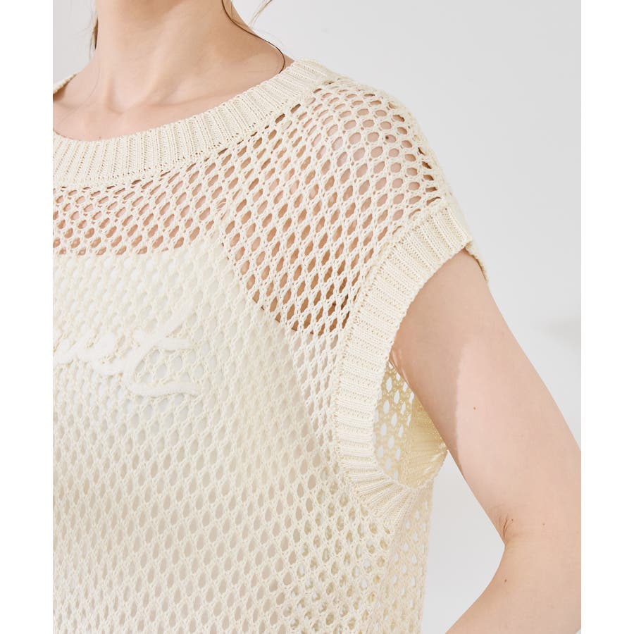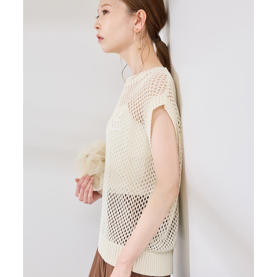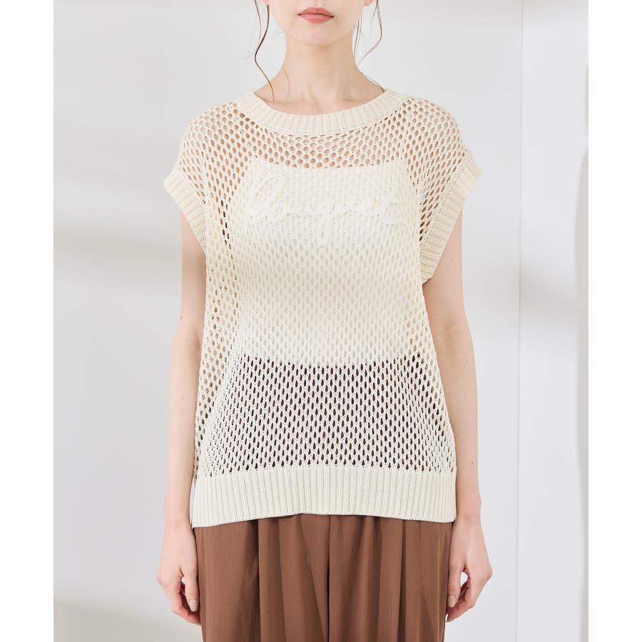 コード刺繍入りメッシュサマーニット