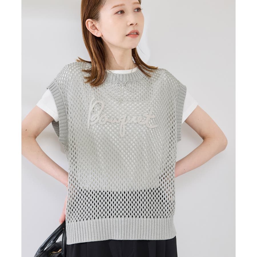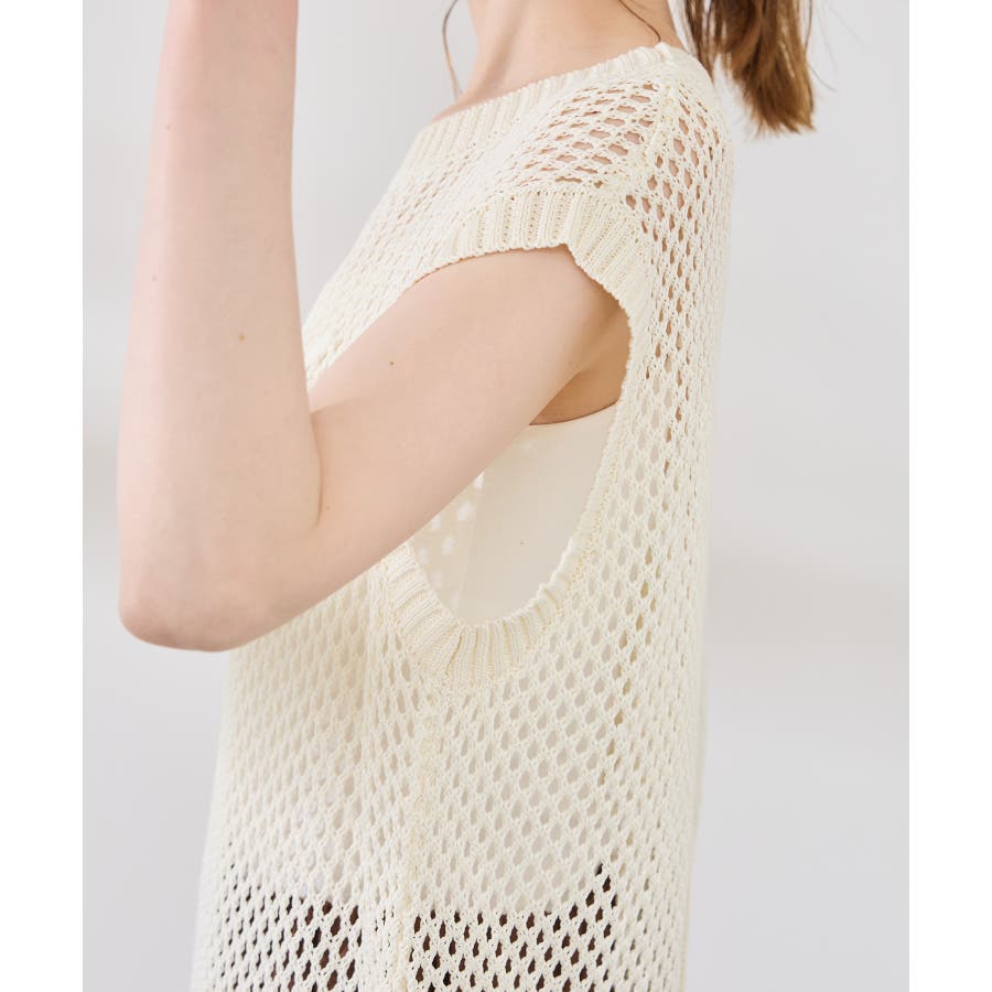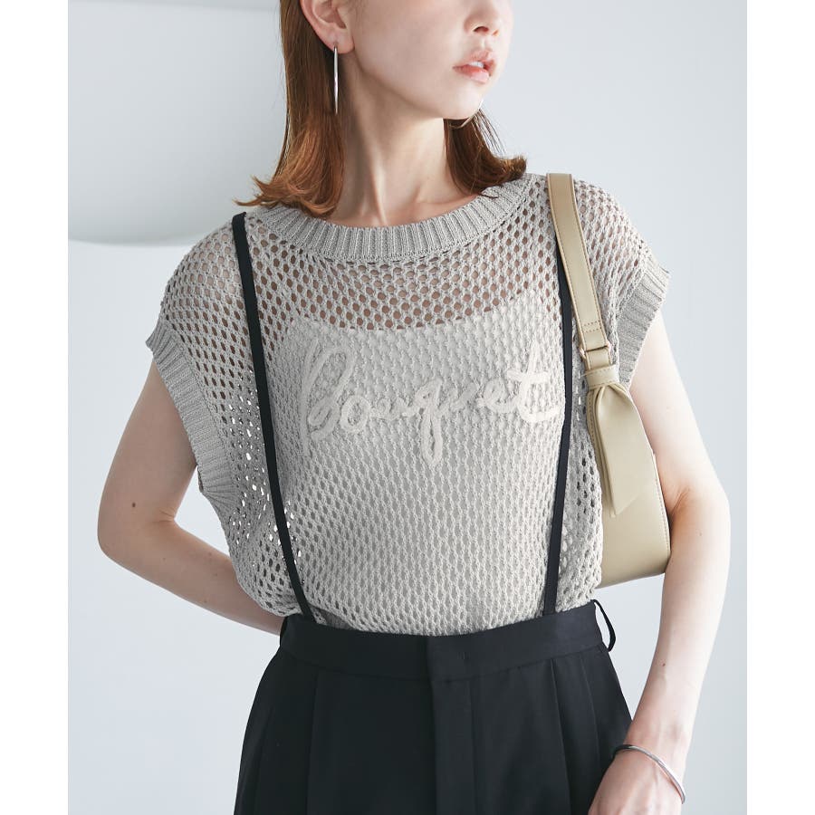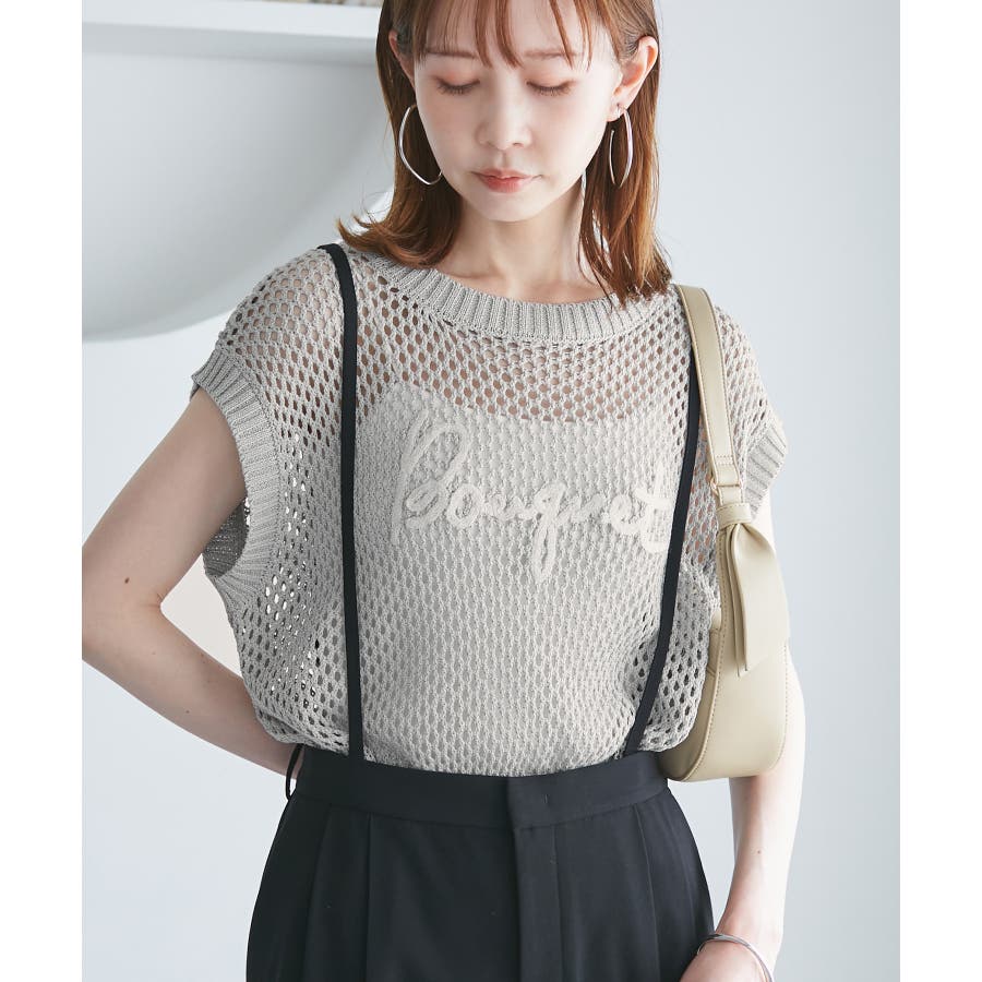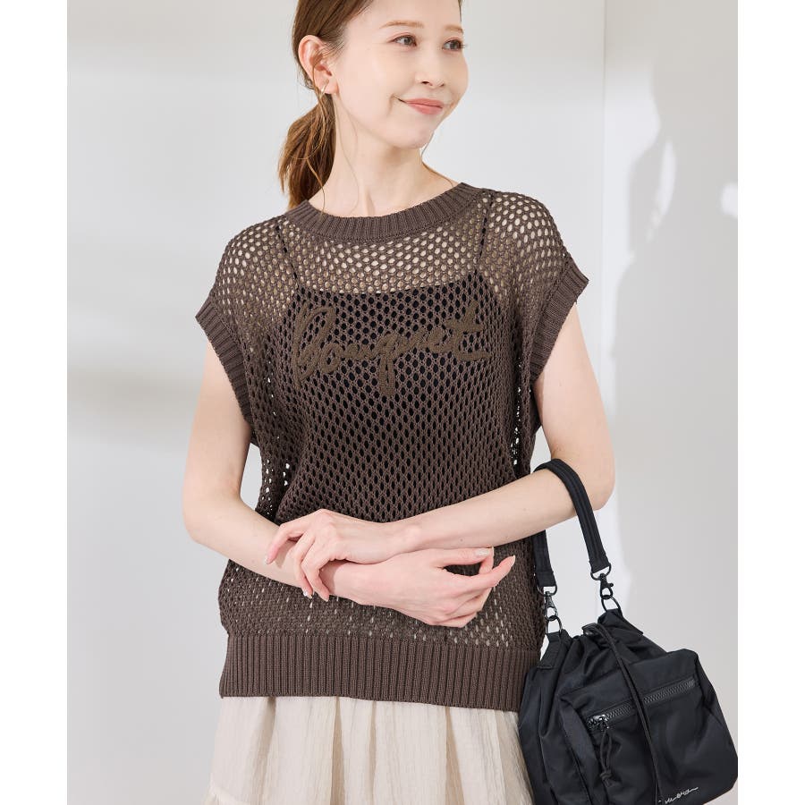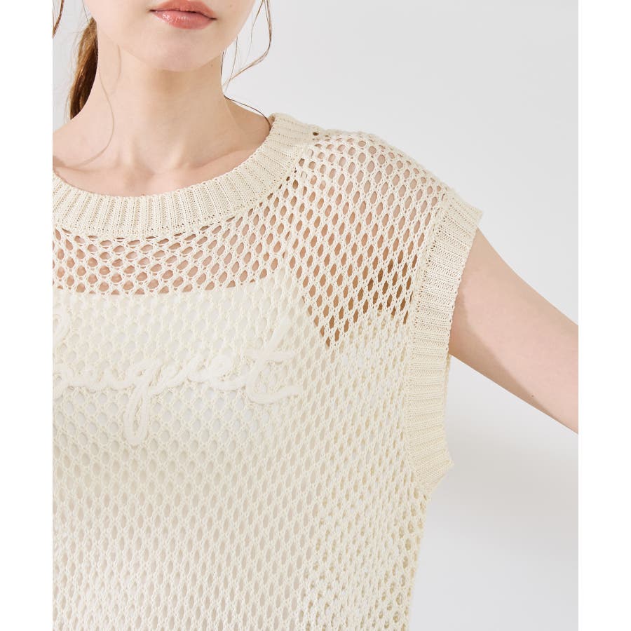 コード刺繍入りメッシュサマーニット