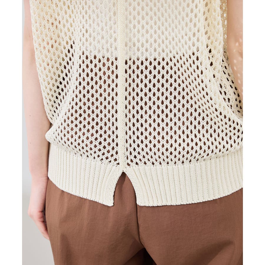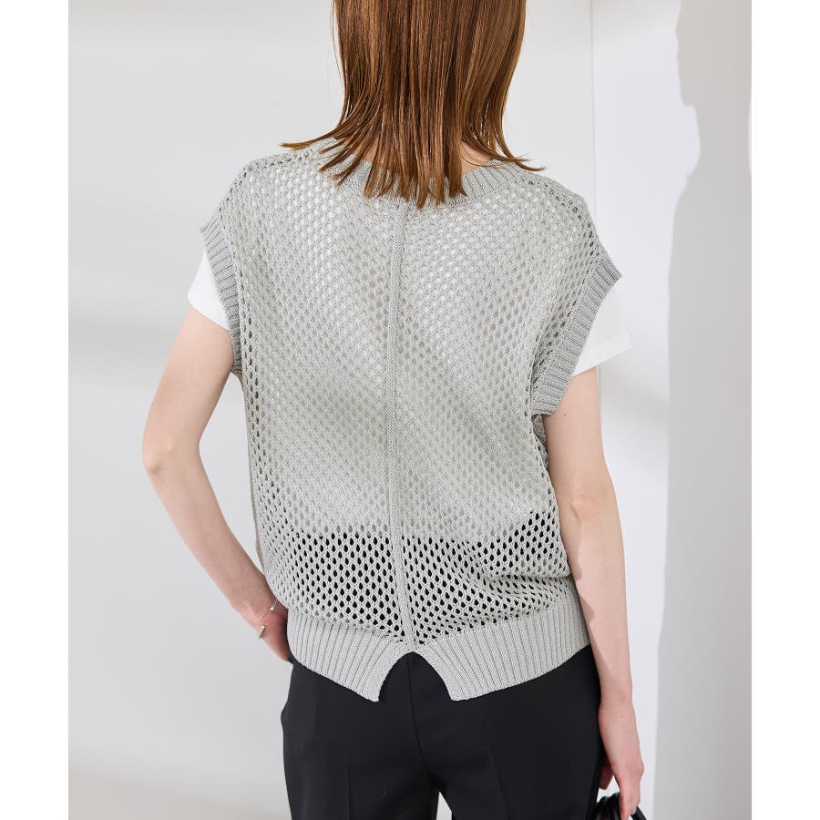 ・やや光沢感のある糸を編んだメッシュニット。
