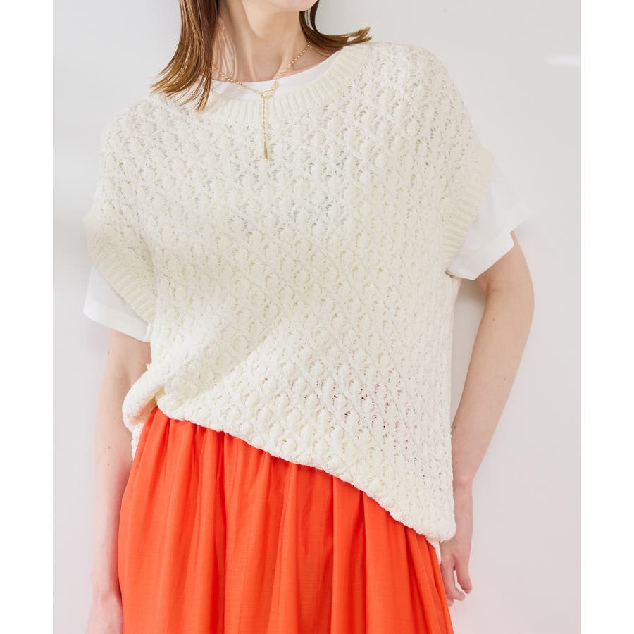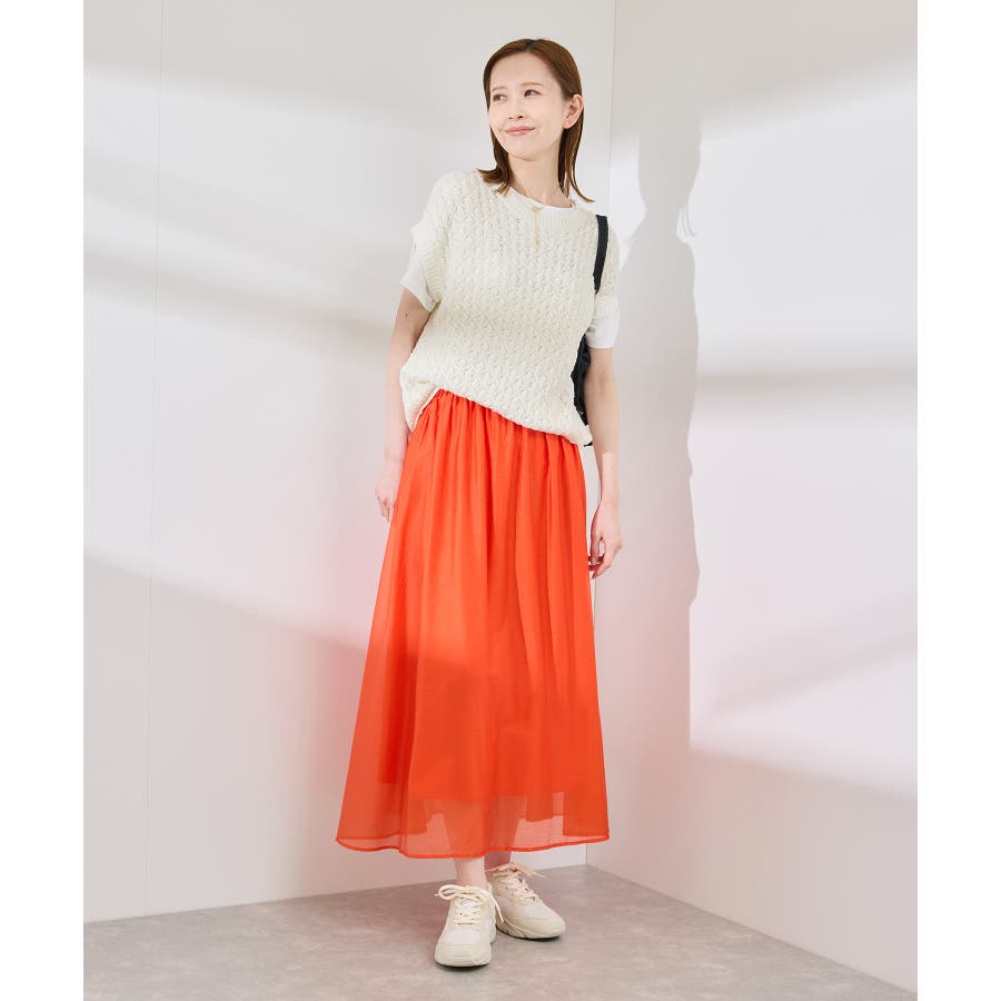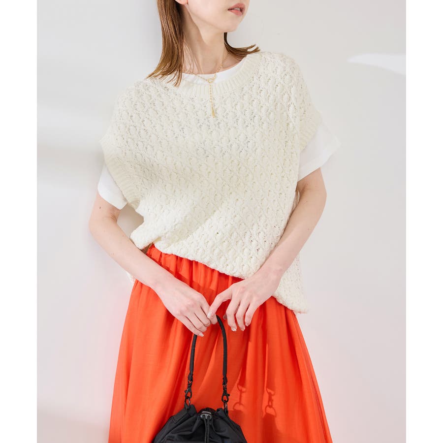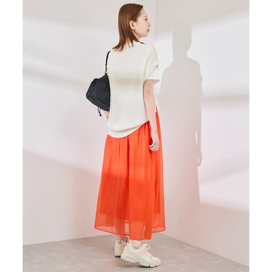 ・ほどよい透け感でインナーとのレイヤードスタイルも楽しめる。