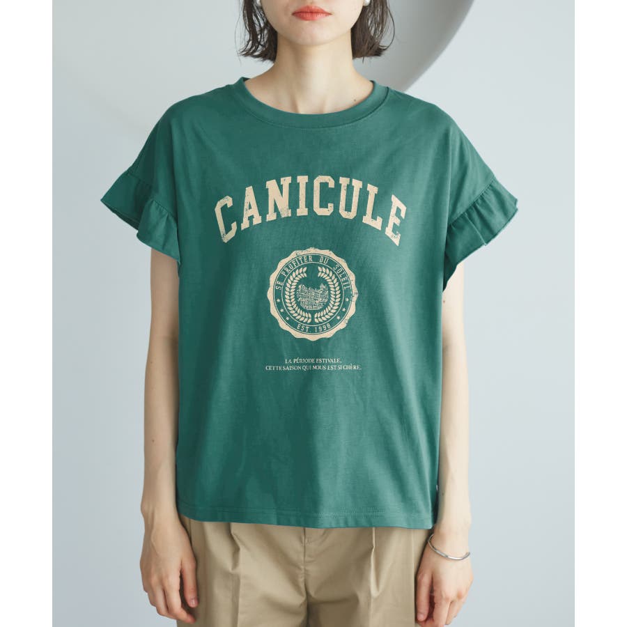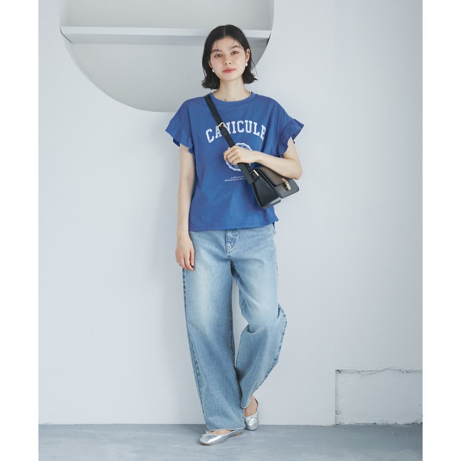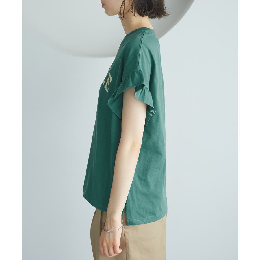 袖フリルカレッジロゴTシャツ