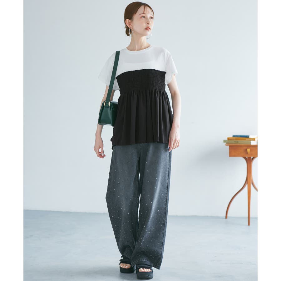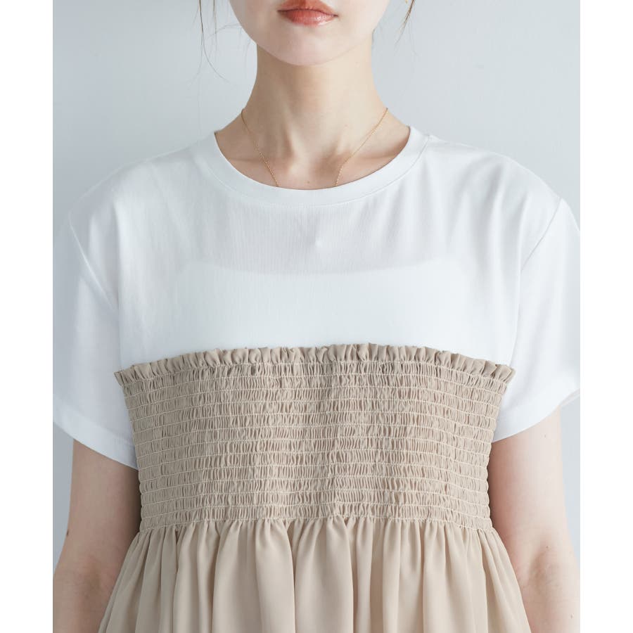 シャーリングビスチェ風ドッキングカットソー