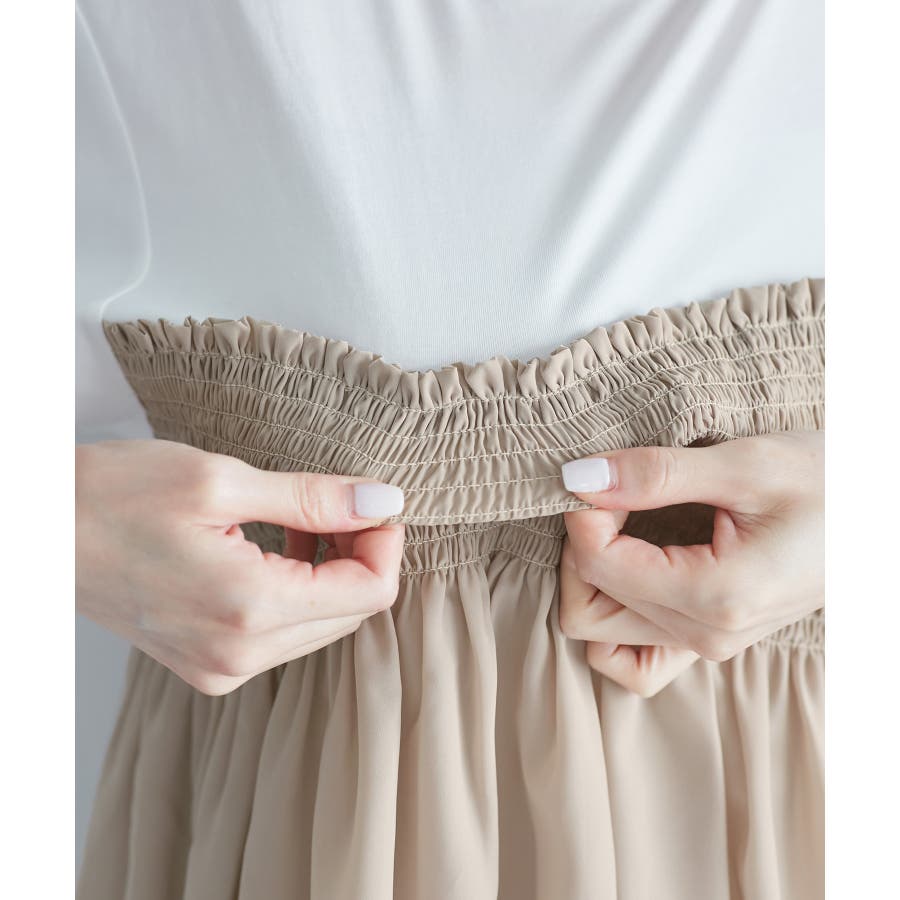 バスト位置が高く見え、ウエスト周りもカバーしてくれる嬉しい1着です。