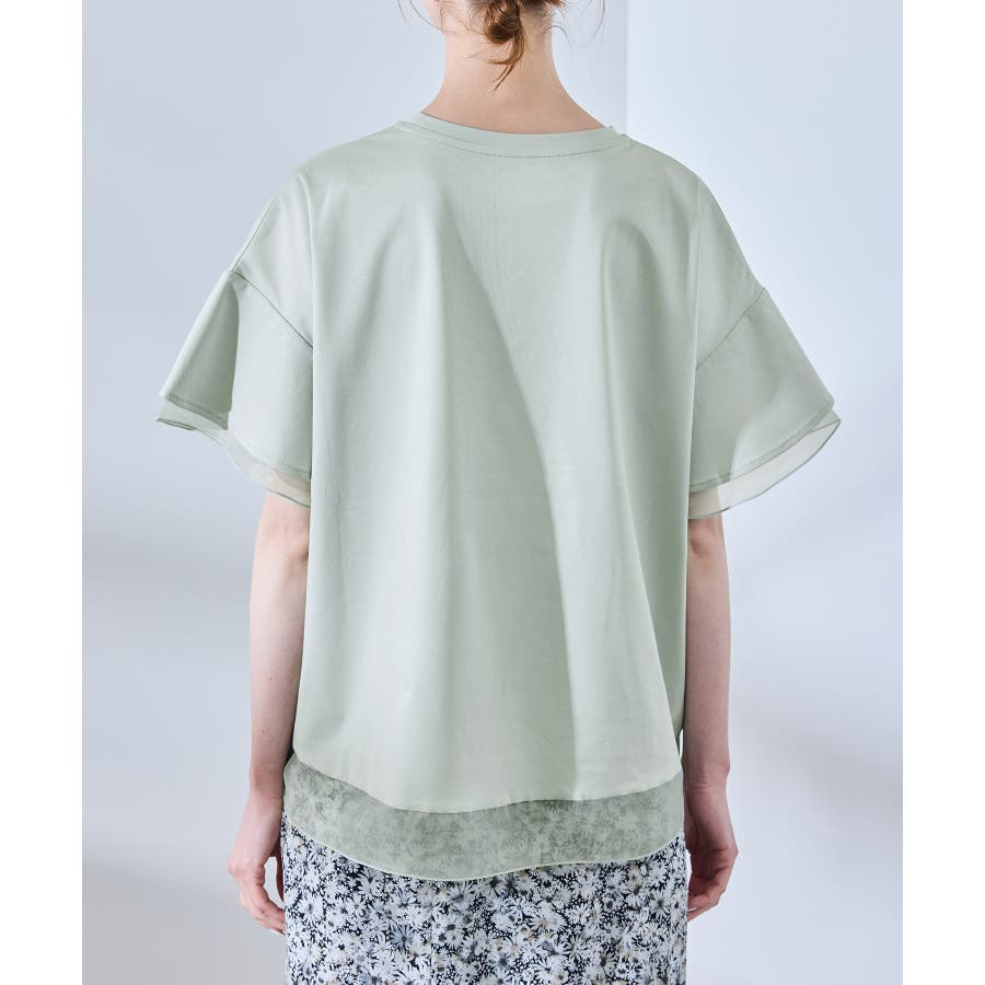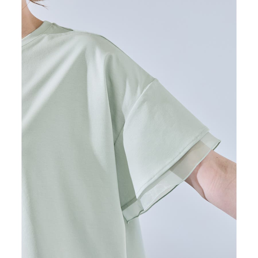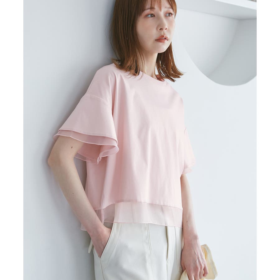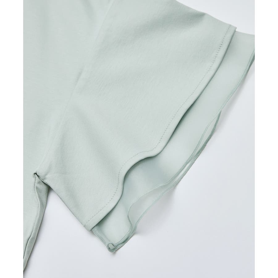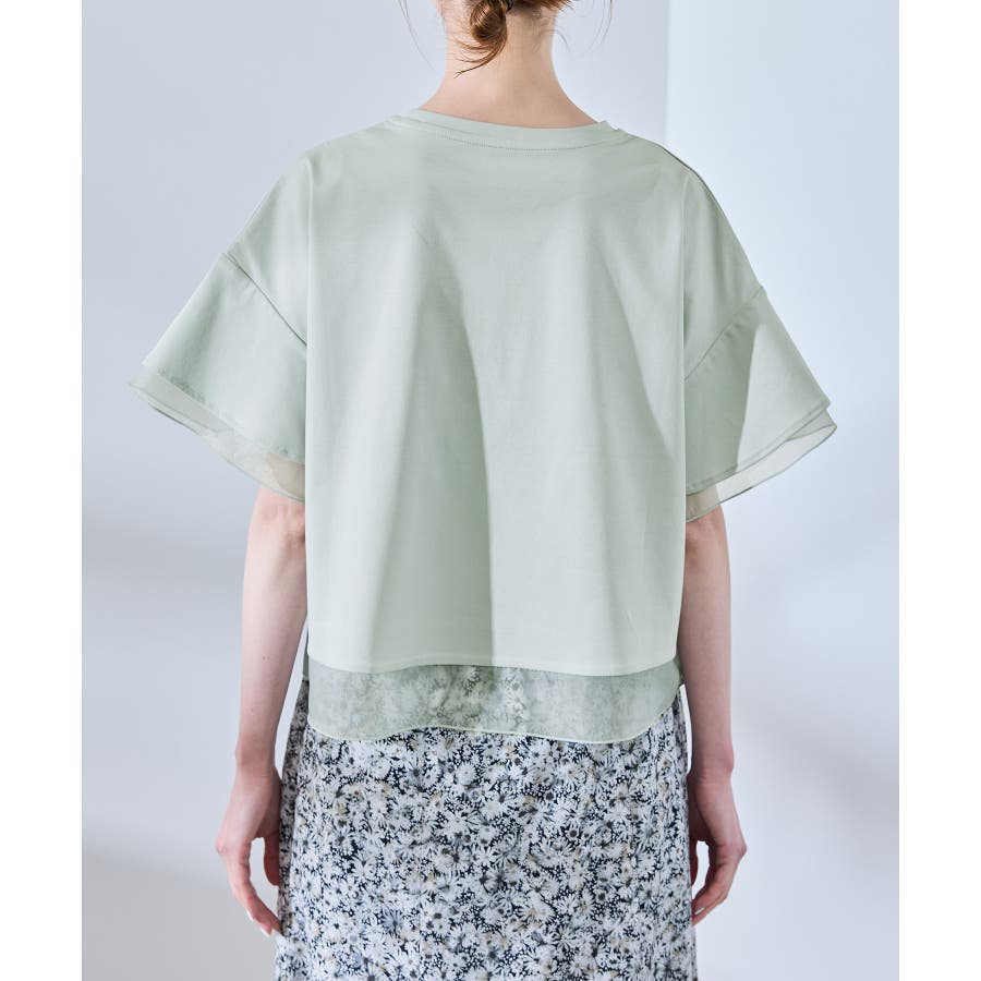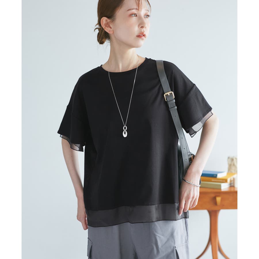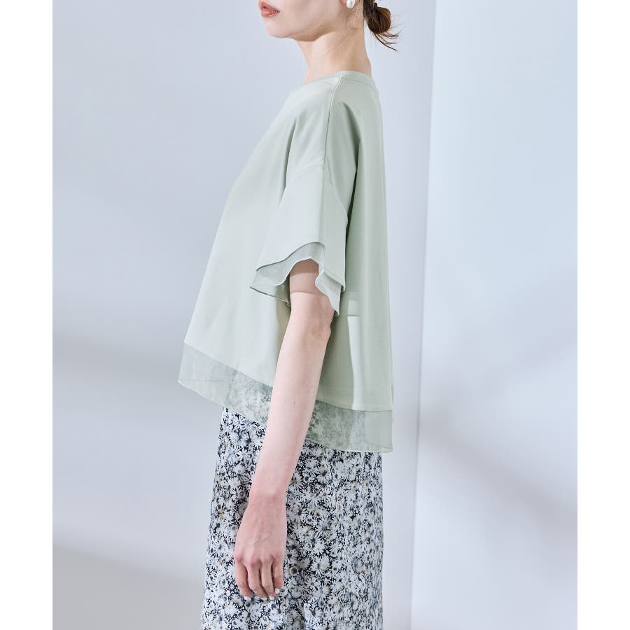・袖口や裾は、シアーな布帛素材で切り替えた半袖トップス。