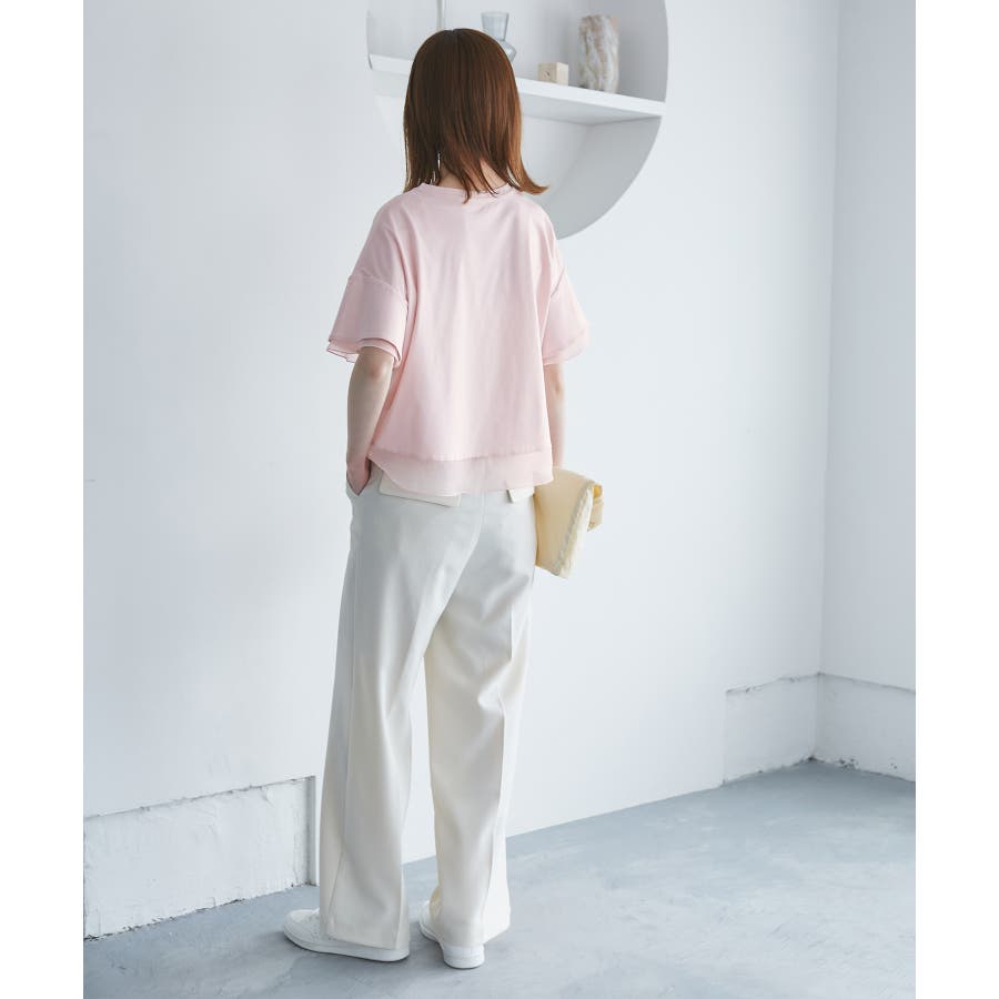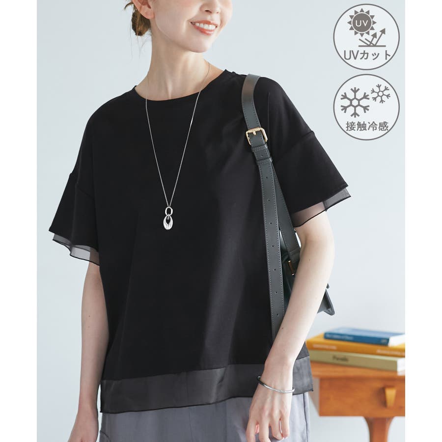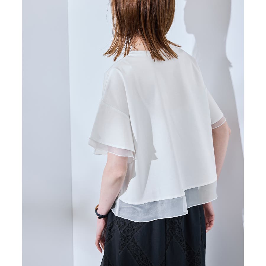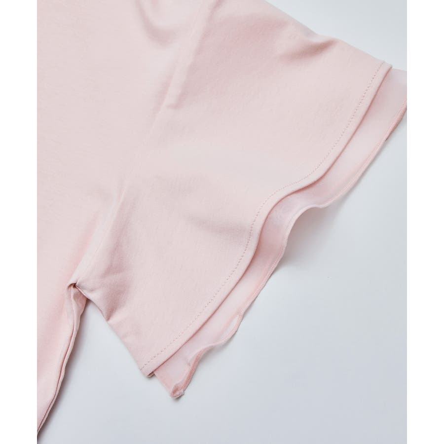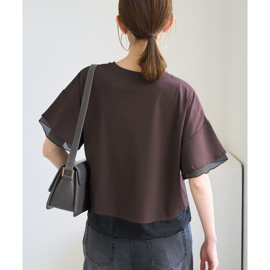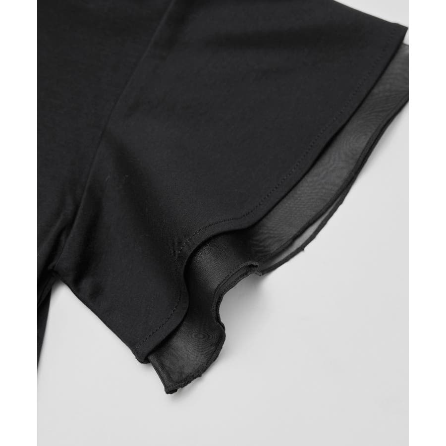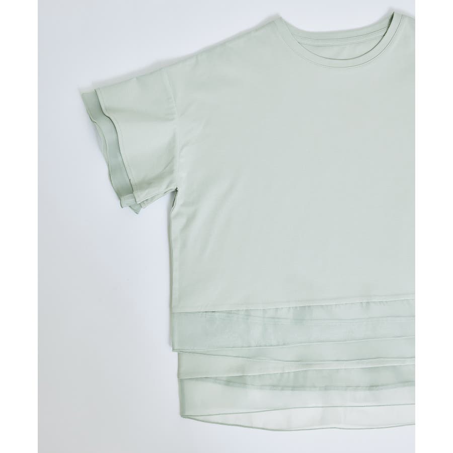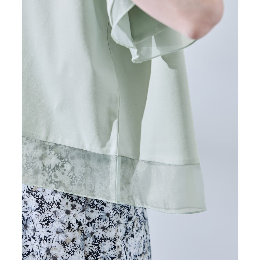 ・袖口や裾は、シアーな布帛素材で切り替えた半袖トップス。
