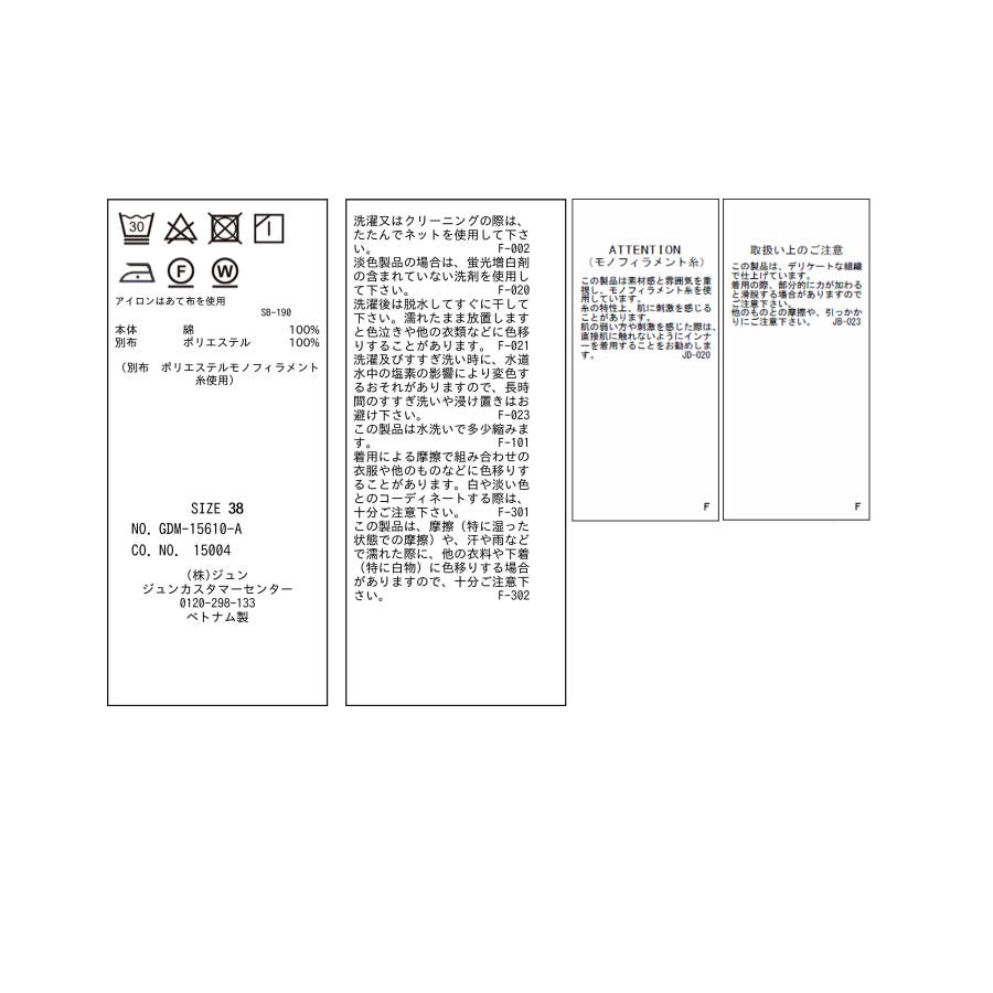 【洗濯表記】洗濯機|漂白不可|タンブル乾燥不可|自然乾燥|アイロン仕上げ可|ドライ可|ウエットクリーニング可