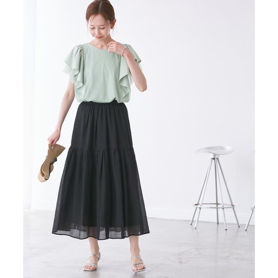 ・きれいめパンツやスカートで、オフィスカジュアルとしても対応。