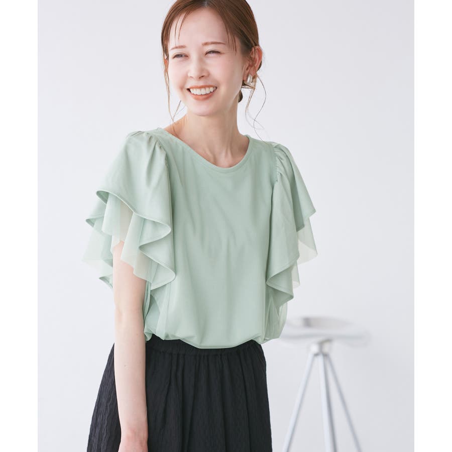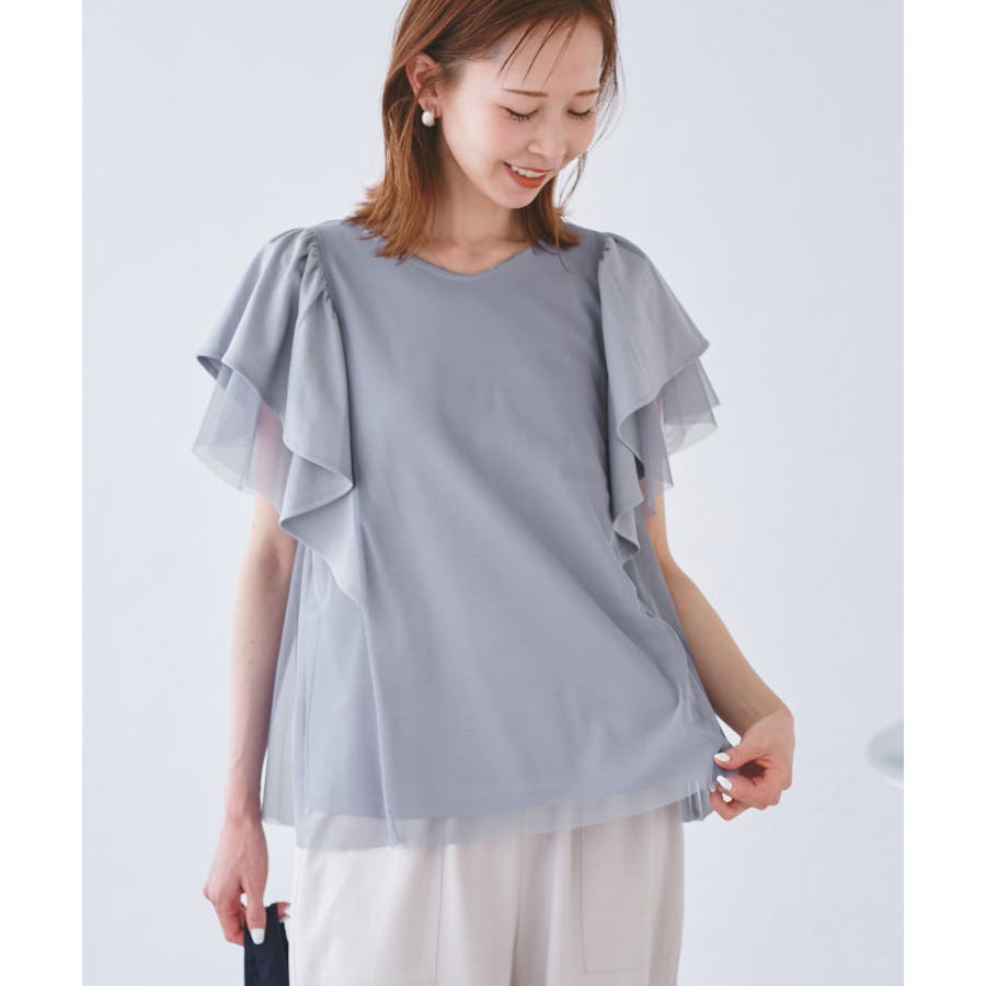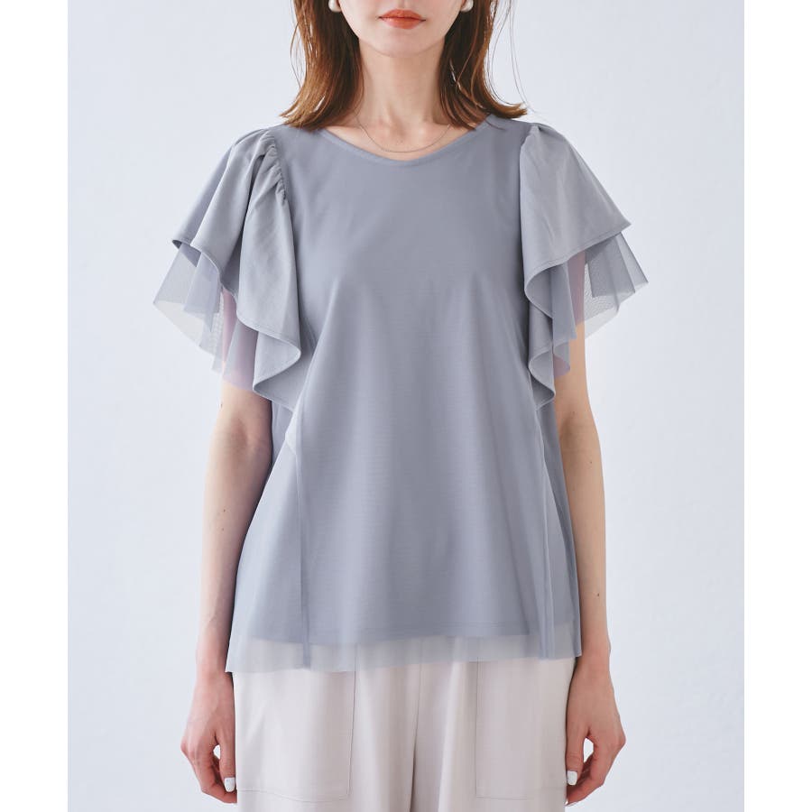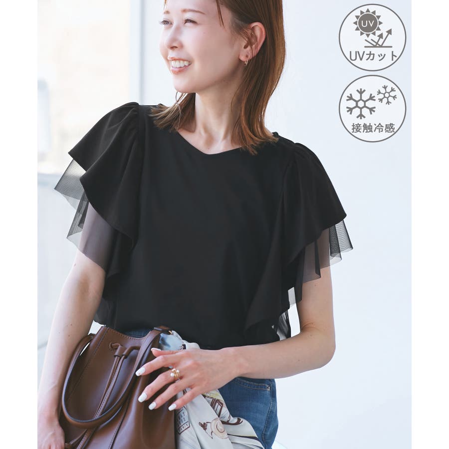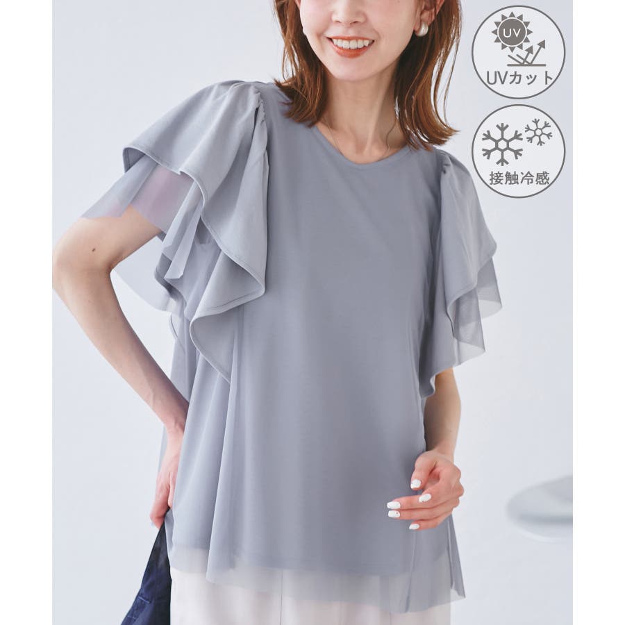 【UVカット・接触冷感】Cutee チュールレイヤード風フリルトップス
