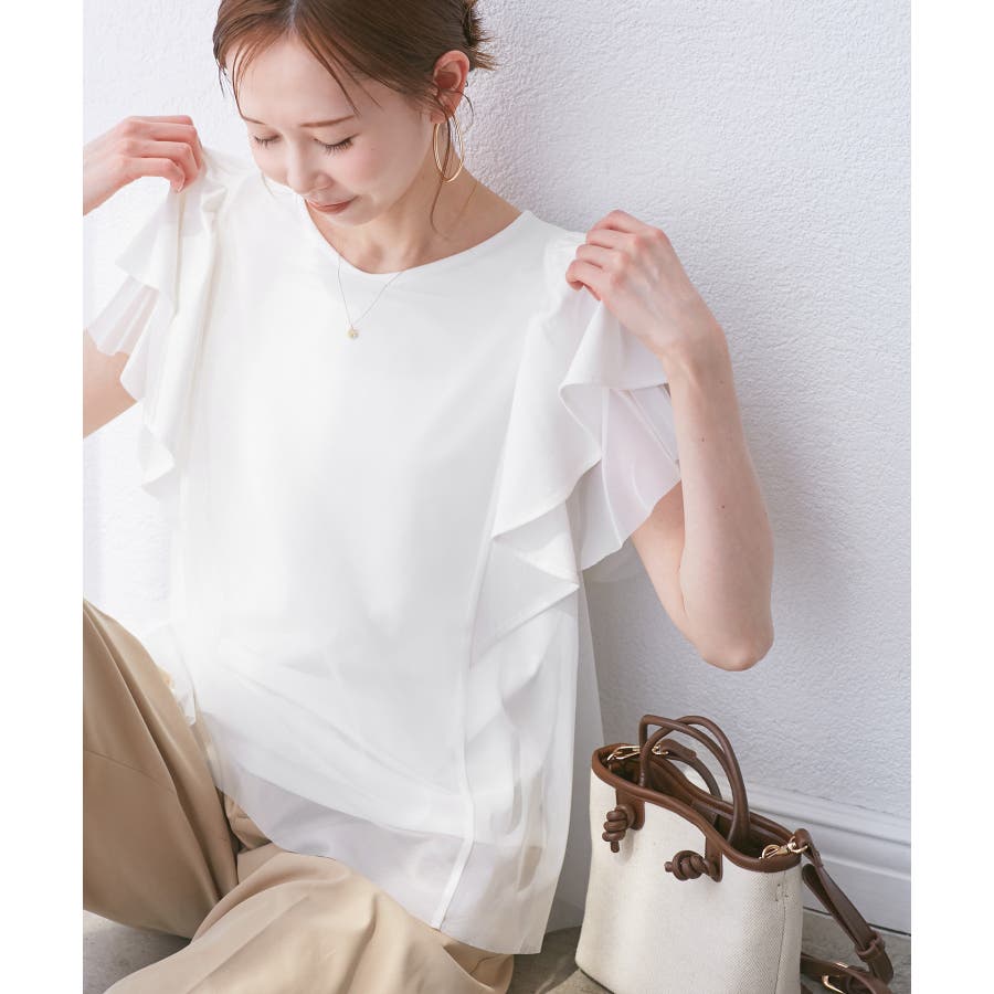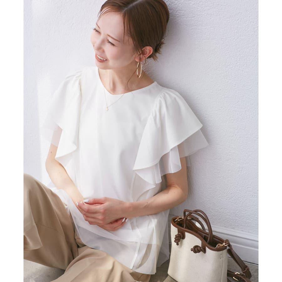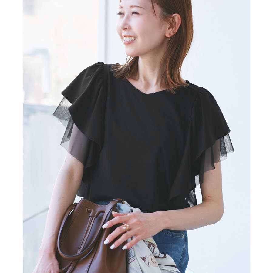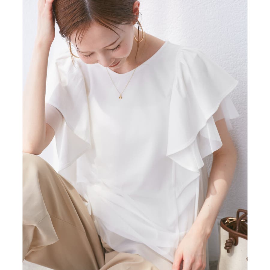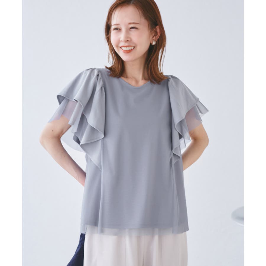 【UVカット・接触冷感】Cutee チュールレイヤード風フリルトップス