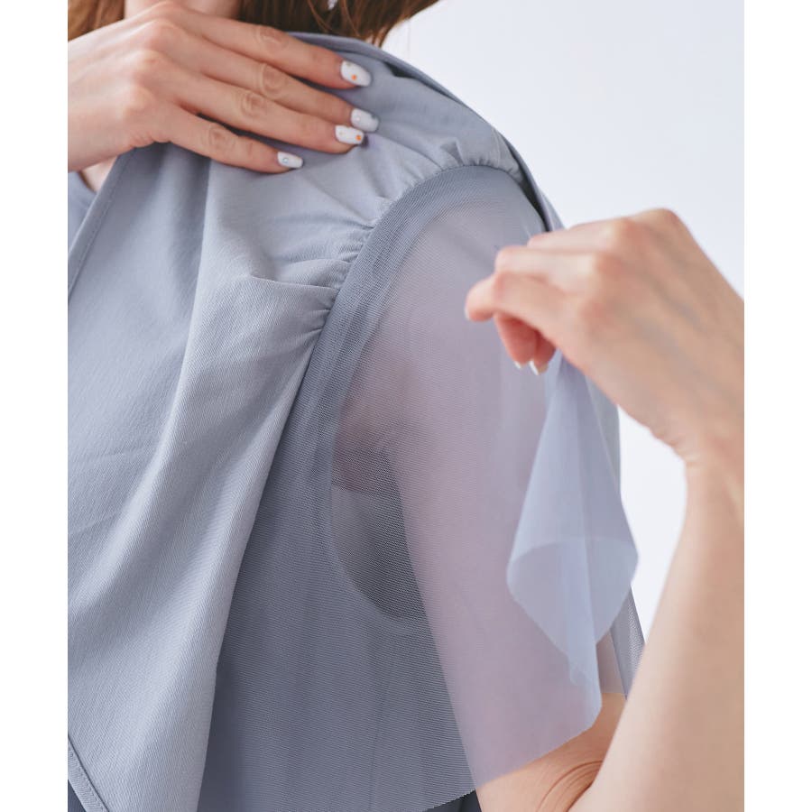 ・軽やかなチュールを重ねた、ボリューミーなフリルスリーブが華やか。