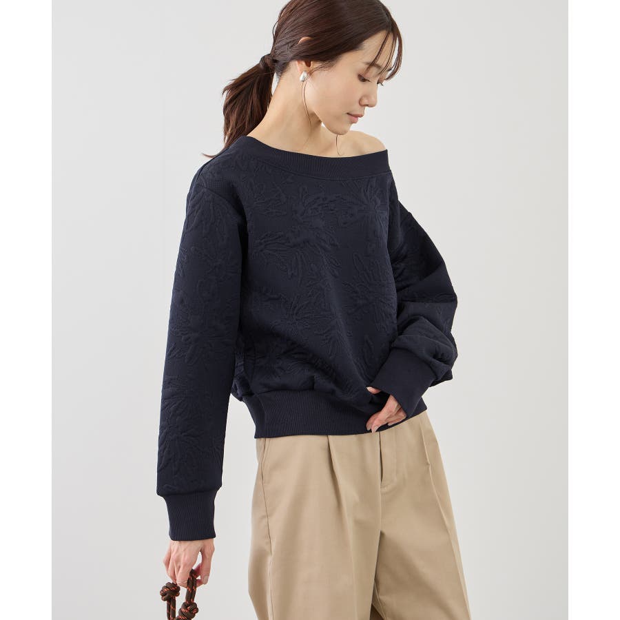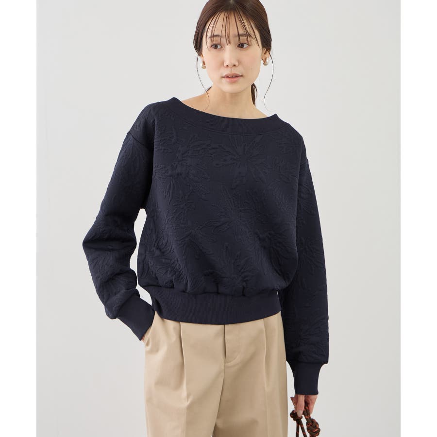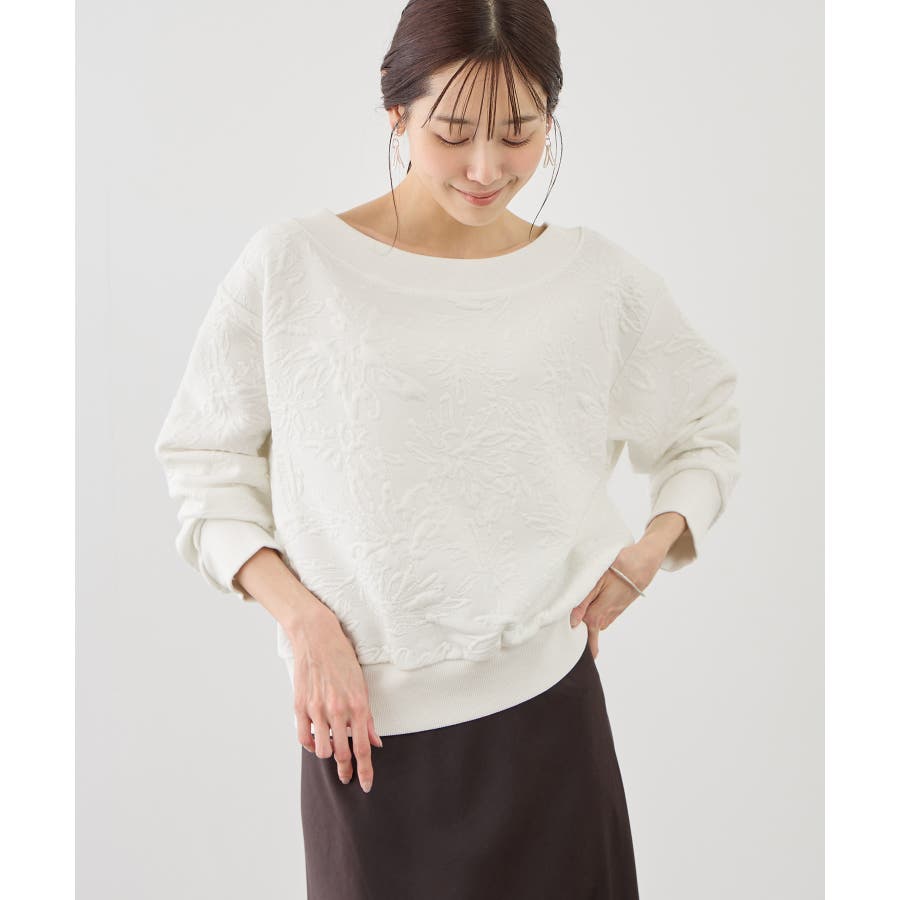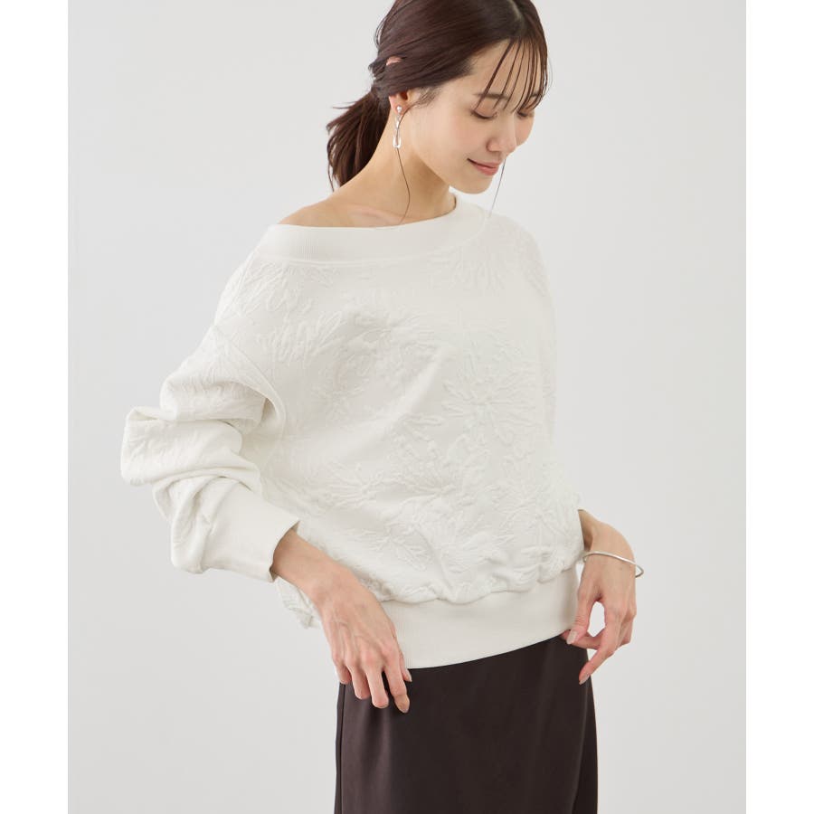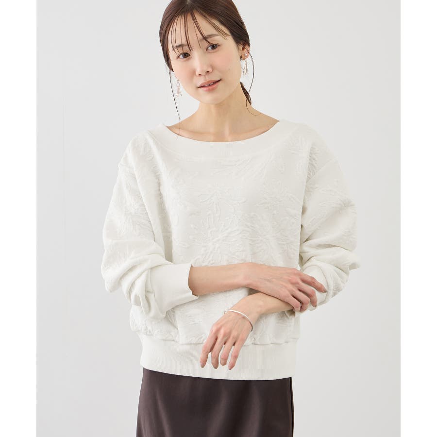 2WAYボートネック花柄ふくれジャガードプルオーバー