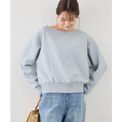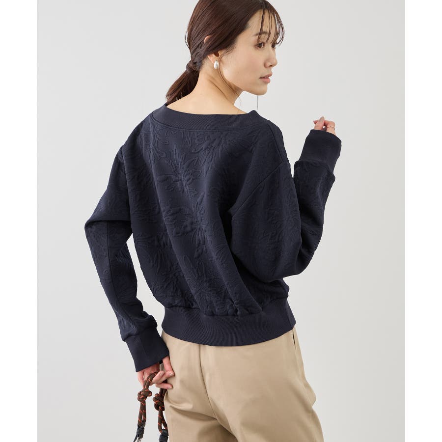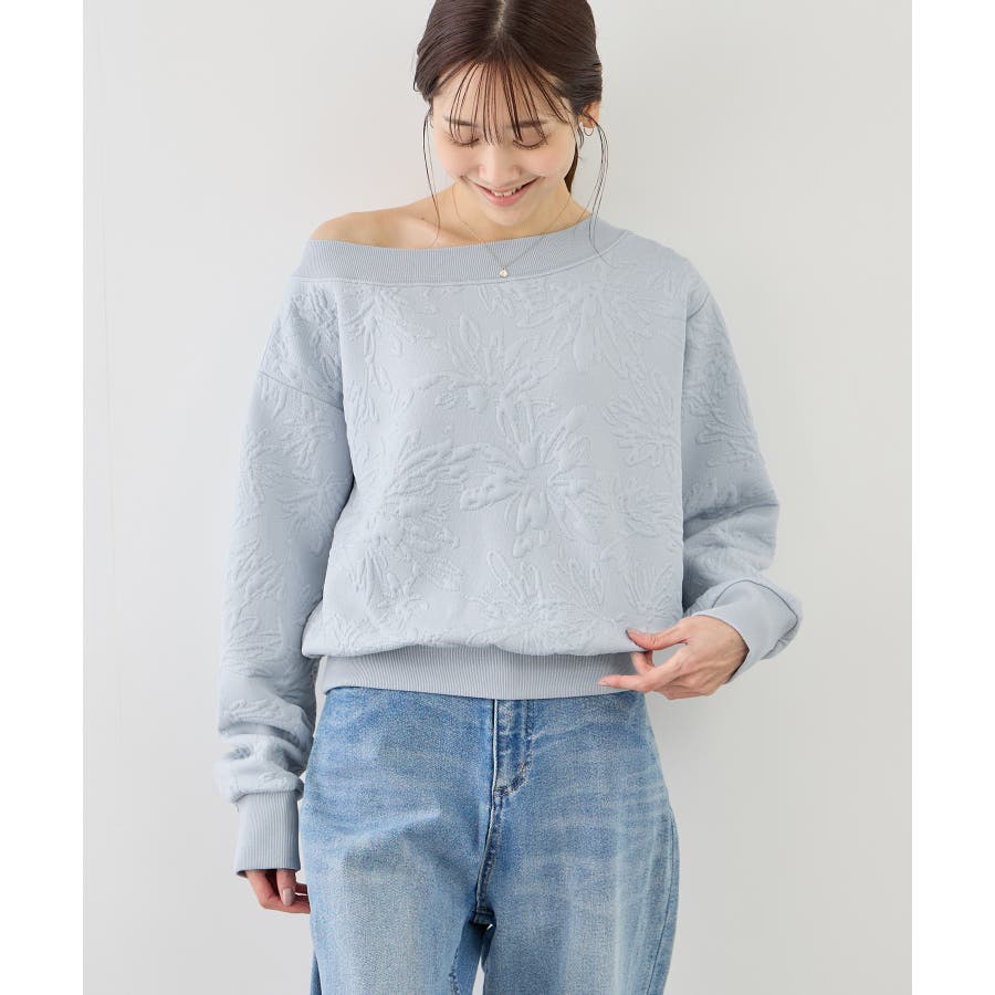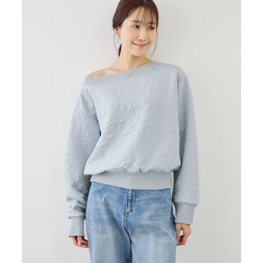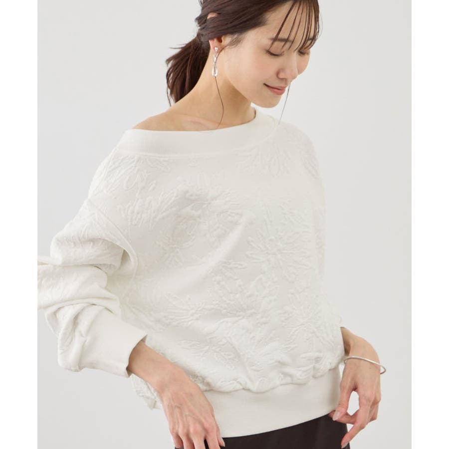 2WAYボートネック花柄ふくれジャガードプルオーバー