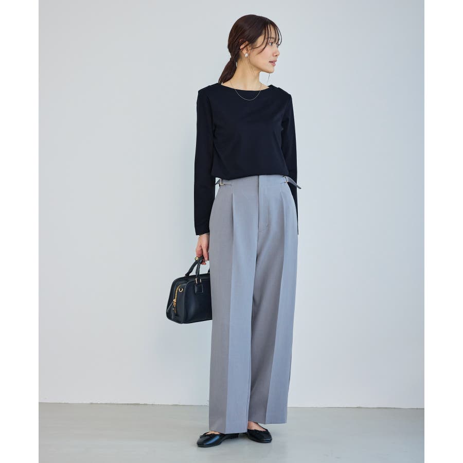 ・センタープレス入りのワイドパンツと合わせて、程よく力の抜けたきれいめスタイルに。