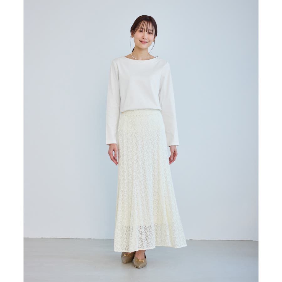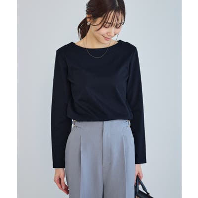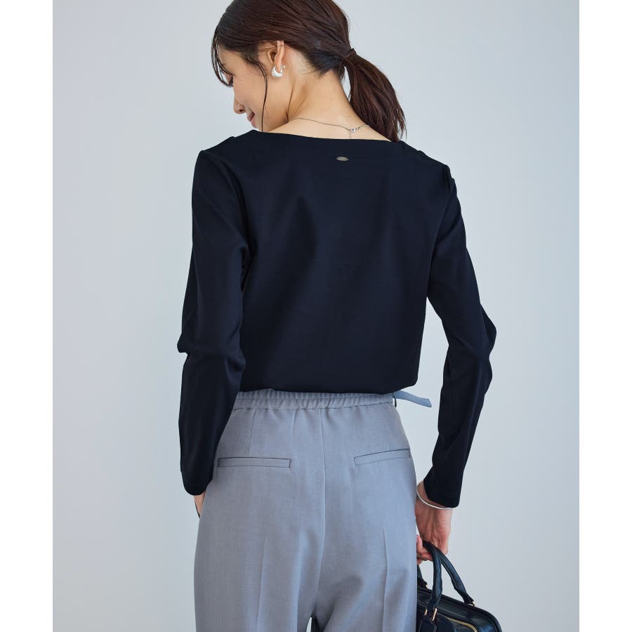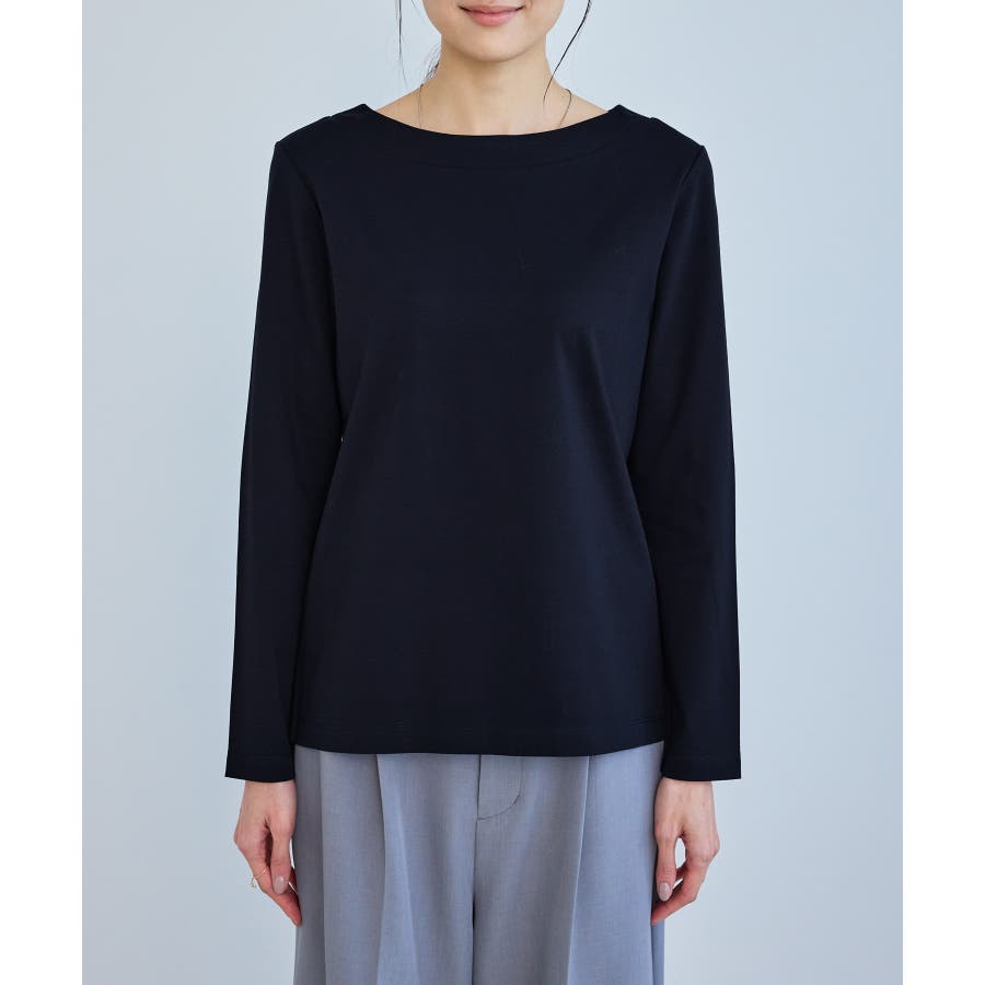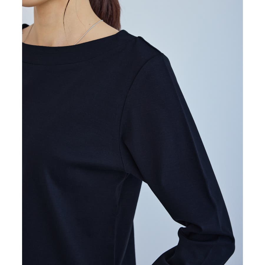 ・程よい抜け感を演出するボートネックデザイン。