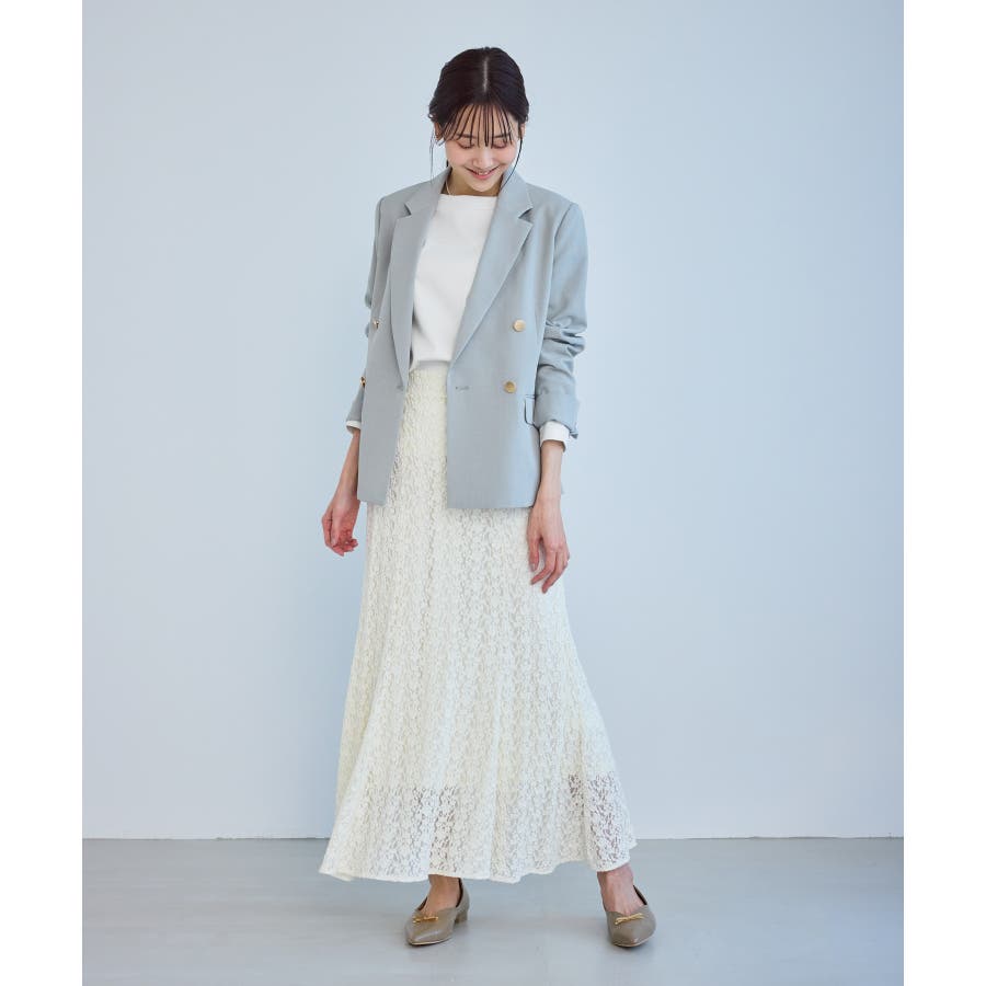 ・身体のラインを拾いにくい、ジャケットに合わせやすい程よいタイトシルエット。