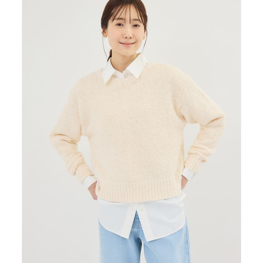 ・片畦編みの立体感に、動きのあるフリンジヤーンを掛け合わせた表情豊かなニット。