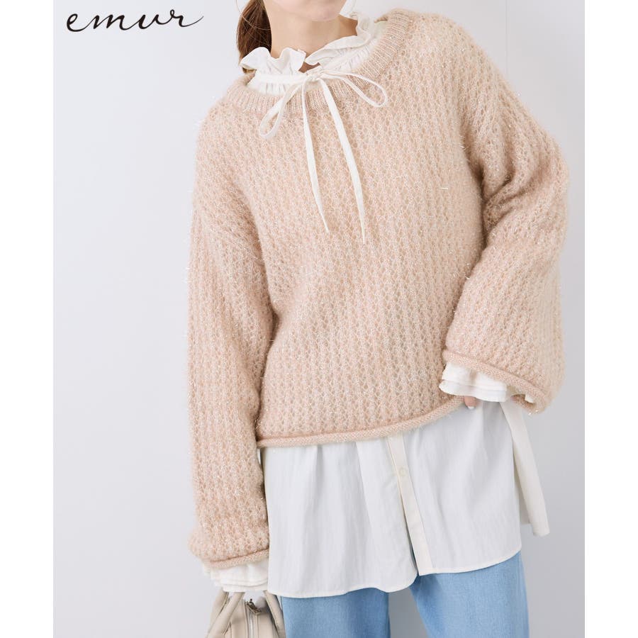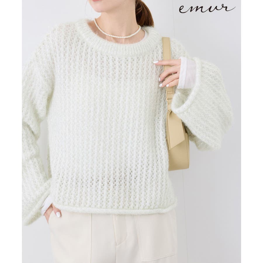 【emur/エミュール】フェザーラメメッシュ編みニット