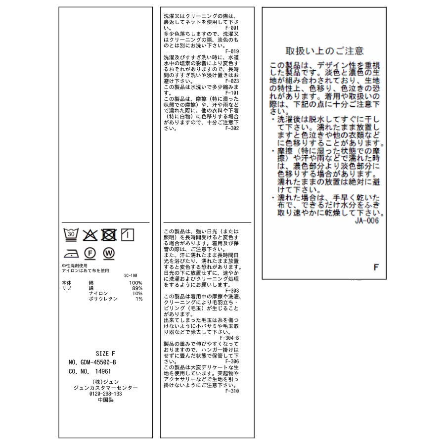 | 素材 | (本体) 綿 100% (リブ) 綿 89% ナイロン 10% ポリウレタン 1% |