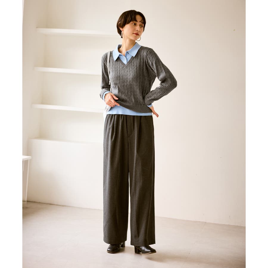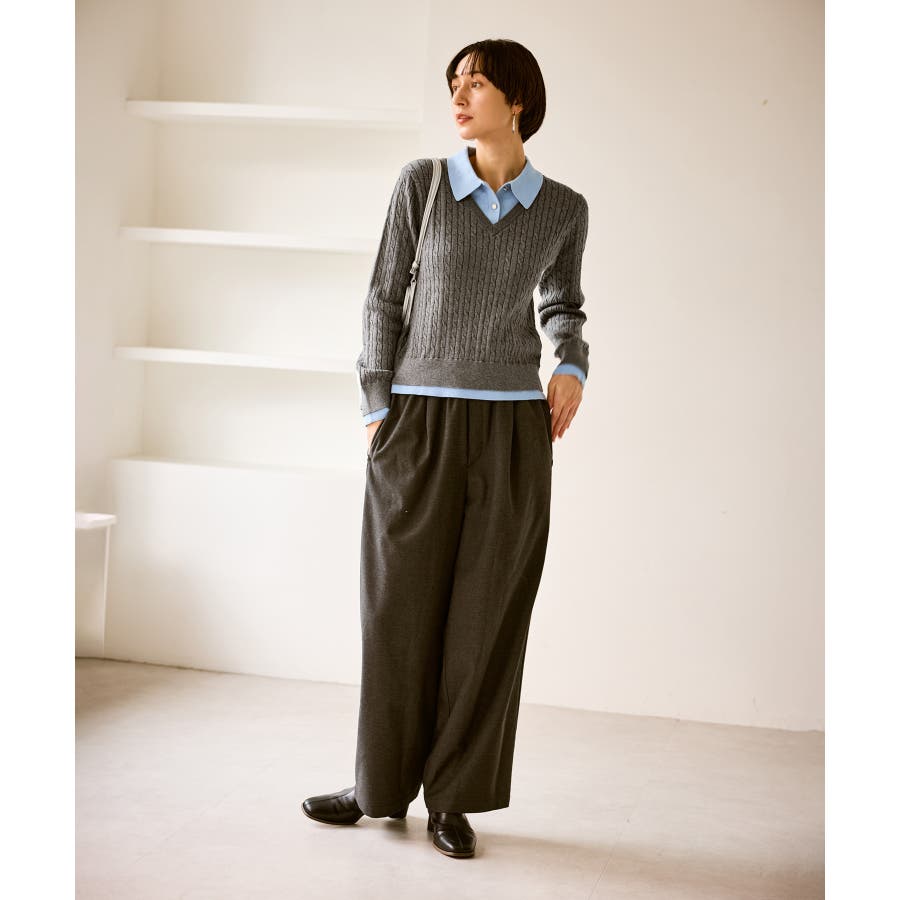 ・ウールライクツイルのワイドパンツ(品番:GDS55100・GDS55110・GDS65100)など、無地のパンツがおすすめ。