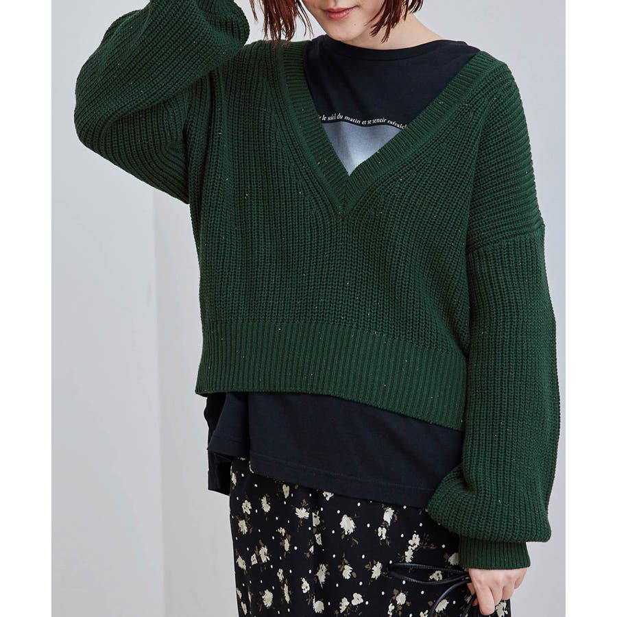 【グリーン(30)】深Vネックプルオーバー
