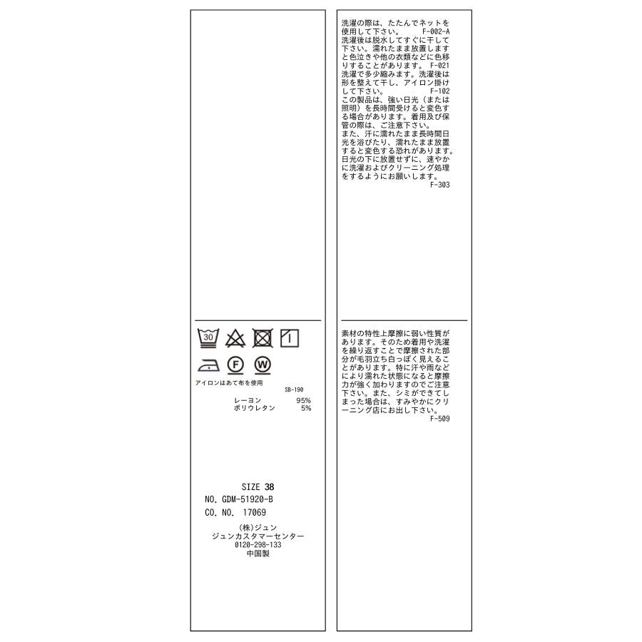 | 素材 | ブラック(01):レーヨン 95% ポリウレタン 5%|オリーブ(37):レーヨン 95% ポリウレタン 5%|ピンク系(65):レーヨン 95% ポリウレタン 5% |