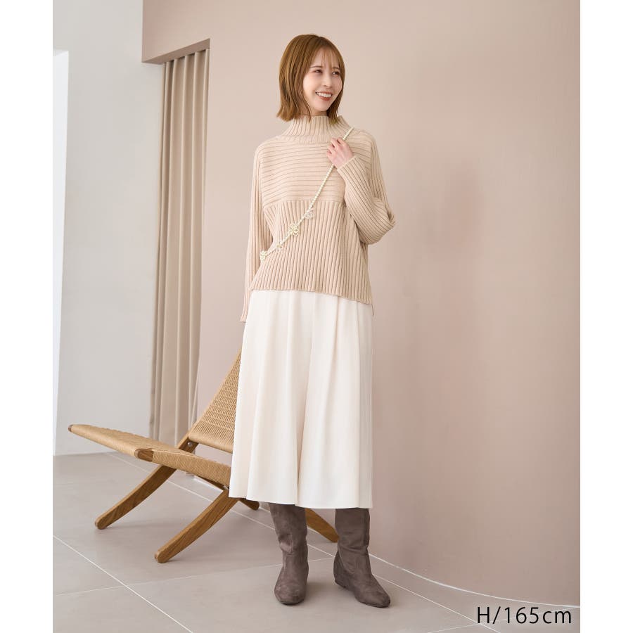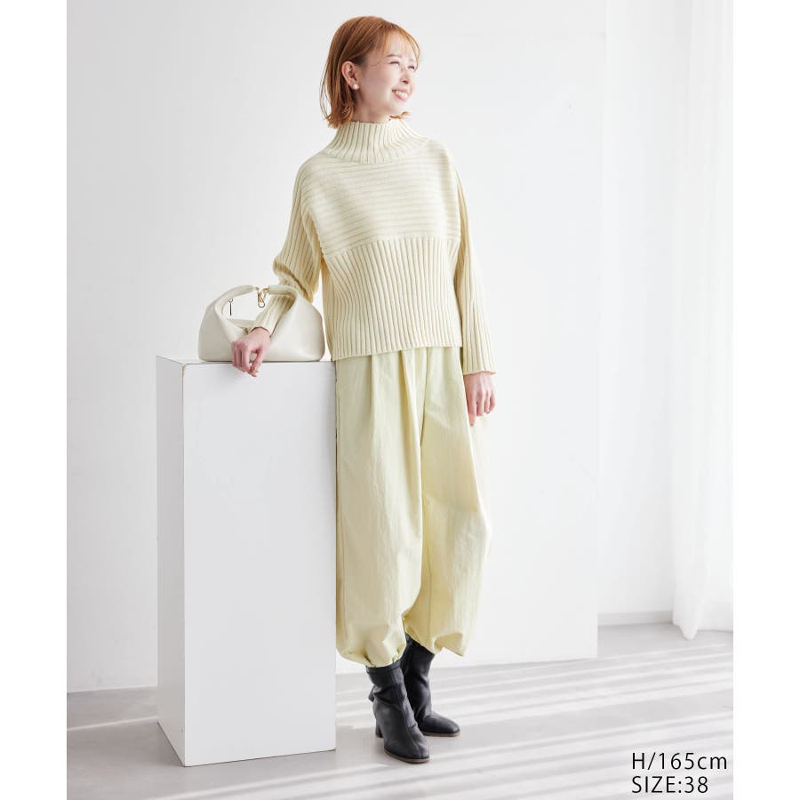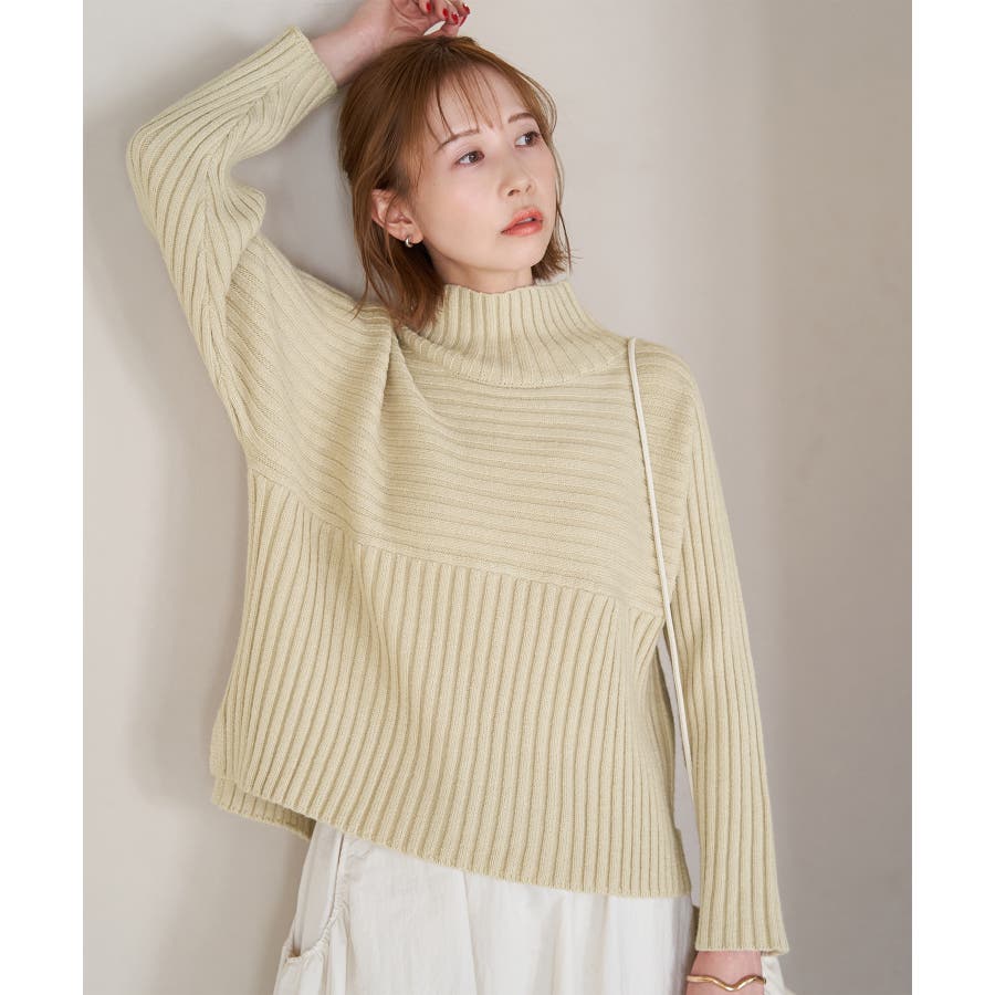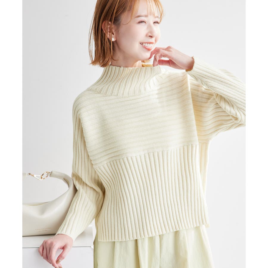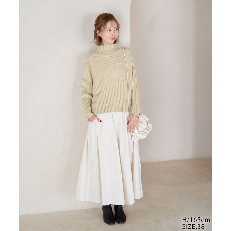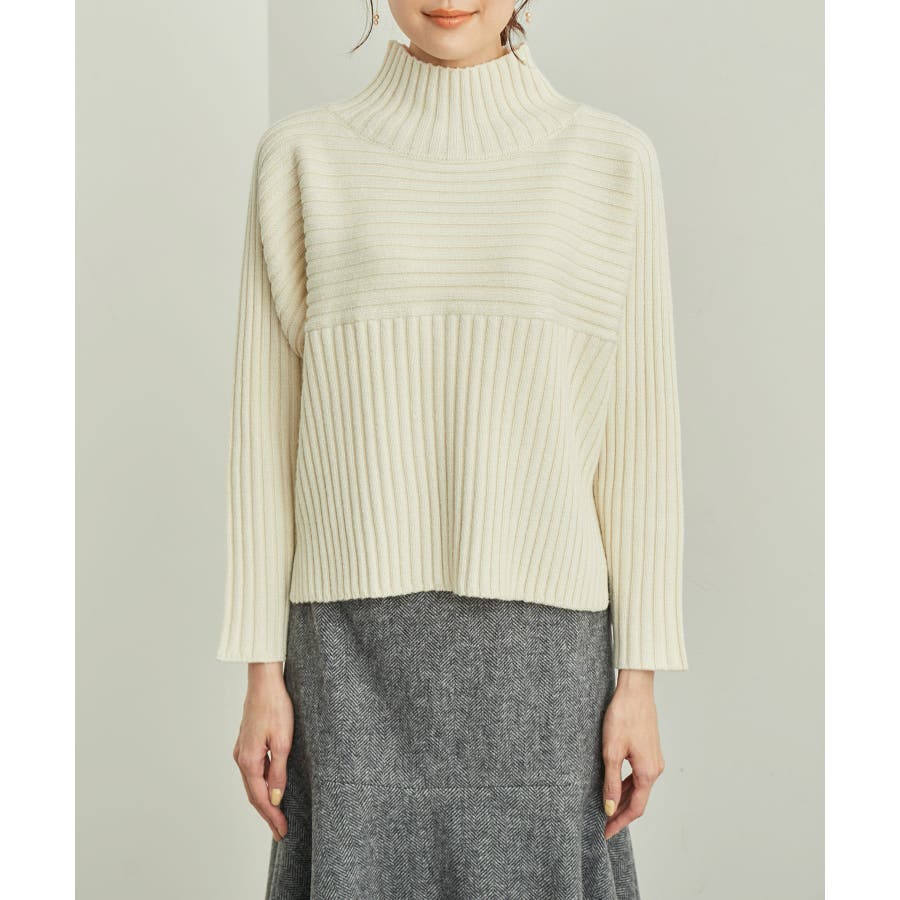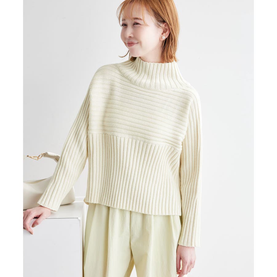 ースタイルアップが叶う、クロップド丈シリーズー ご好評につきベージュ(27)全店展開決定! : 【素材感】 ・帯電防止、洗濯機OKの機能素材。 【デザイン・シルエット】 ・リブ編みの長袖ハイネックプルオーバー。 ・切り替えで編み柄の方向を変えているのがポイント。 ・前後差ヘムにサイドスリット入り。 ・モダンなワイドシルエット。 【カラー】 ・モノトーンとビビッドカラーを交えた、豊富な10色を展開。 ・ピンク(63)はWEB限定カラー。 【スタイリングポイント】 ・軽やか素材のロングスカートに合わせてトレンド感アップ。 ・ワイドパンツでカジュアルダウンもOK。 ・同シリーズでKIDS(品番:GRM63000)、DOG(品番:GII73000)も展開しているので、親子お揃いもおすすめ。 ----------------------------- 裏地:なし 透け感:なし 伸縮性:あり 生地感・厚さ:やや厚手 季節:冬 ----------------------------- ※撮影時の光、お使いのモニター環境によって色の見え方が違う場合がございます。 ※前回好評だった(品番:GDM52100)から素材を変更(「アクリル 90% ポリエステル 10%」→「ポリエステル 56% アクリル 44%」)したことで、裄丈をやや短くしております。 ※重量:405g 重量は、サンプルの38サイズでの計測になります。 実際の商品と多少異なる場合がございます。 ※モデル身長:165cm 着用サイズ:38