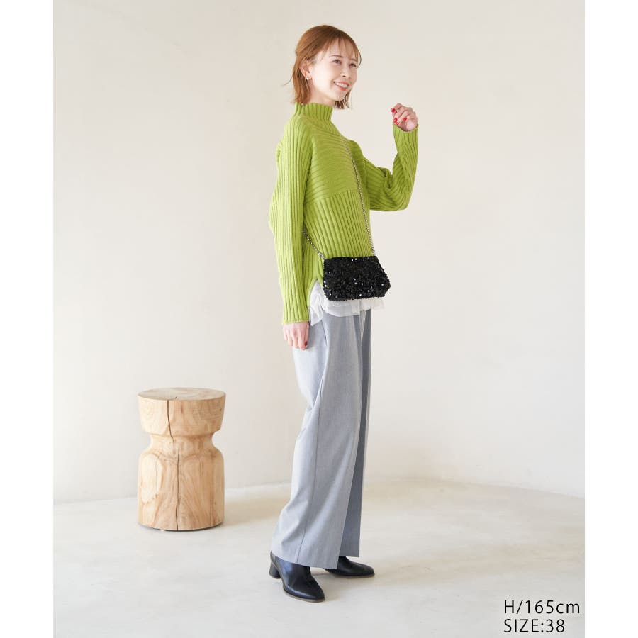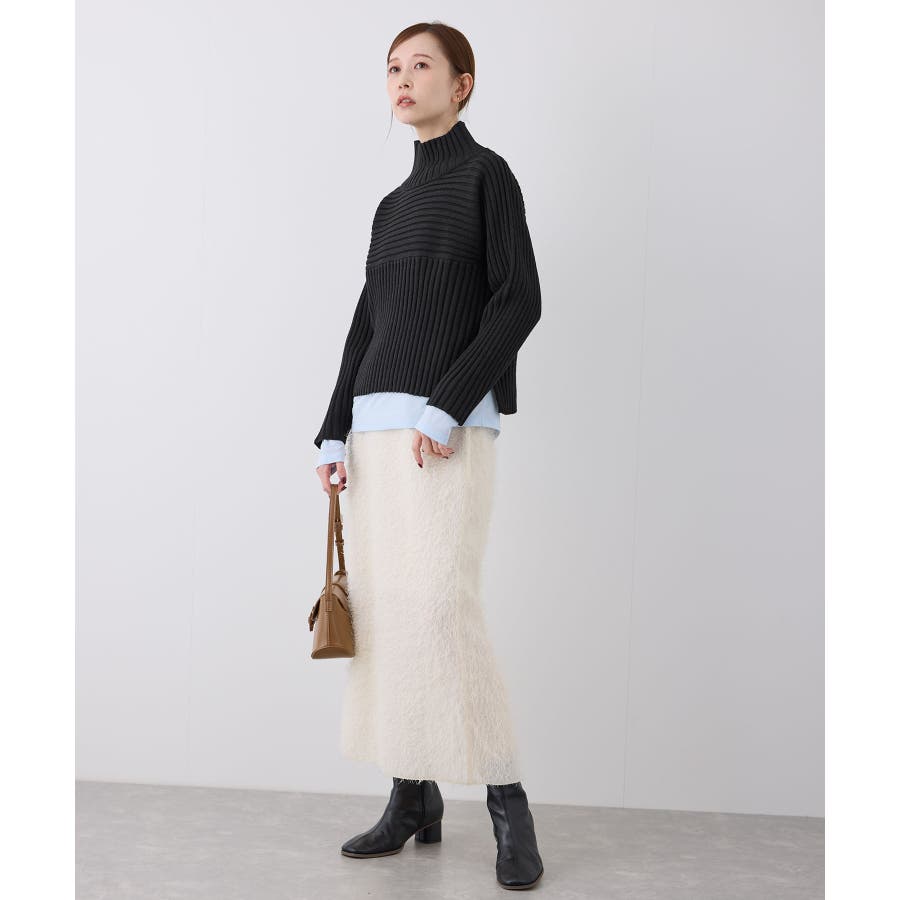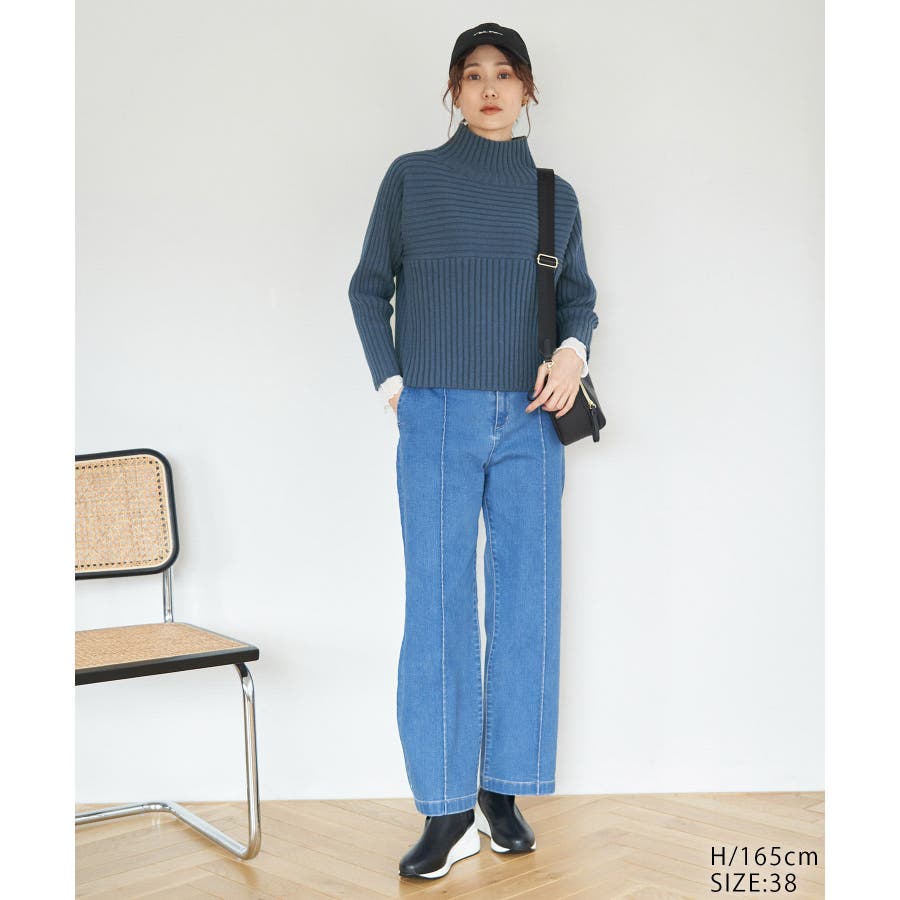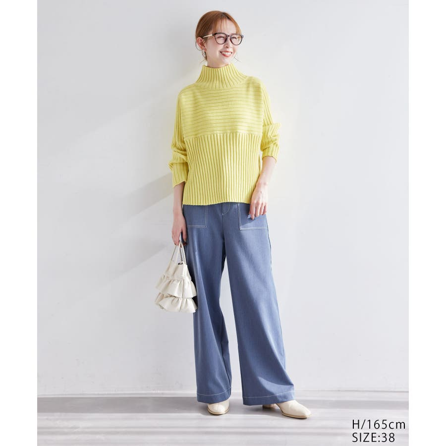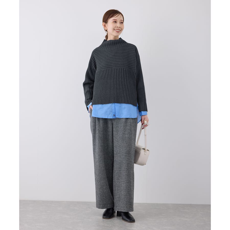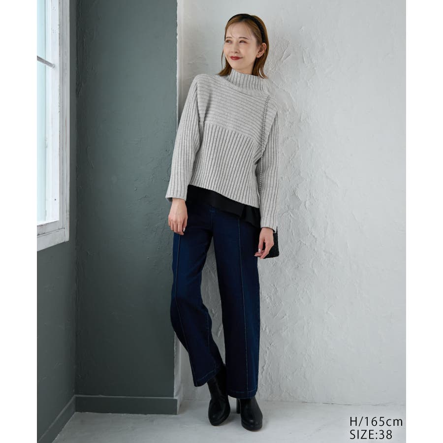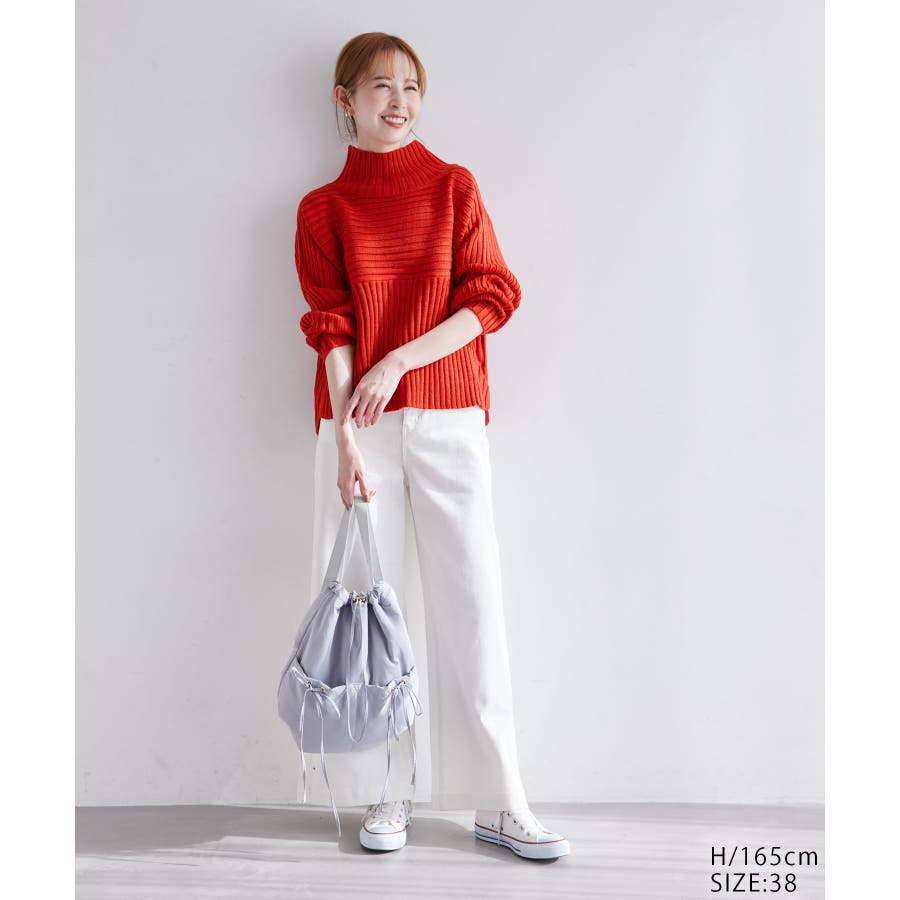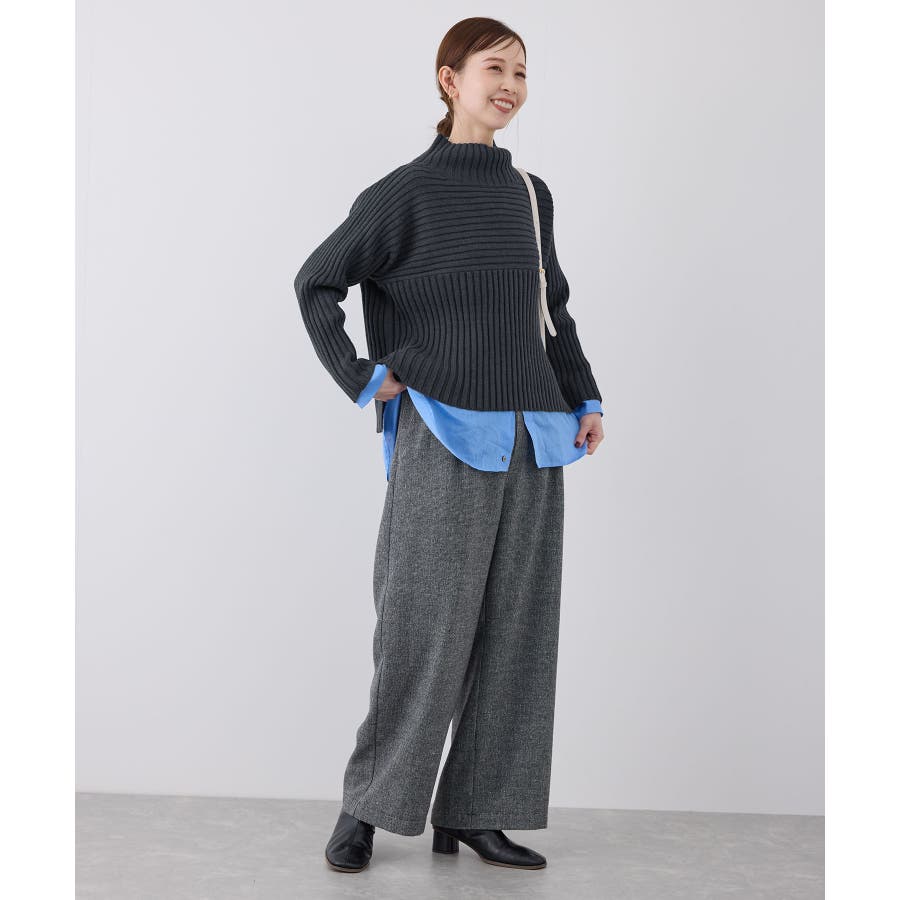 ースタイルアップが叶う、クロップド丈シリーズー ご好評につきベージュ(27)全店展開決定! : 【素材感】 ・帯電防止、洗濯機OKの機能素材。 【デザイン・シルエット】 ・リブ編みの長袖ハイネックプルオーバー。 ・切り替えで編み柄の方向を変えているのがポイント。 ・前後差ヘムにサイドスリット入り。 ・モダンなワイドシルエット。 【カラー】 ・モノトーンとビビッドカラーを交えた、豊富な10色を展開。 ・ピンク(63)はWEB限定カラー。 【スタイリングポイント】 ・軽やか素材のロングスカートに合わせてトレンド感アップ。 ・ワイドパンツでカジュアルダウンもOK。 ・同シリーズでKIDS(品番:GRM63000)、DOG(品番:GII73000)も展開しているので、親子お揃いもおすすめ。 ----------------------------- 裏地:なし 透け感:なし 伸縮性:あり 生地感・厚さ:やや厚手 季節:冬 ----------------------------- ※撮影時の光、お使いのモニター環境によって色の見え方が違う場合がございます。 ※前回好評だった(品番:GDM52100)から素材を変更(「アクリル 90% ポリエステル 10%」→「ポリエステル 56% アクリル 44%」)したことで、裄丈をやや短くしております。 ※重量:405g 重量は、サンプルの38サイズでの計測になります。 実際の商品と多少異なる場合がございます。 ※モデル身長:165cm 着用サイズ:38