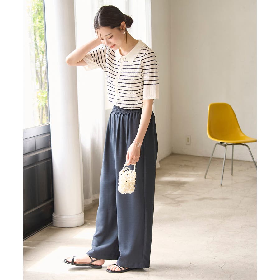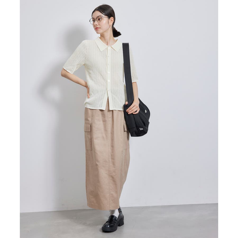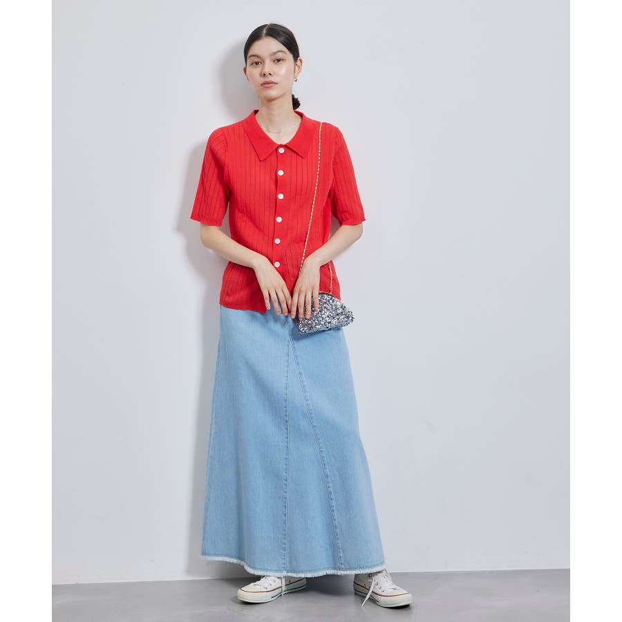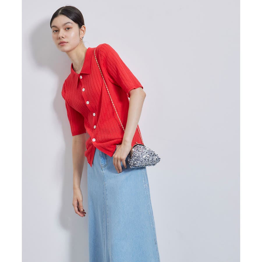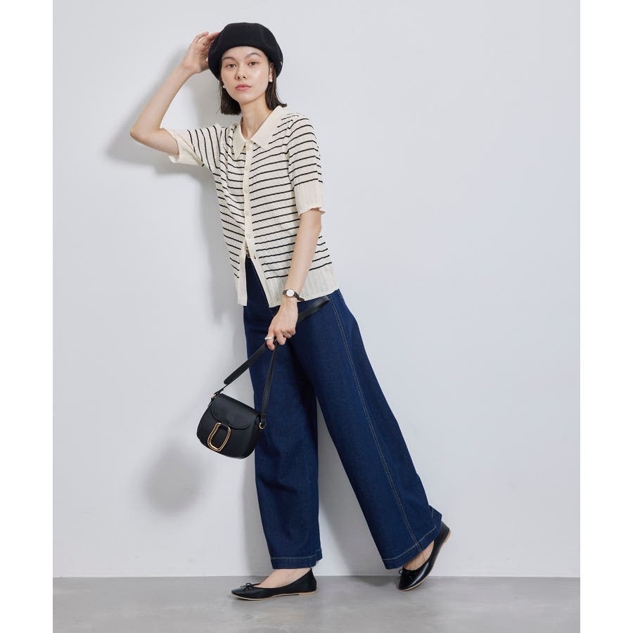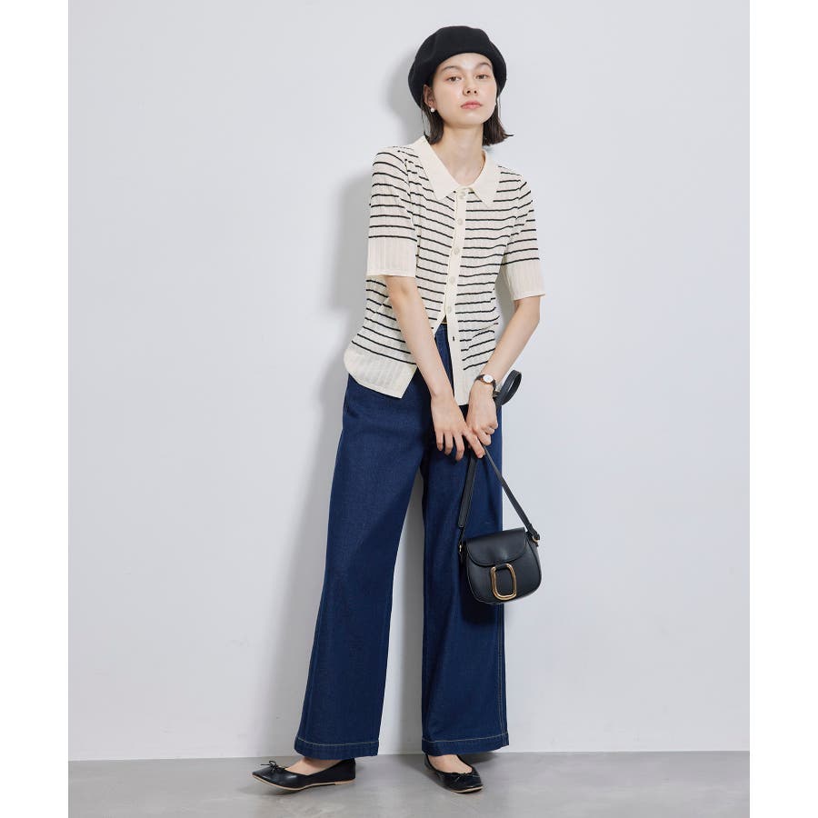 【素材感】 ・梨地見えする表面のシアーポロニット。 【デザイン・シルエット】 ・レトロシックな、ハーフスリーブのポロニットプルオーバー。 ・コンパクトなシルエットですっきり着こなせる一枚。 ・前ボタンを閉めて着用した際に、ヒップに沿って広がる裾がポイント。 【カラー】 ・カラーによって柄が異なります。 オフホワイト(15)レッド(60):無地 キナリ系(17):ボーダー 【スタイリングポイント】 ・レッドはインディゴジーンズと相性抜群。 ・柄物スカートを合わせると華やかに。 ・キュロットパンツ合わせもクラシカルで一押し。 ----------------------------- 裏地:なし 透け感:ややあり 伸縮性:あり 生地感・厚さ:やや薄手 ポケット:なし 季節:春~秋 ----------------------------- ※撮影時の光、お使いのモニター環境によって色の見え方が違う場合がございます。 ※モデル身長:166cm 着用サイズ:38/165cm 着用サイズ:38