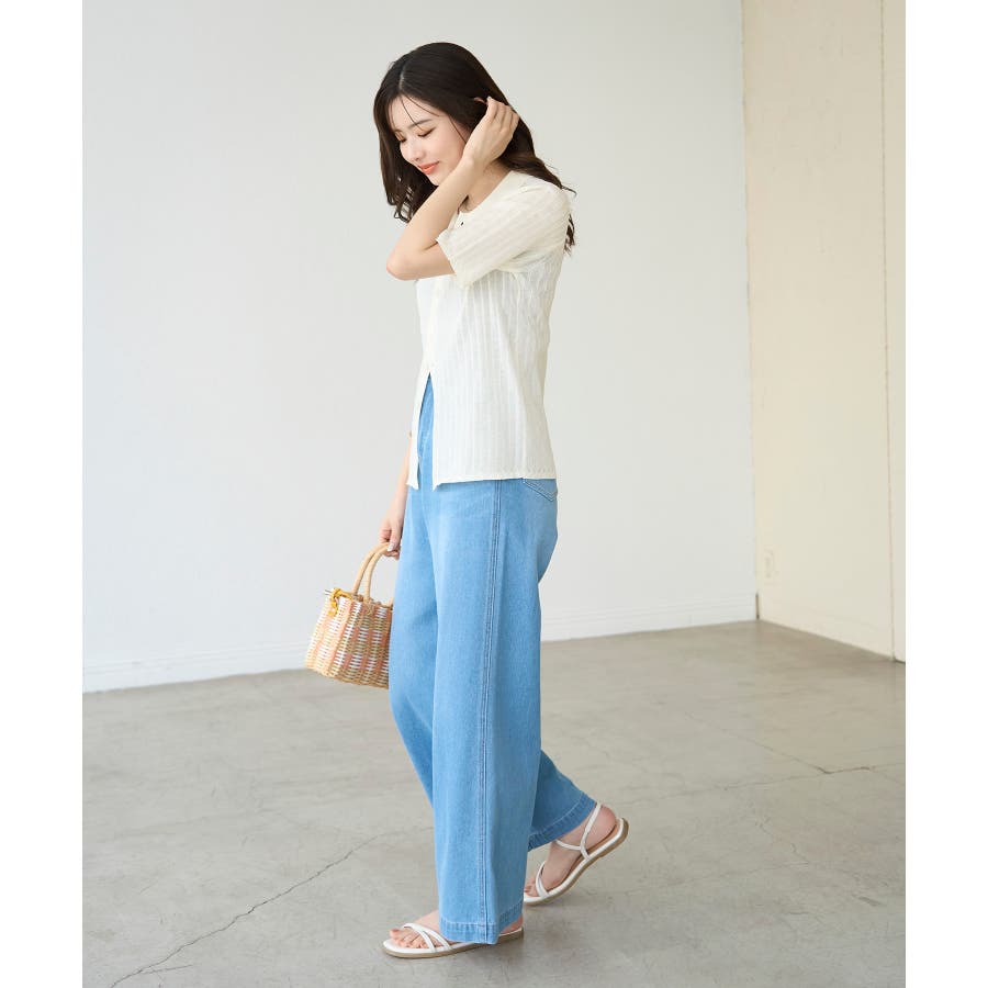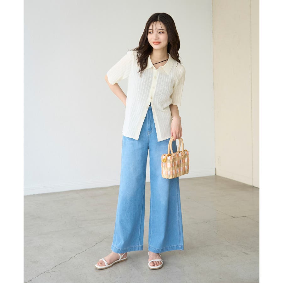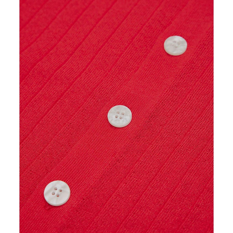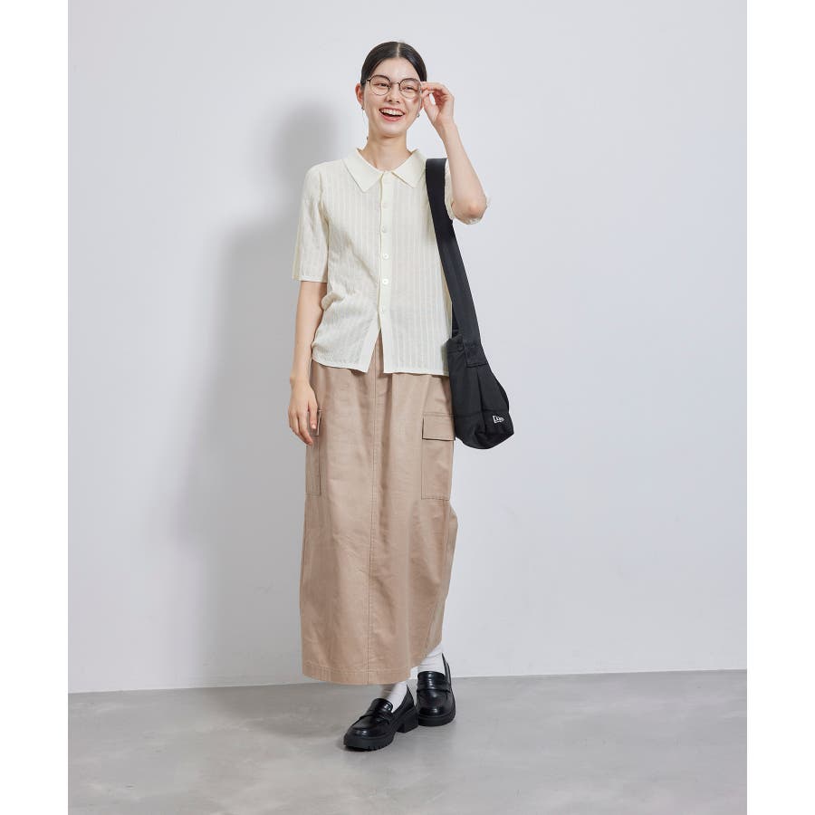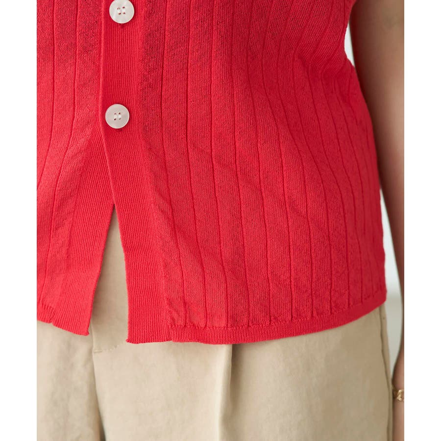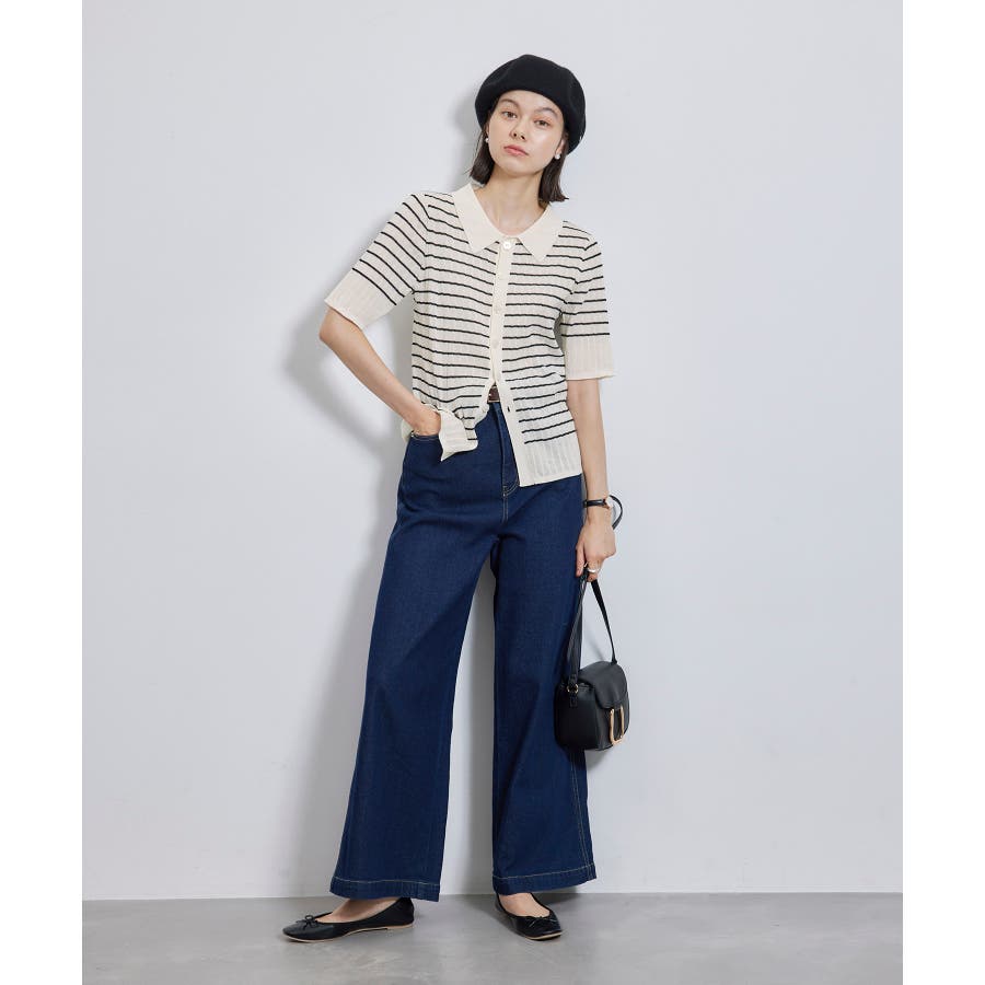 【素材感】 ・梨地見えする表面のシアーポロニット。 【デザイン・シルエット】 ・レトロシックな、ハーフスリーブのポロニットプルオーバー。 ・コンパクトなシルエットですっきり着こなせる一枚。 ・前ボタンを閉めて着用した際に、ヒップに沿って広がる裾がポイント。 【カラー】 ・カラーによって柄が異なります。 オフホワイト(15)レッド(60):無地 キナリ系(17):ボーダー 【スタイリングポイント】 ・レッドはインディゴジーンズと相性抜群。 ・柄物スカートを合わせると華やかに。 ・キュロットパンツ合わせもクラシカルで一押し。 ----------------------------- 裏地:なし 透け感:ややあり 伸縮性:あり 生地感・厚さ:やや薄手 ポケット:なし 季節:春~秋 ----------------------------- ※撮影時の光、お使いのモニター環境によって色の見え方が違う場合がございます。 ※モデル身長:166cm 着用サイズ:38/165cm 着用サイズ:38