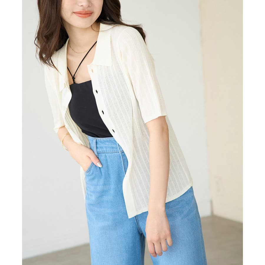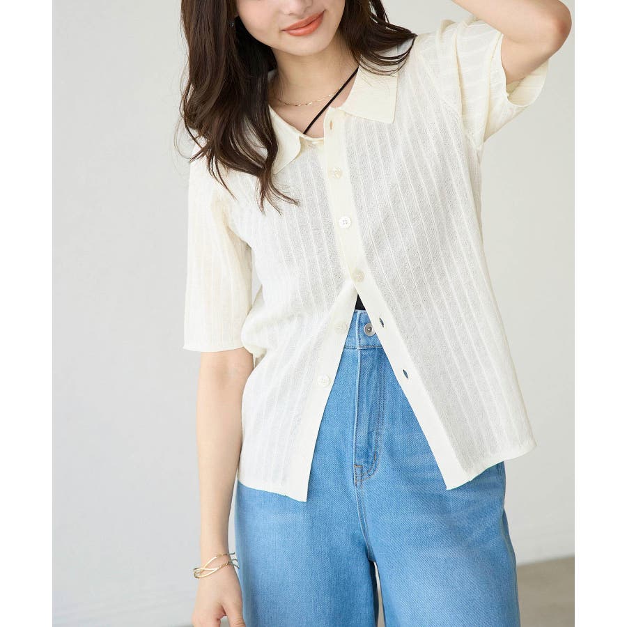 ハーフスリーブシアーポロニット