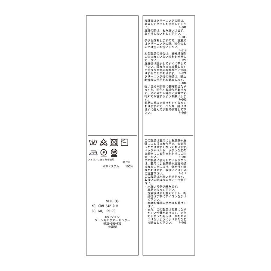 | 38 | 58cm | 34cm | 84cm | 28cm | (アームホール)39.4 (袖幅)15.7 |
