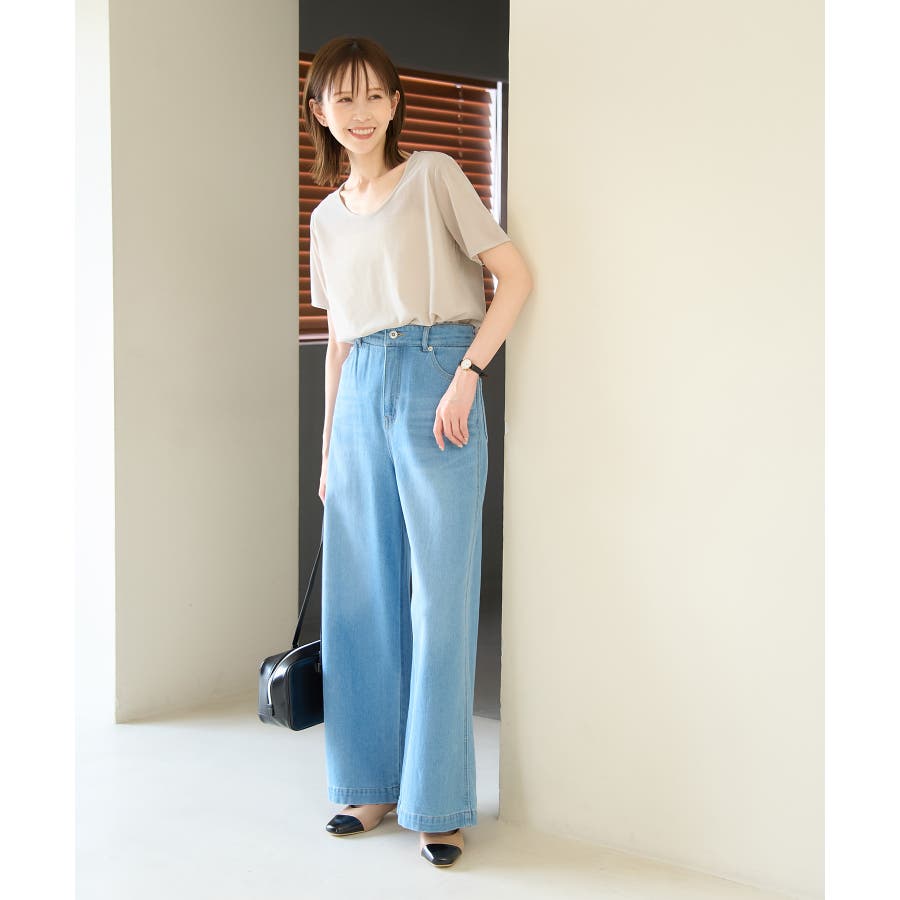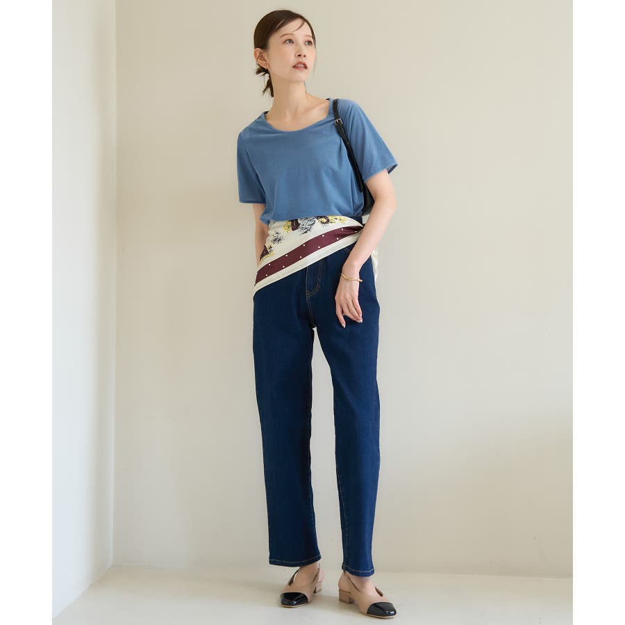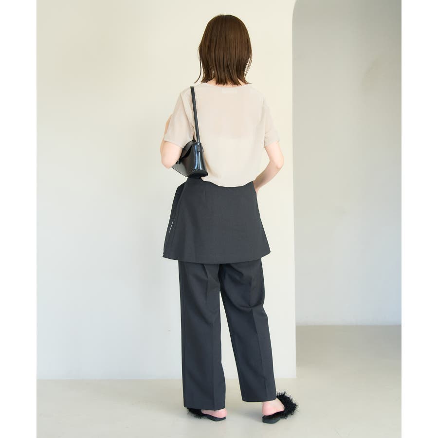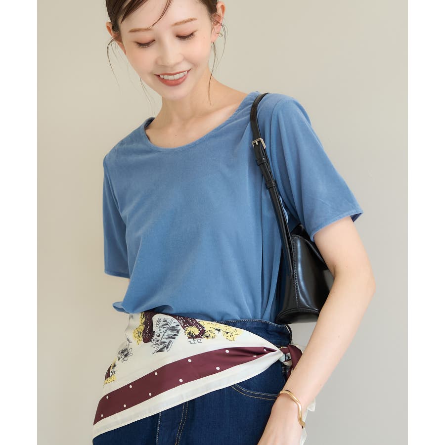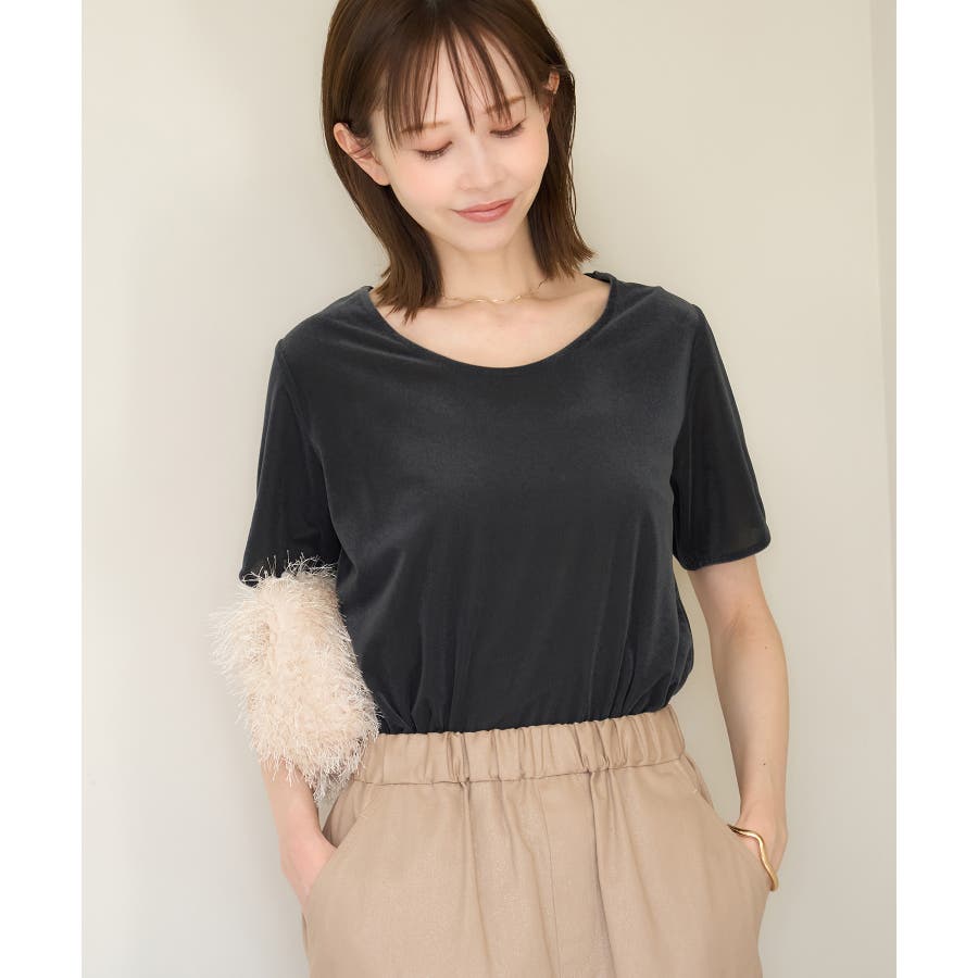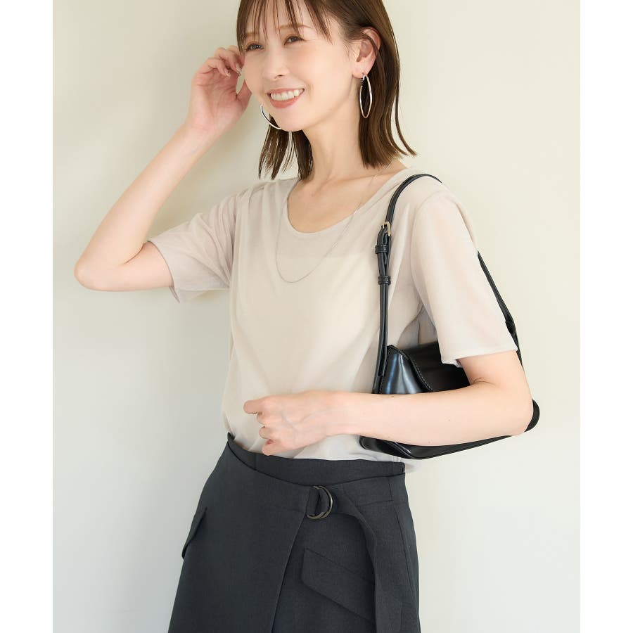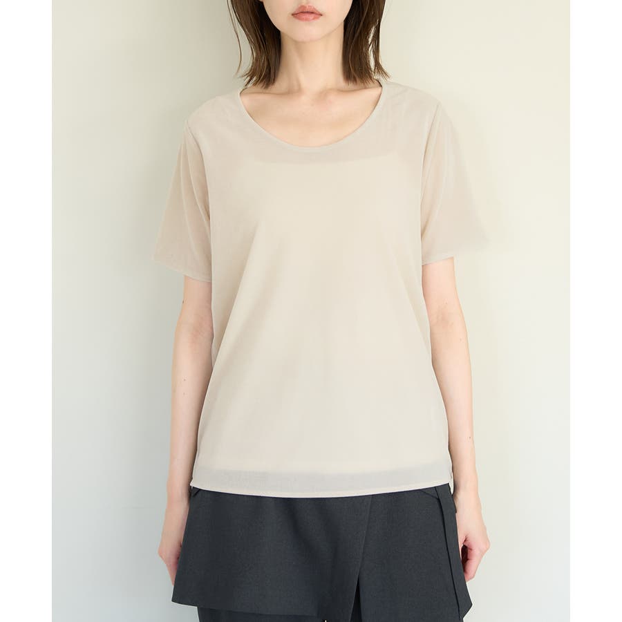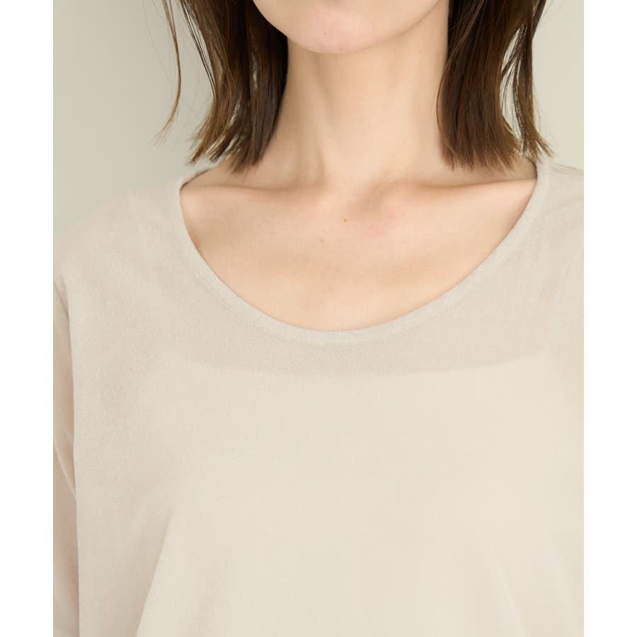 【素材感】 ・シアーベロア素材を使用。 【デザイン・シルエット】 ・自然なラウンドネックのハーフスリーブプルオーバー。 ・シルエットはすっきりとしていて、もたつきがない。 ・同シリーズでノースリーブ(品番:GDM54280)も展開。 【カラー】 ・チャコールグレー、ベージュ、ブルーの3色展開。 【スタイリングポイント】 ・チャコールグレーやブルーは明るめのボトムに合わせるとメリハリが出せる。 ・ベージュは薄めのブルーデニムと好相性。 ・ジャケットやブルゾンにも重ねやすい。 ・ネックレスやスカーフで華やかにしても◎。 ----------------------------- 裏地:なし 透け感:ややあり 伸縮性:ややあり 生地感・厚さ:普通 季節:夏・秋(羽織りをプラスして) ----------------------------- ※撮影時の光、お使いのモニター環境によって色の見え方が違う場合がございます。 ※モデル身長:165cm 着用サイズ:38