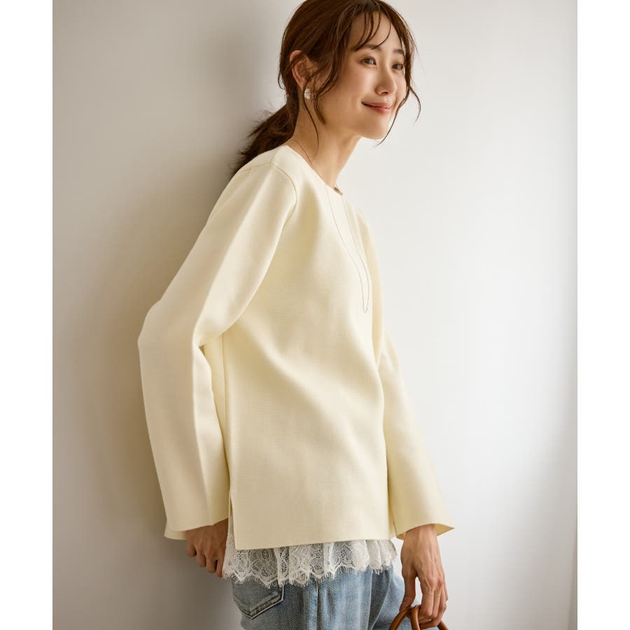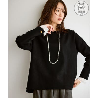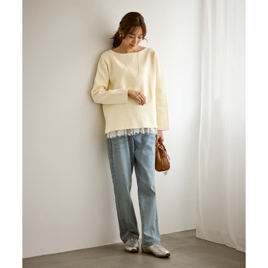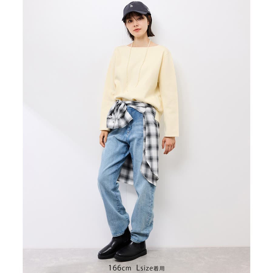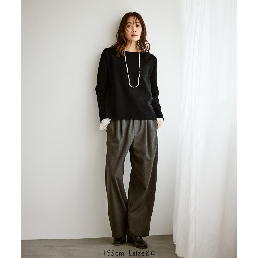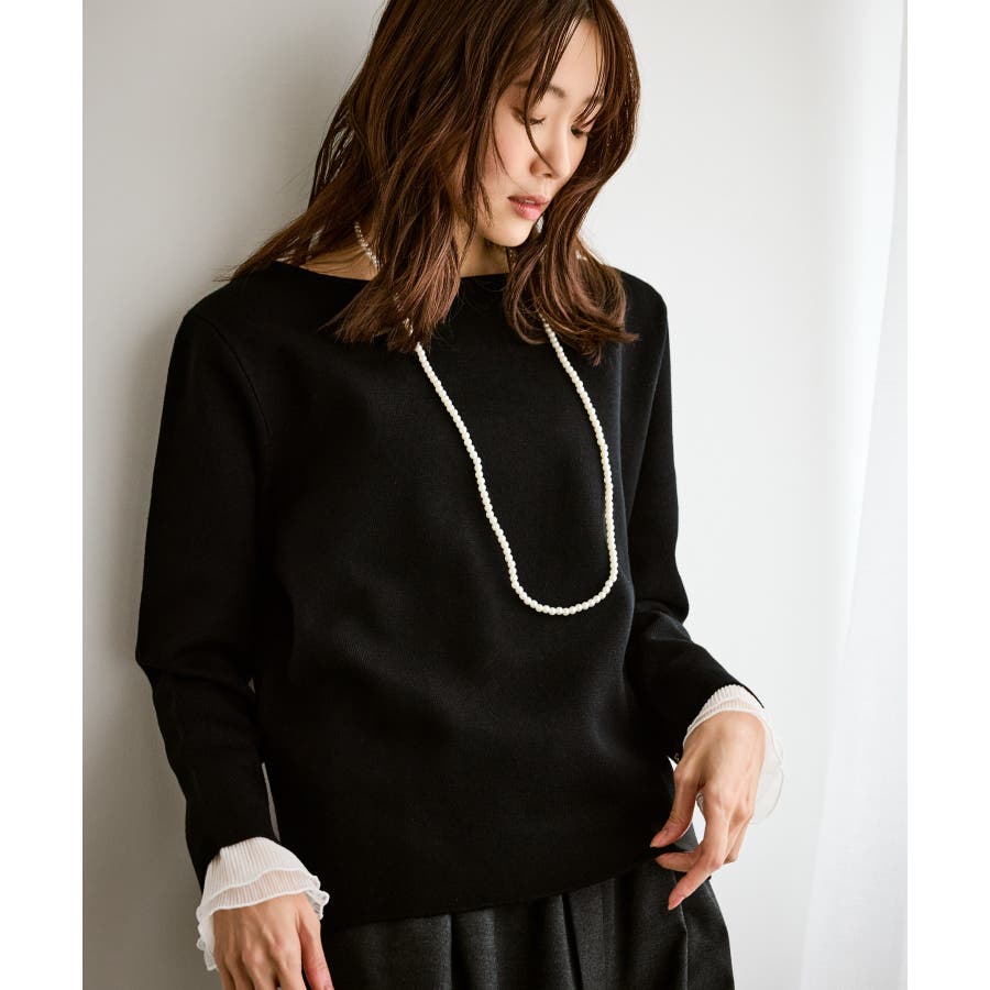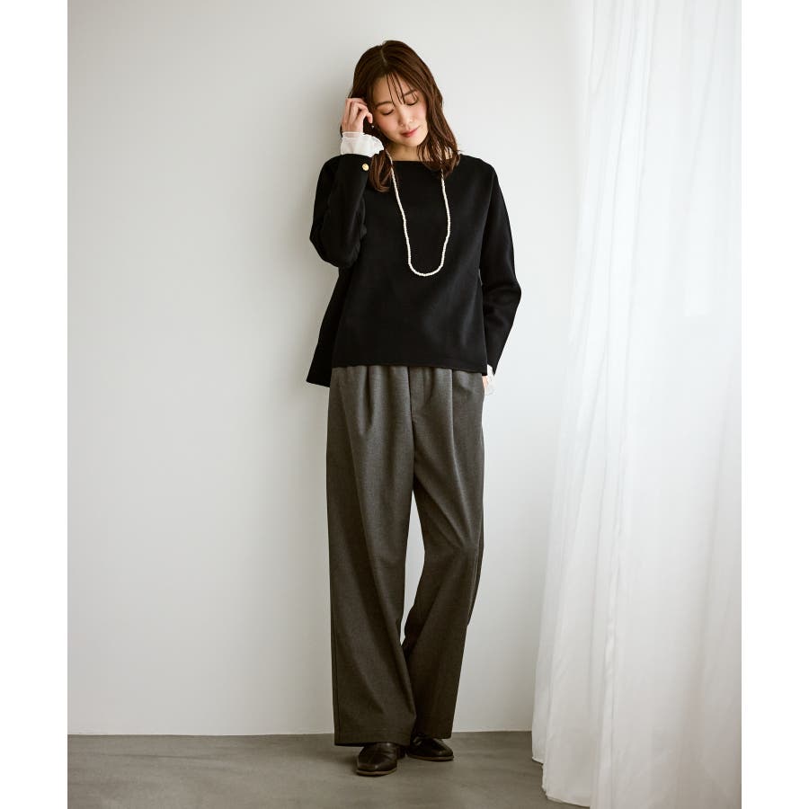 ・シンプルなプルオーバーなのでロングネックレスやアクセサリーの重ね付けなどをすると映えて◎。