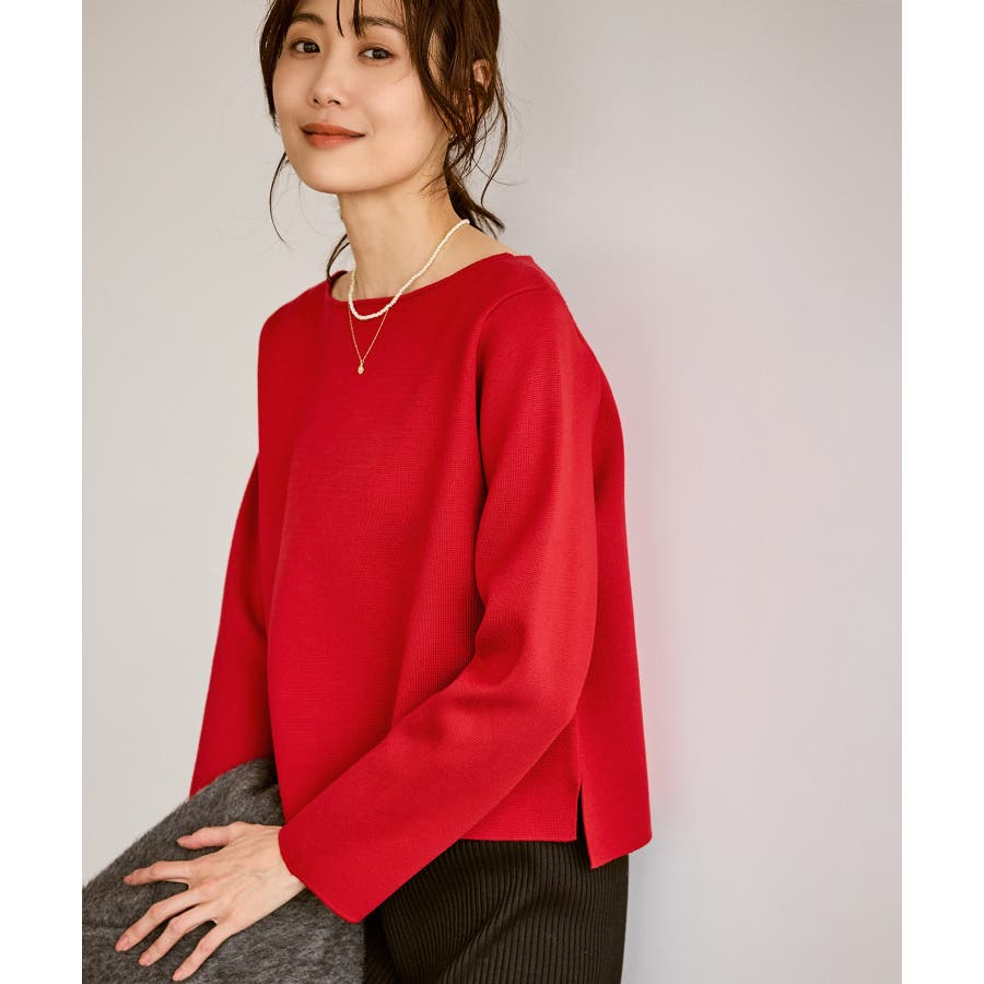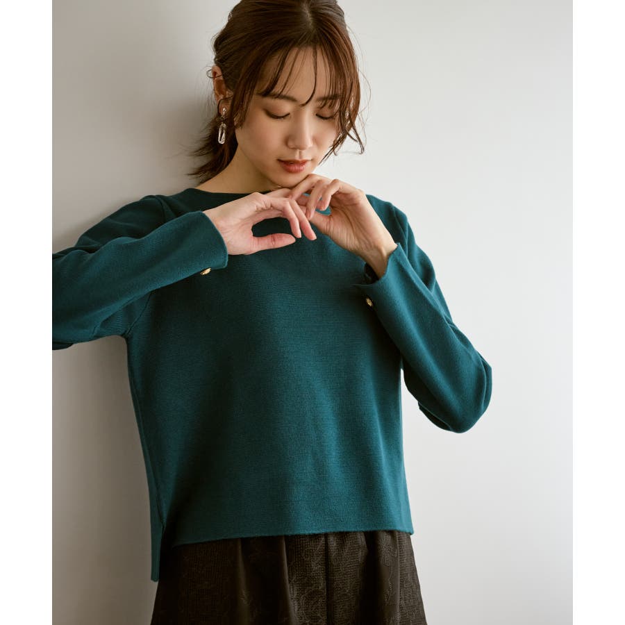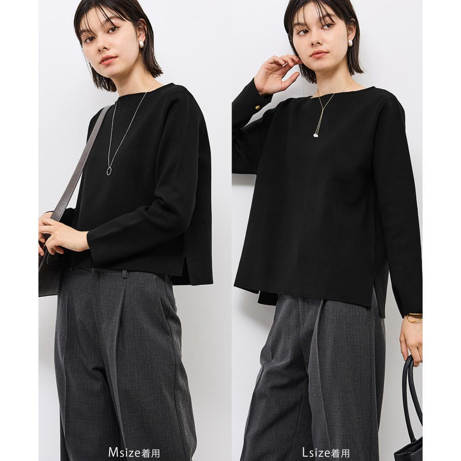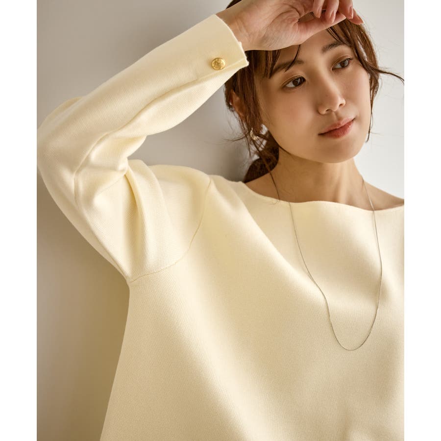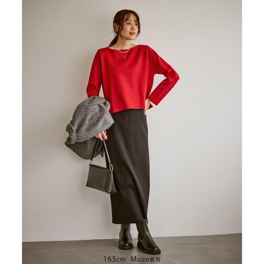 ・シンプルなプルオーバーなのでロングネックレスやアクセサリーの重ね付けなどをすると映えて◎。