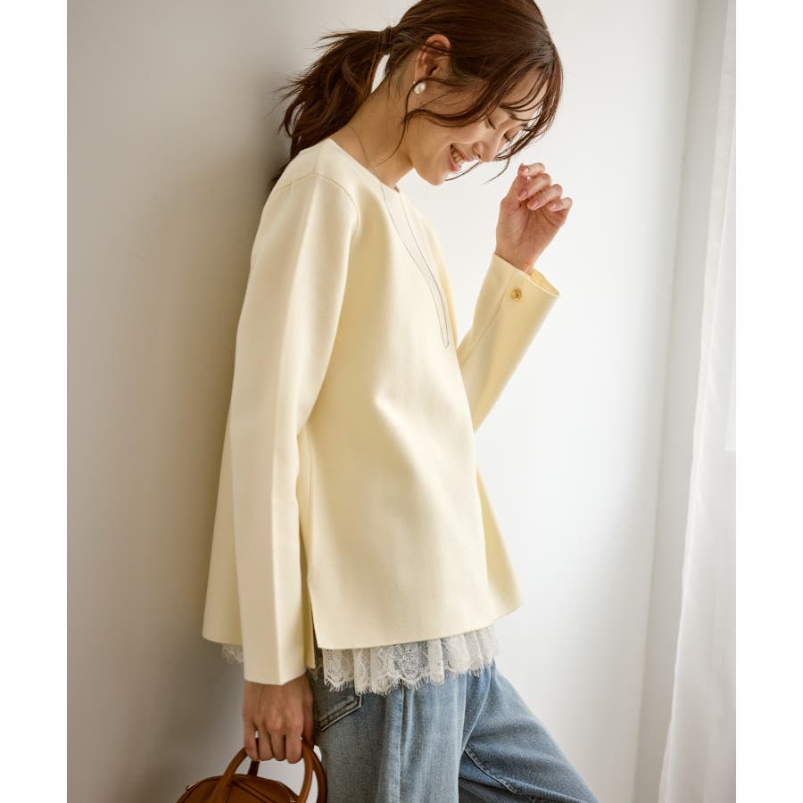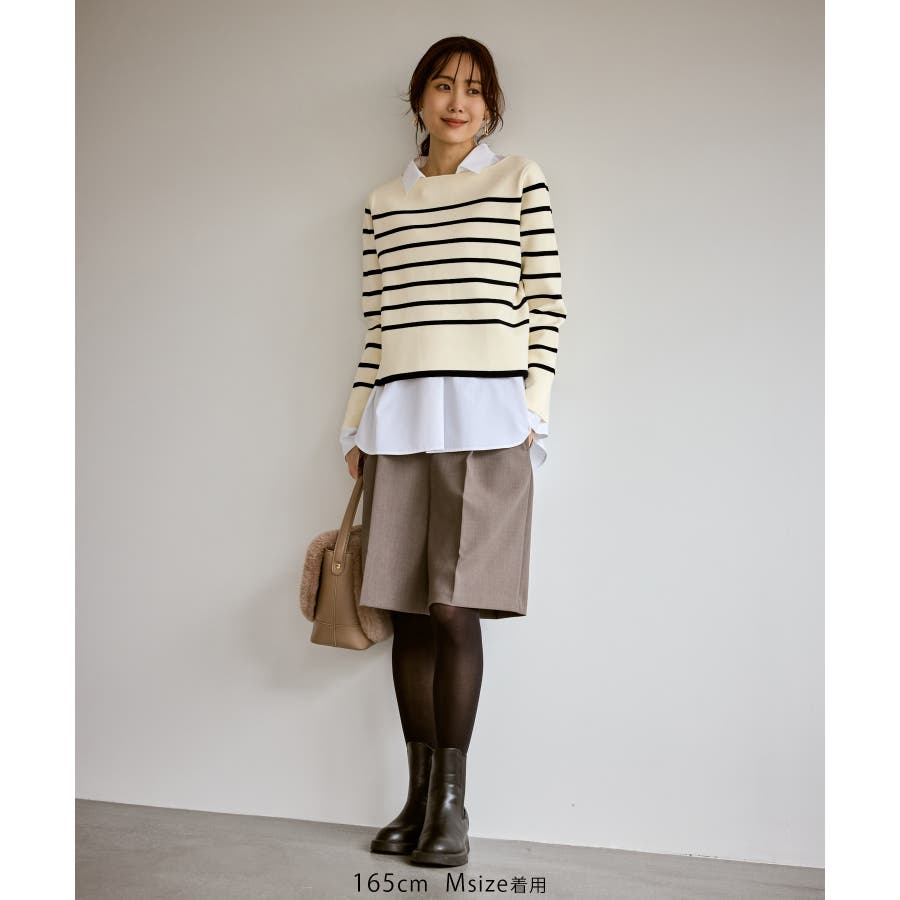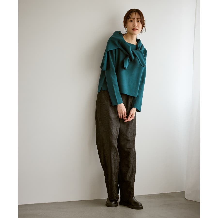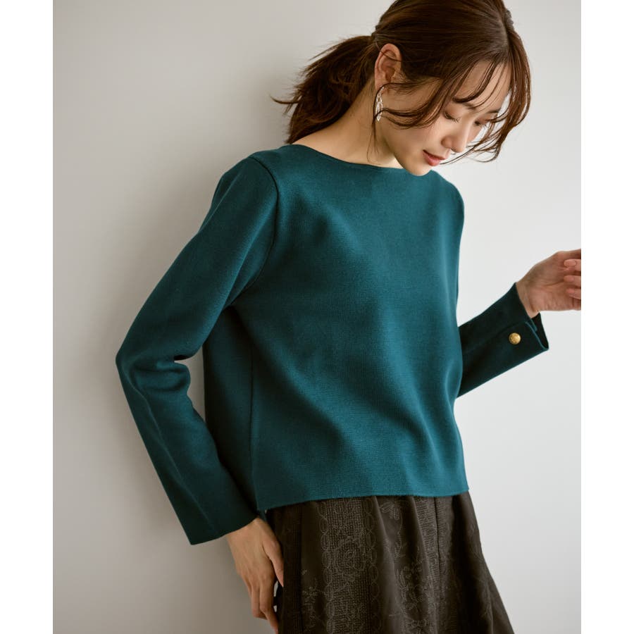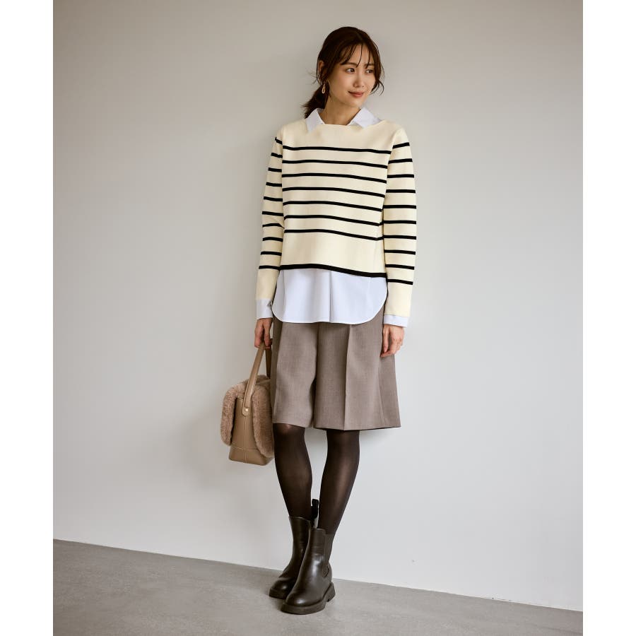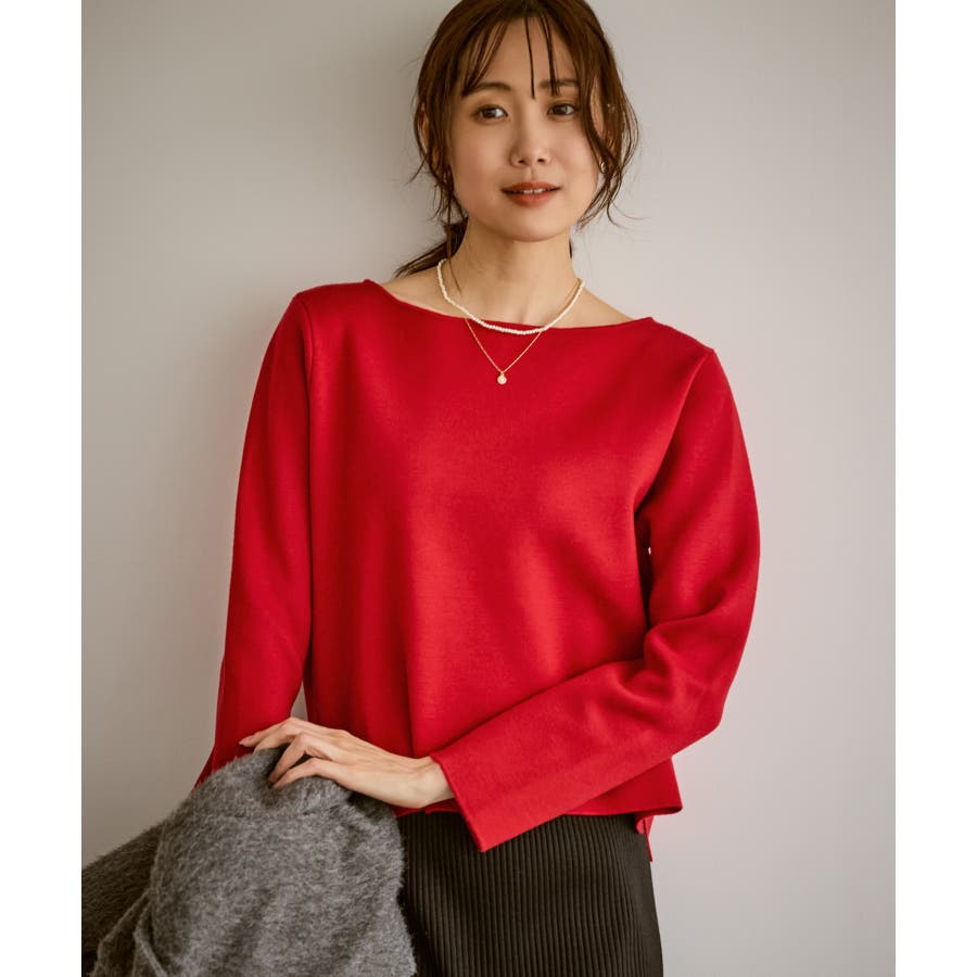 ・シンプルなプルオーバーなのでロングネックレスやアクセサリーの重ね付けなどをすると映えて◎。