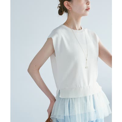 ・ペプラムシルエットのチュール使いニット。