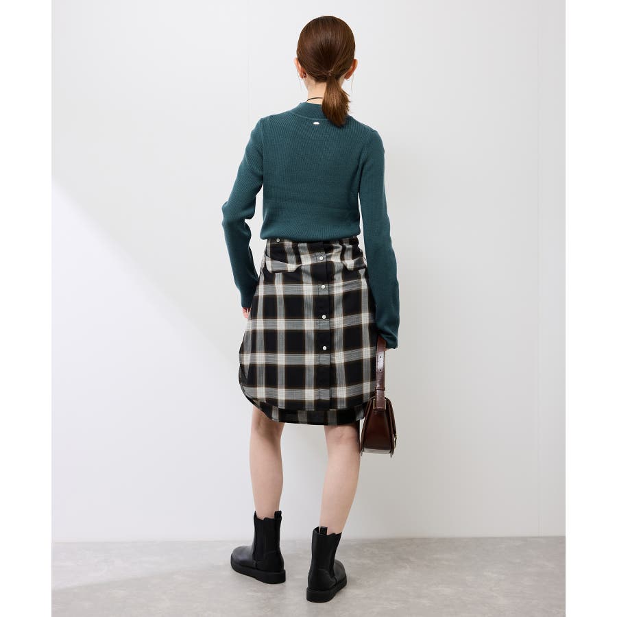 ・チェック柄をプラスして、程よく力の抜けた大人カジュアルに。シャツは腰巻きでウエスト位置が高く見え、スタイルアップ見えも◎