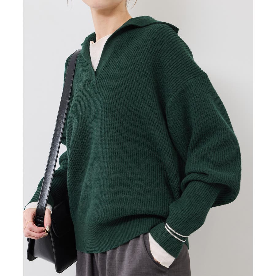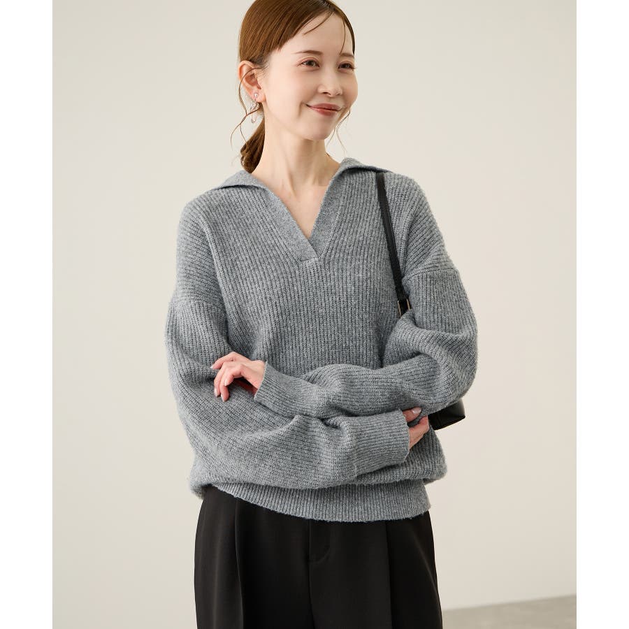 ・ボタンレスのスキッパーデザインが、抜け感とこなれ感を演出。