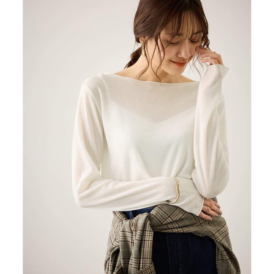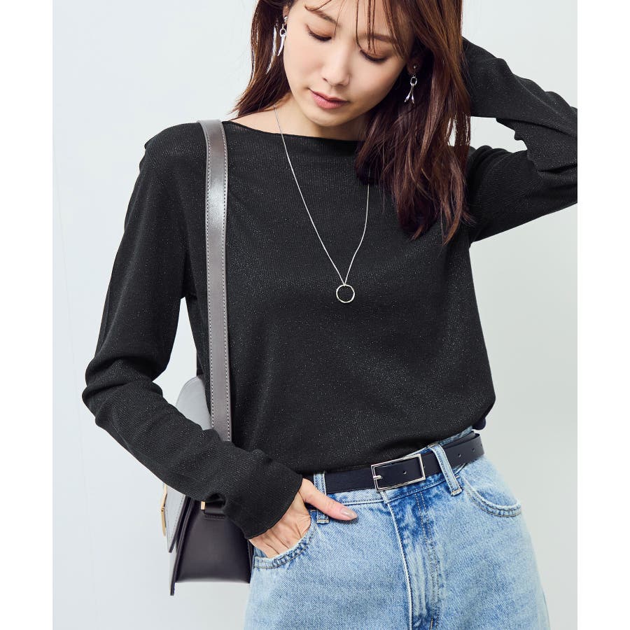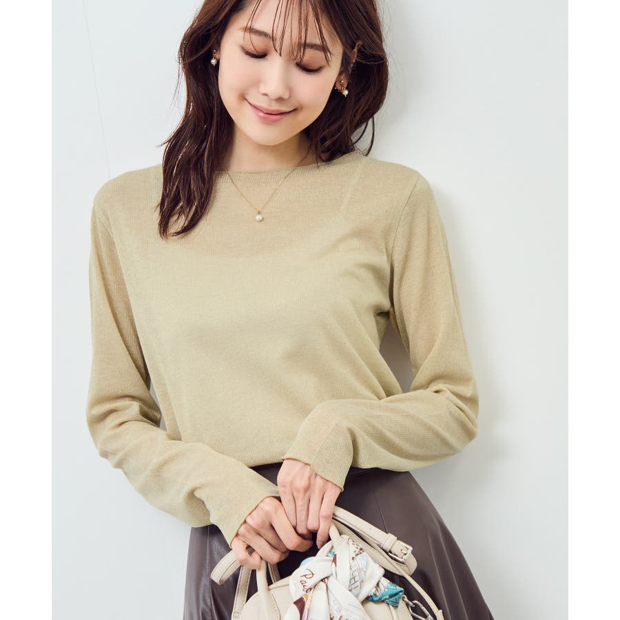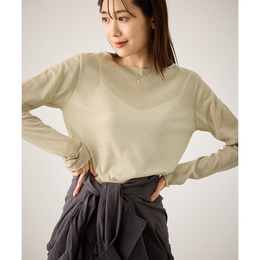 ・肌をほのかに透かしつつ、ラメの輝きで印象を引き上げるロングスリーブカットソー。
